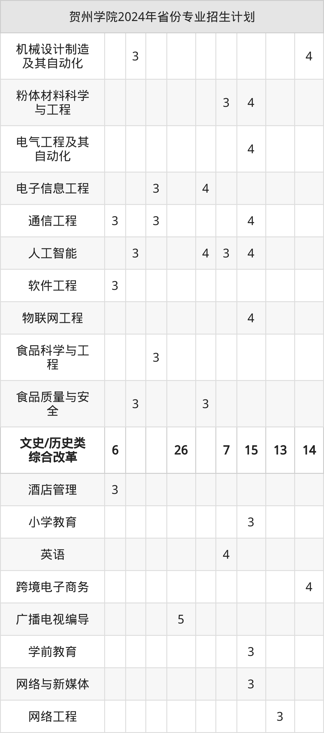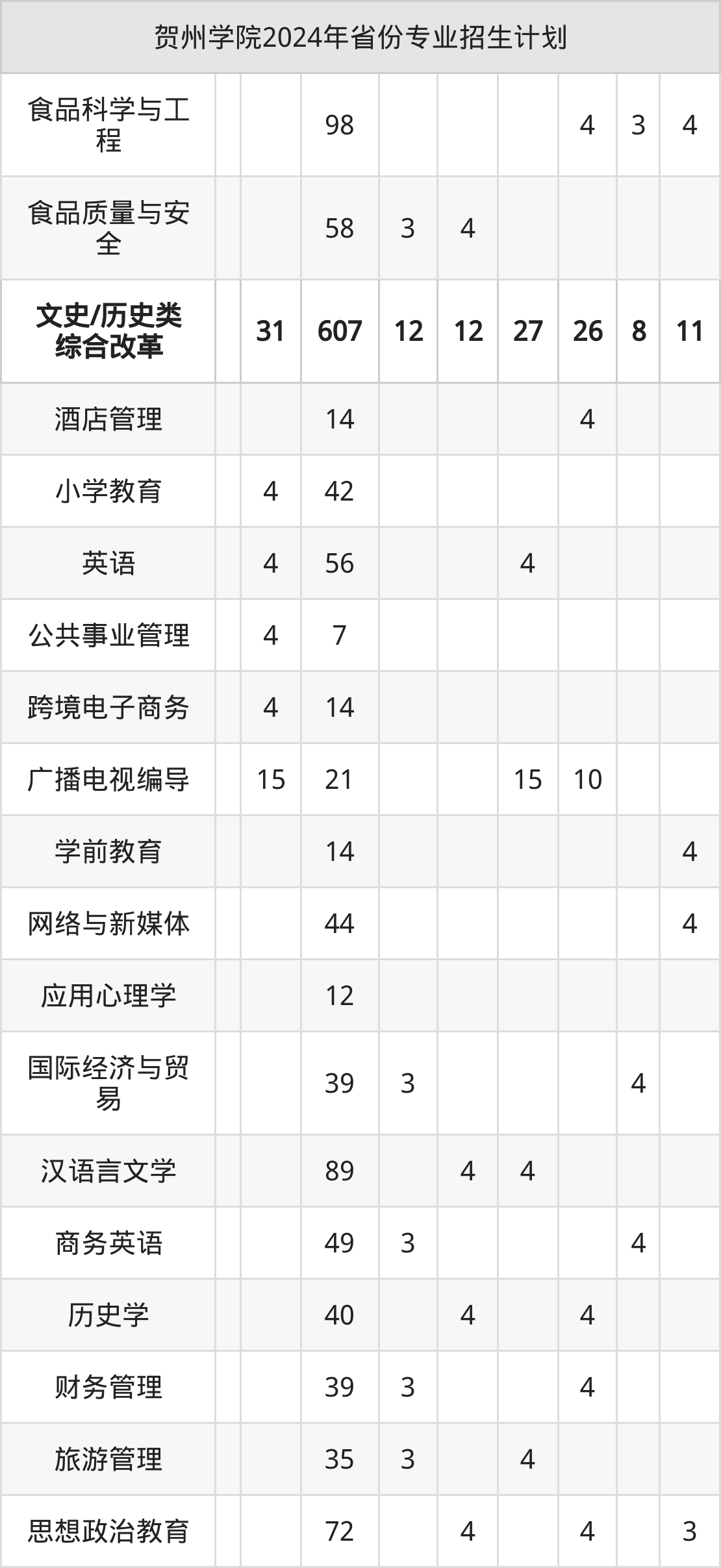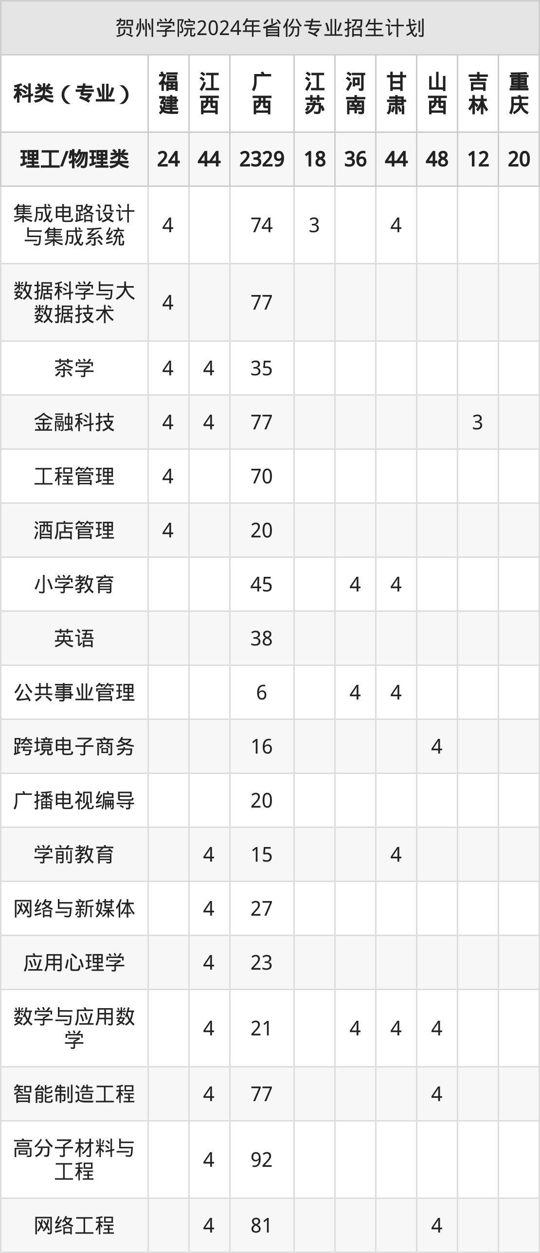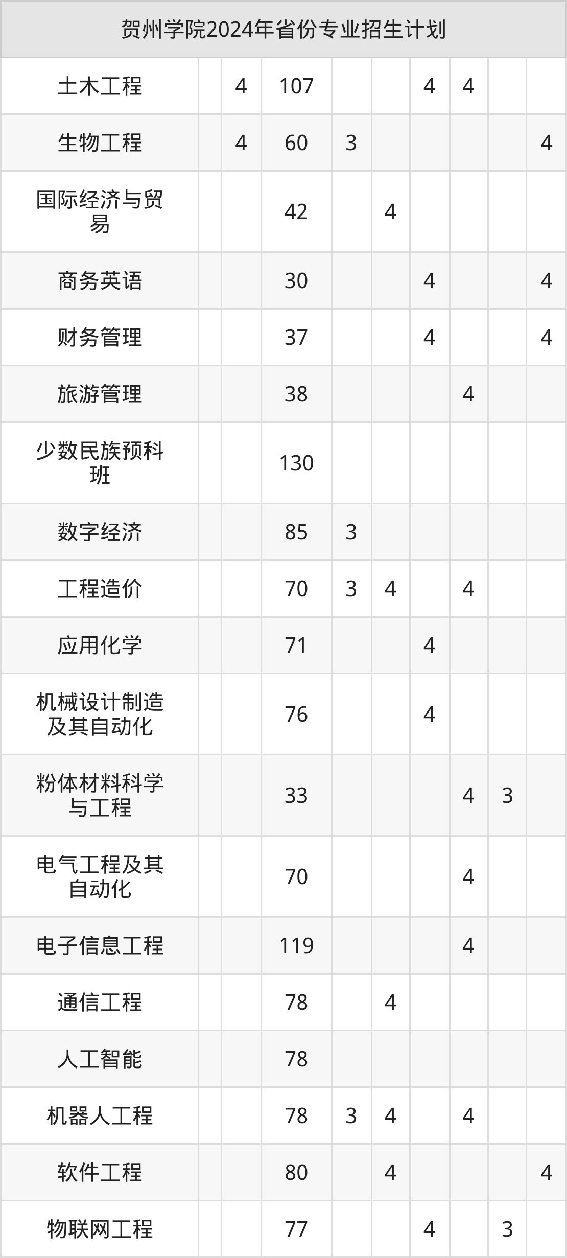 2025年贺州学院本科招生计划待公布,下面附上2024年数据,暂供参考: