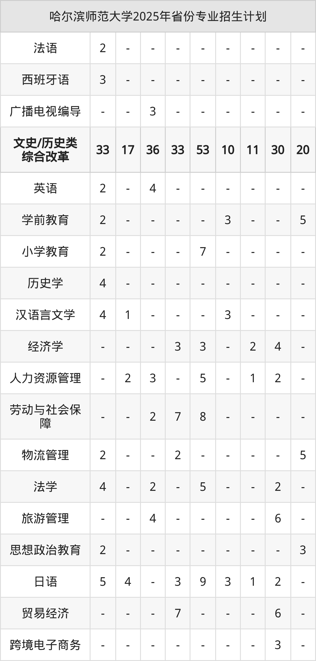 二、哈尔滨师范大学2026年招生计划