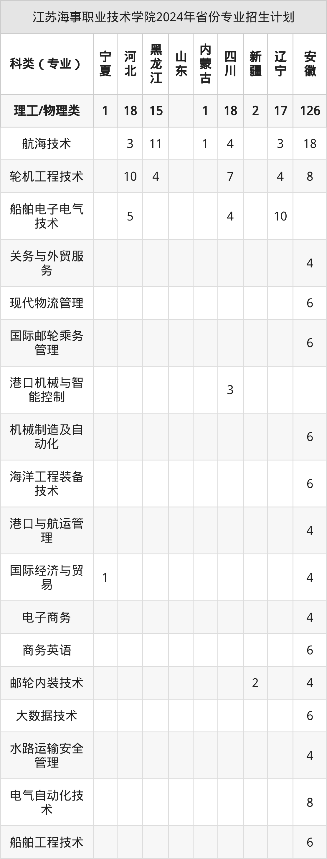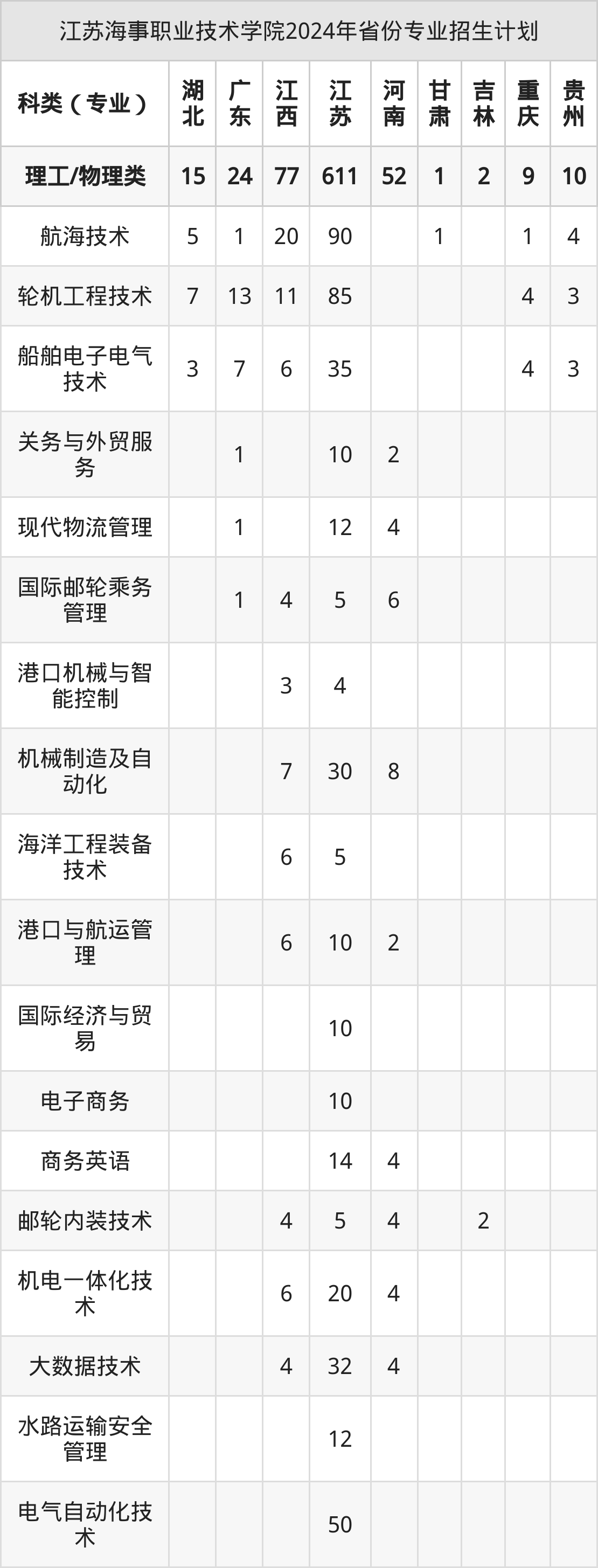 2025年江苏海事职业技术学院专科招生计划待公布,下面附上2024年数据,暂供参考: