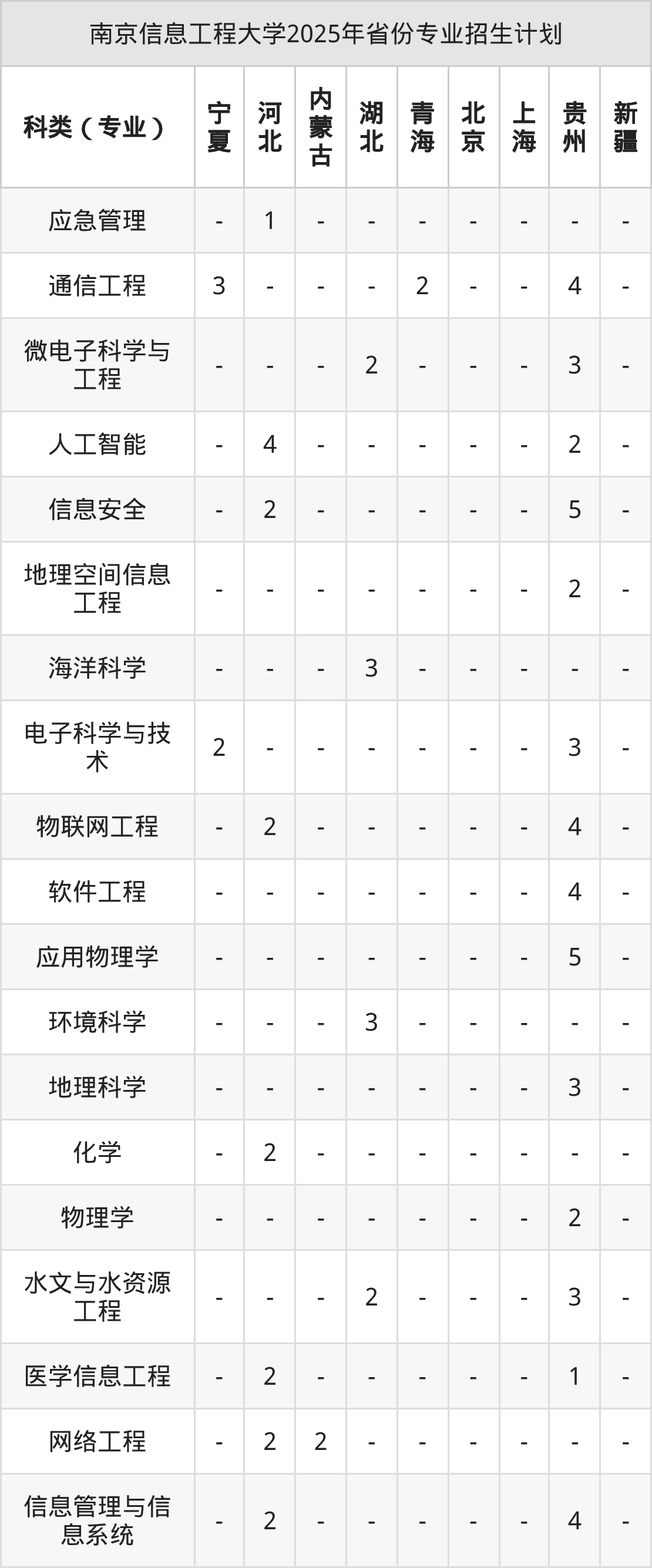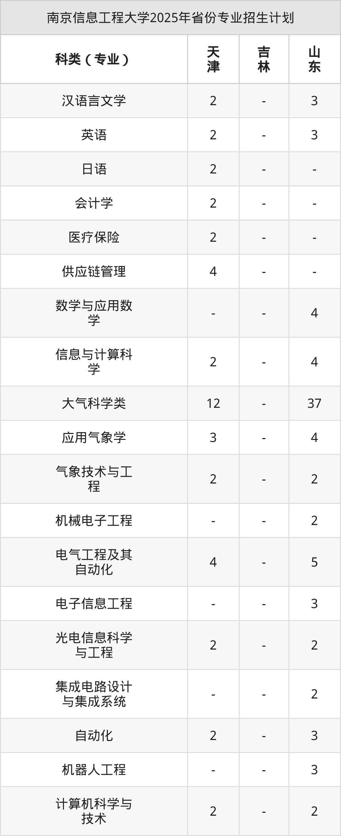 | 南京信息工程大学本科招生专业 | |