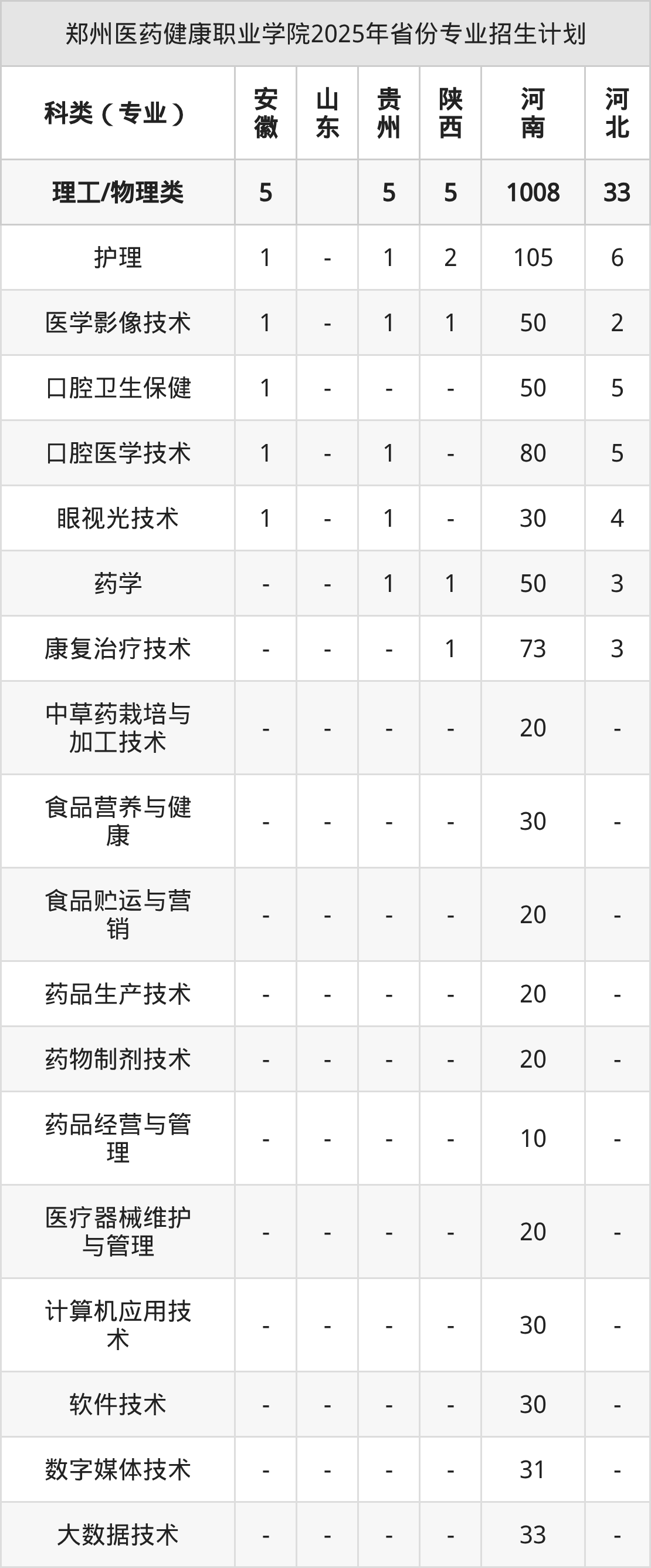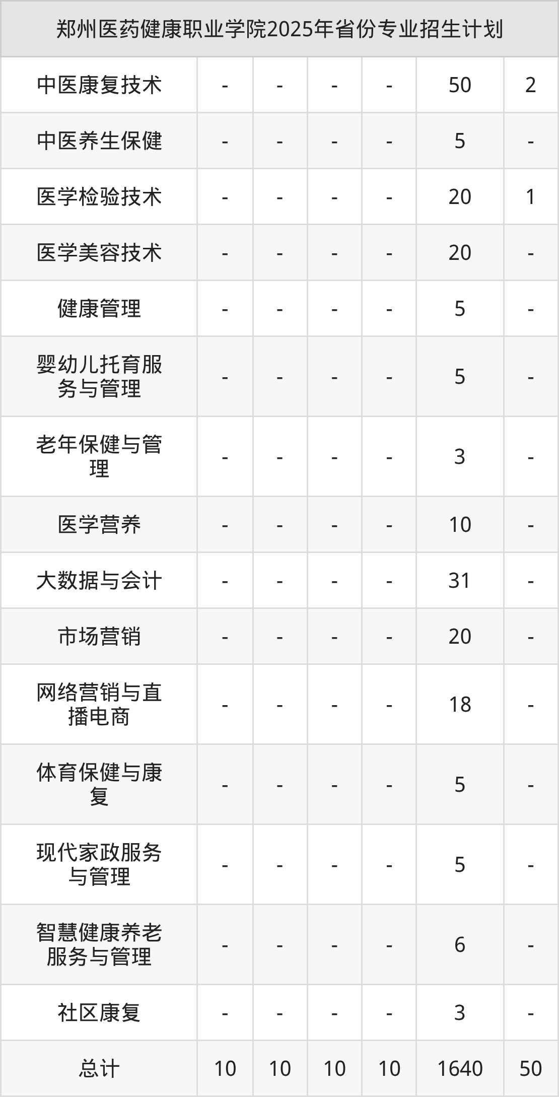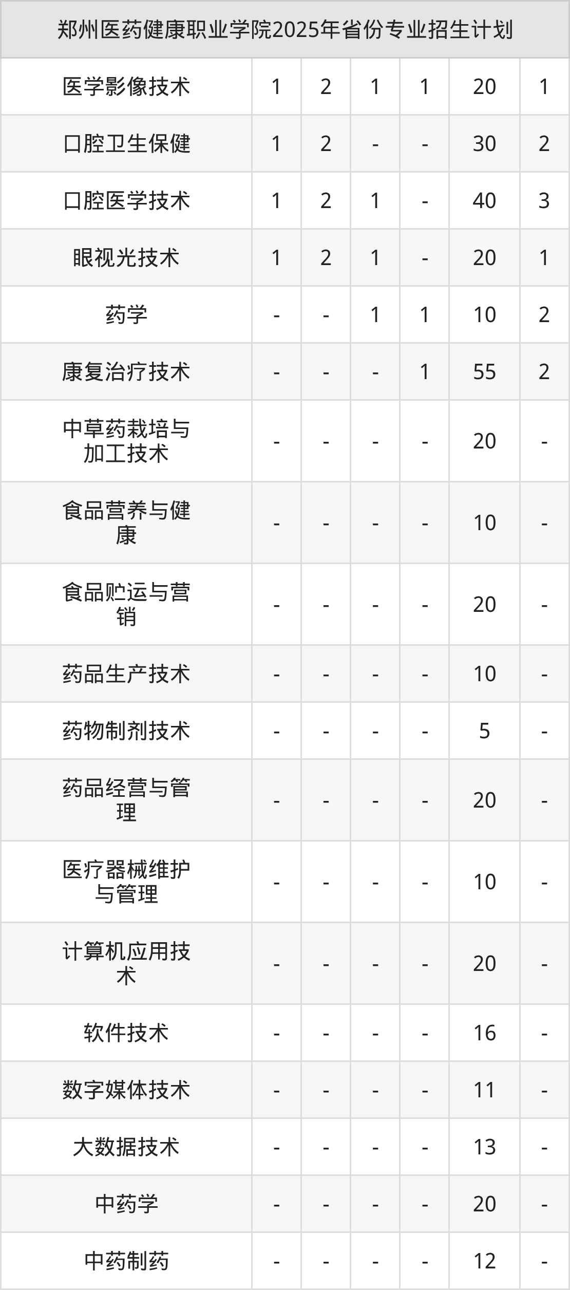 2026年郑州医药健康职业学院专科招生计划待公布,下面附上2025年数据,暂供参考: