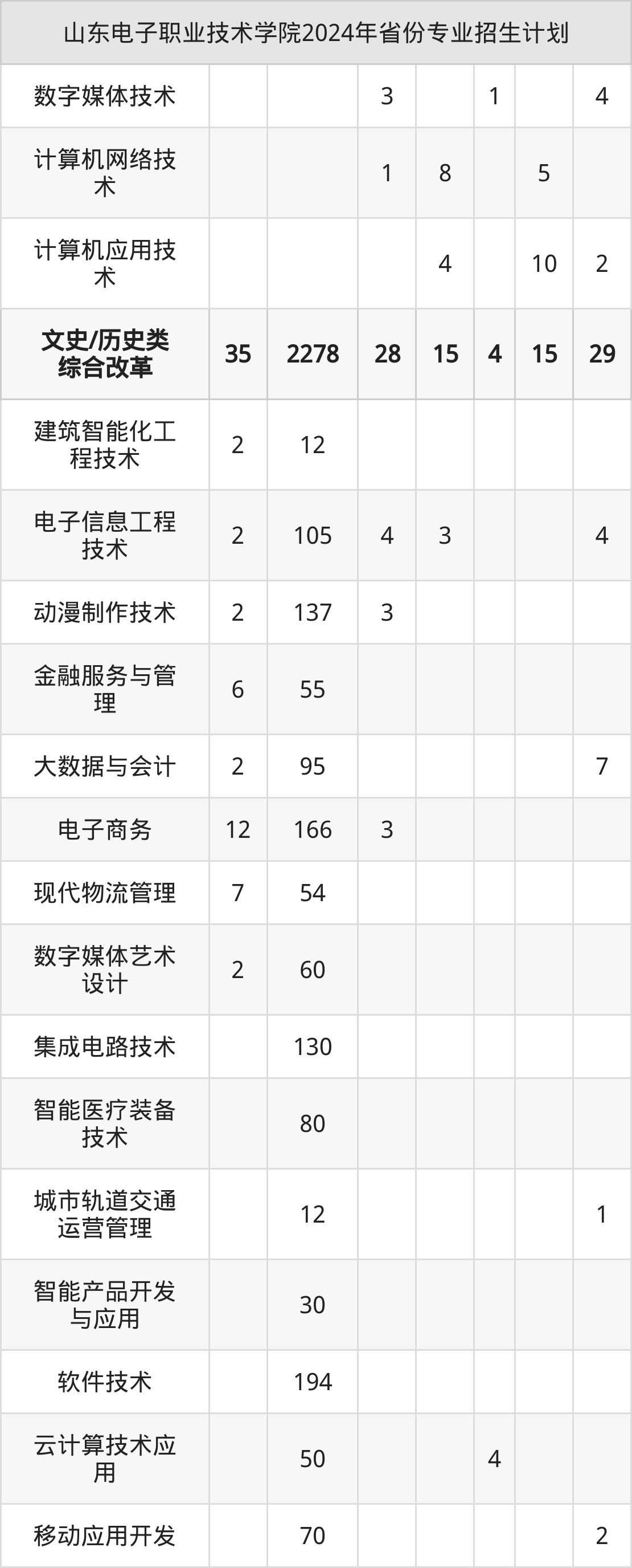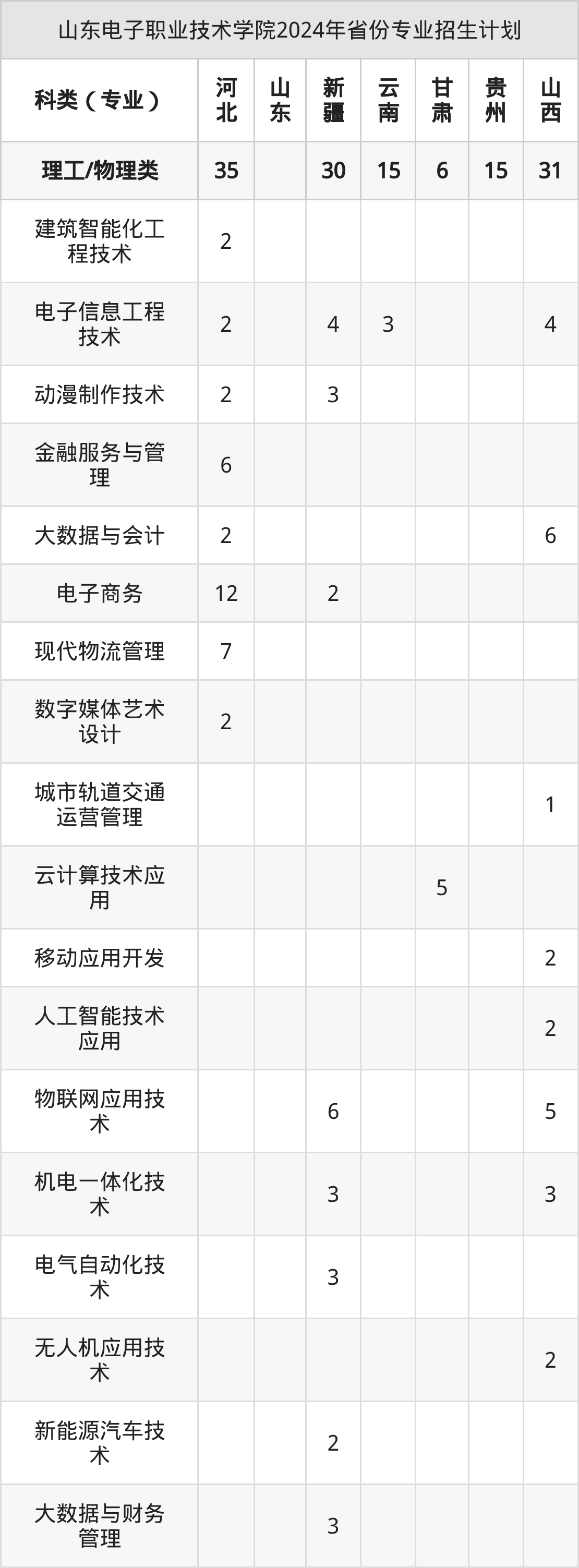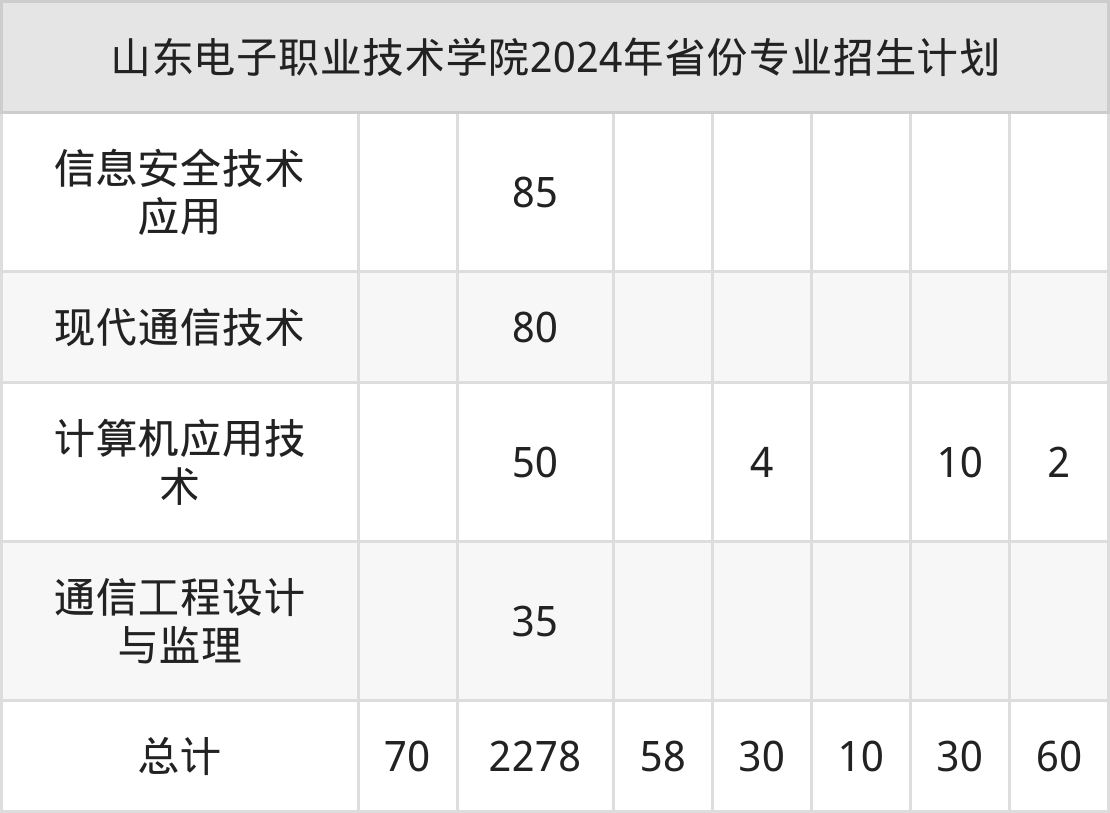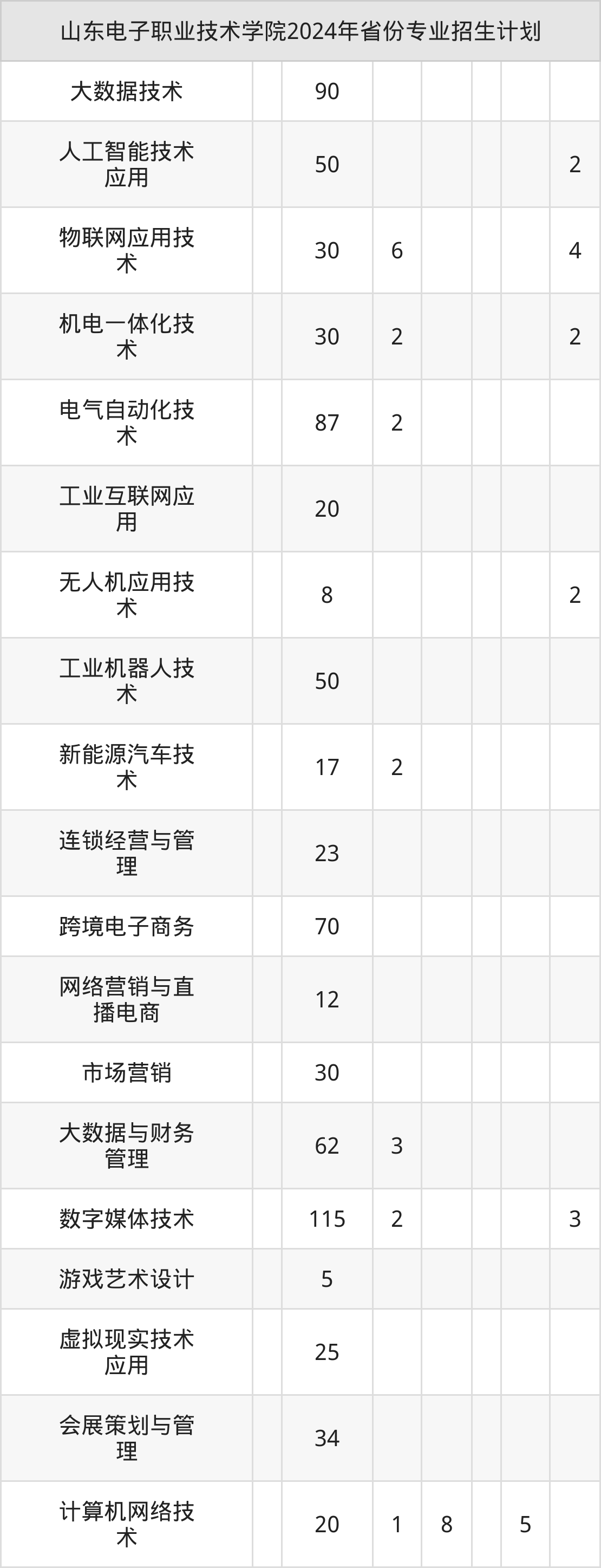 2025年山东电子职业技术学院专科招生计划待公布,下面附上2024年数据,暂供参考: