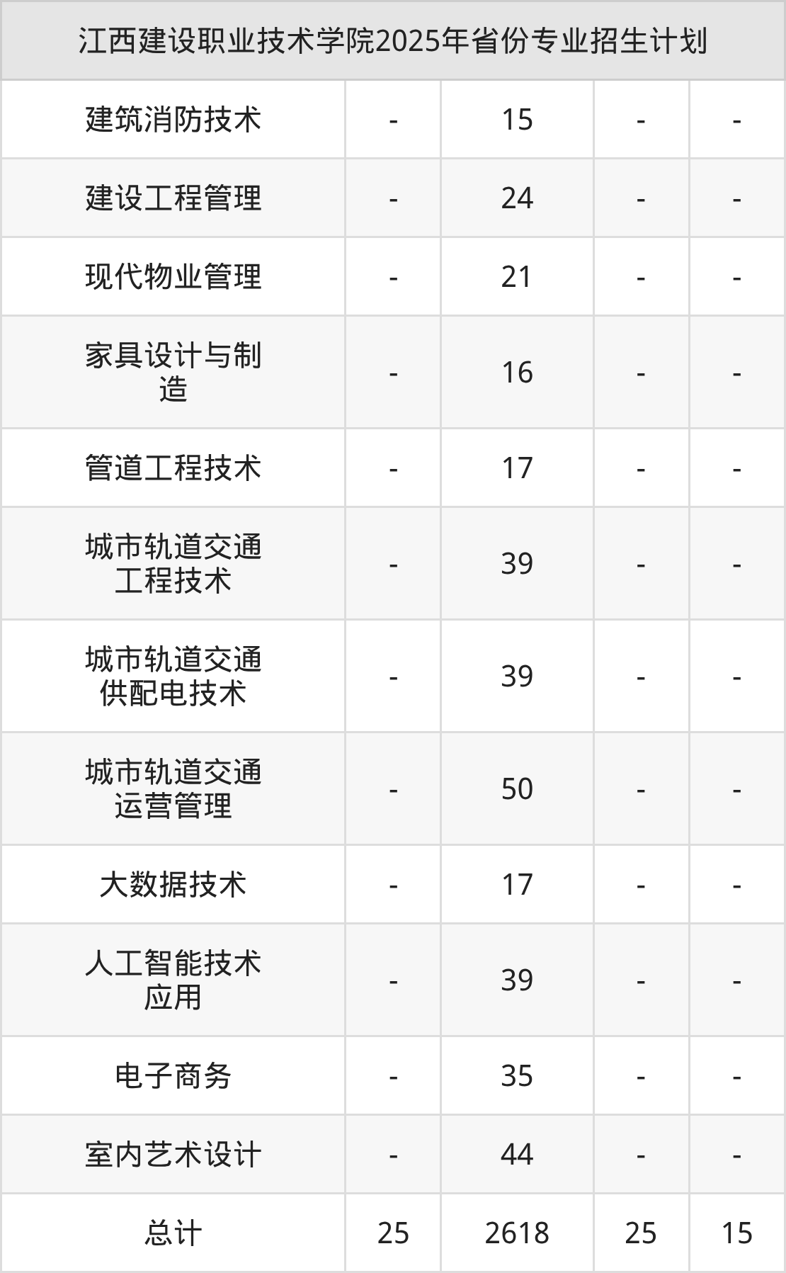2026年江西建设职业技术学院专科招生计划待公布,下面附上2025年数据,暂供参考: