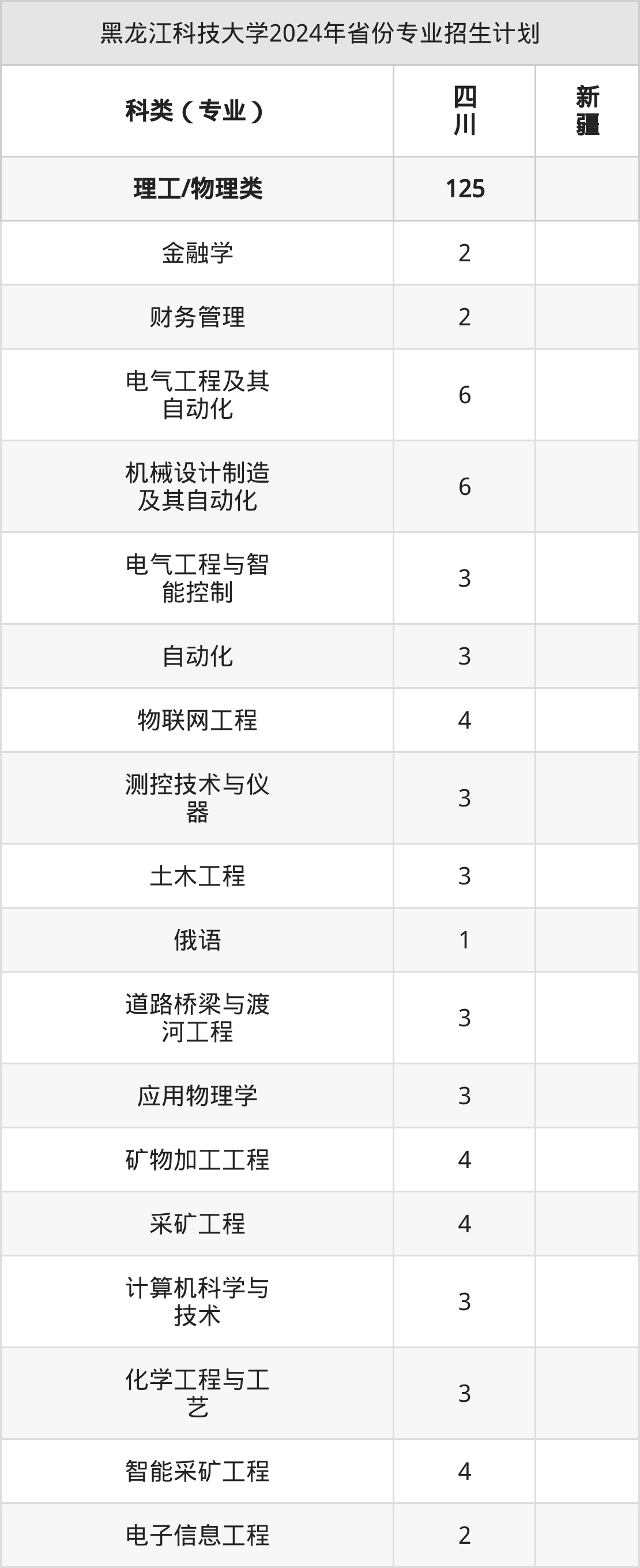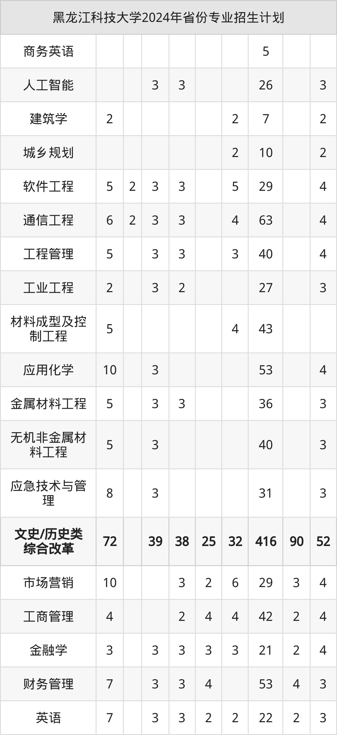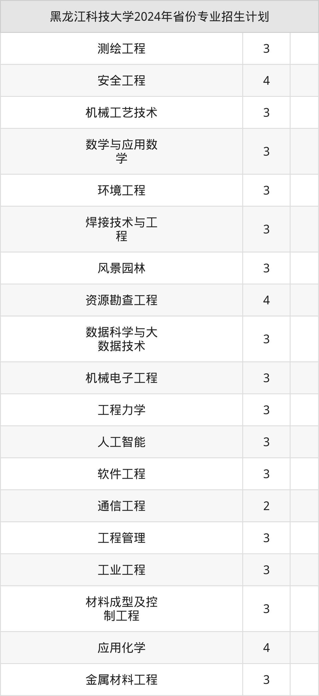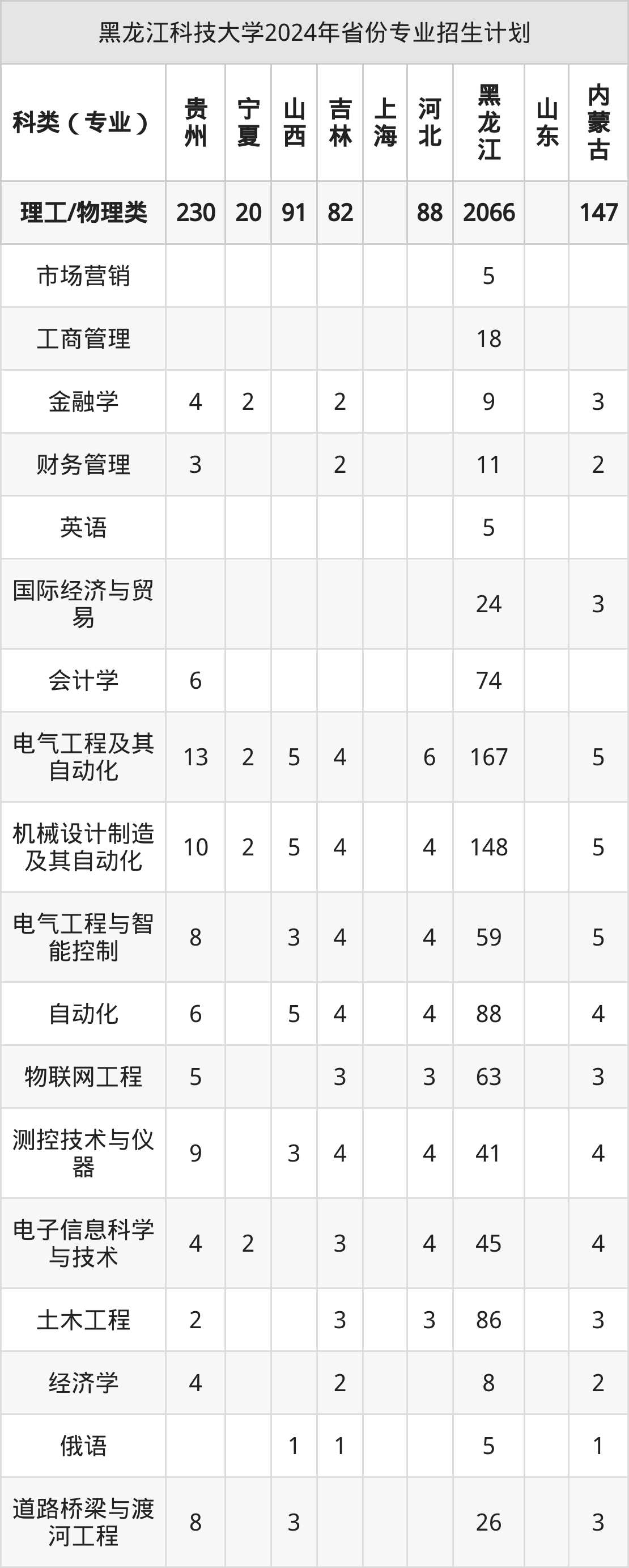 2025年黑龙江科技大学本科招生计划待公布,下面附上2024年数据,暂供参考:
