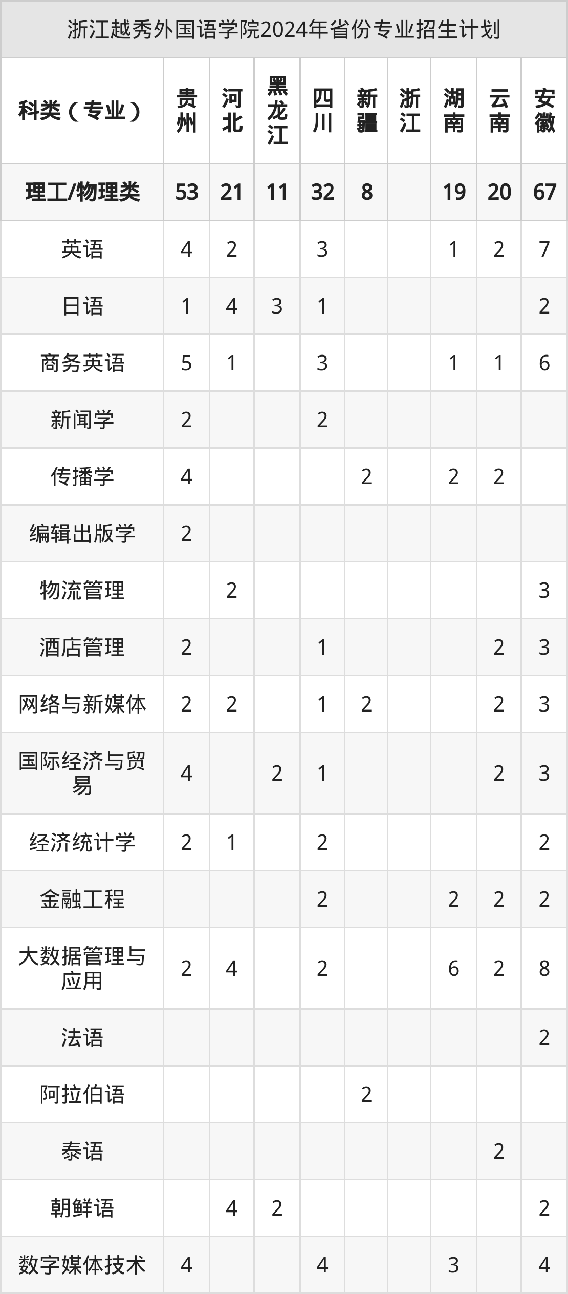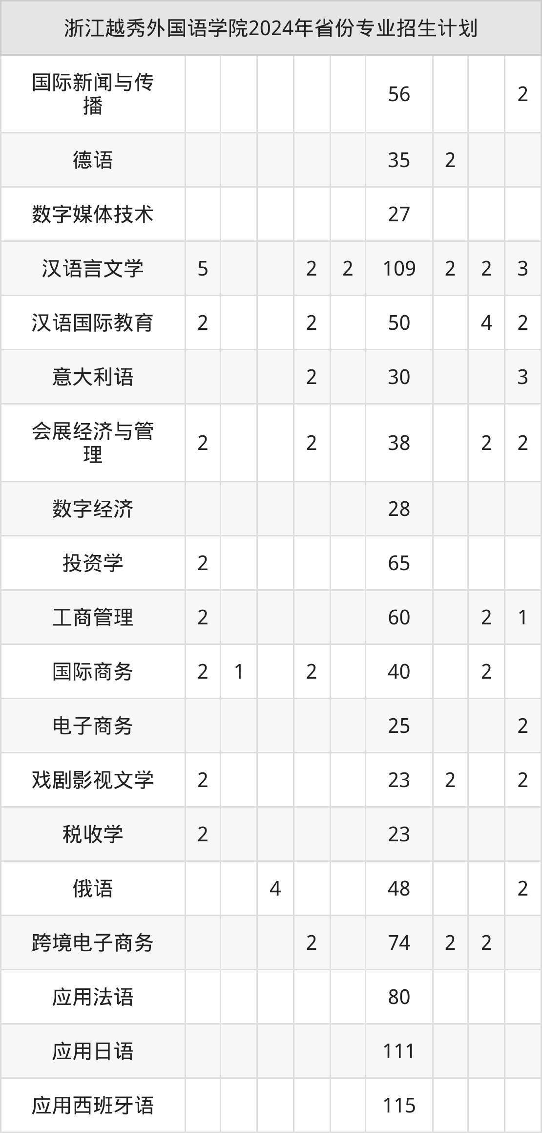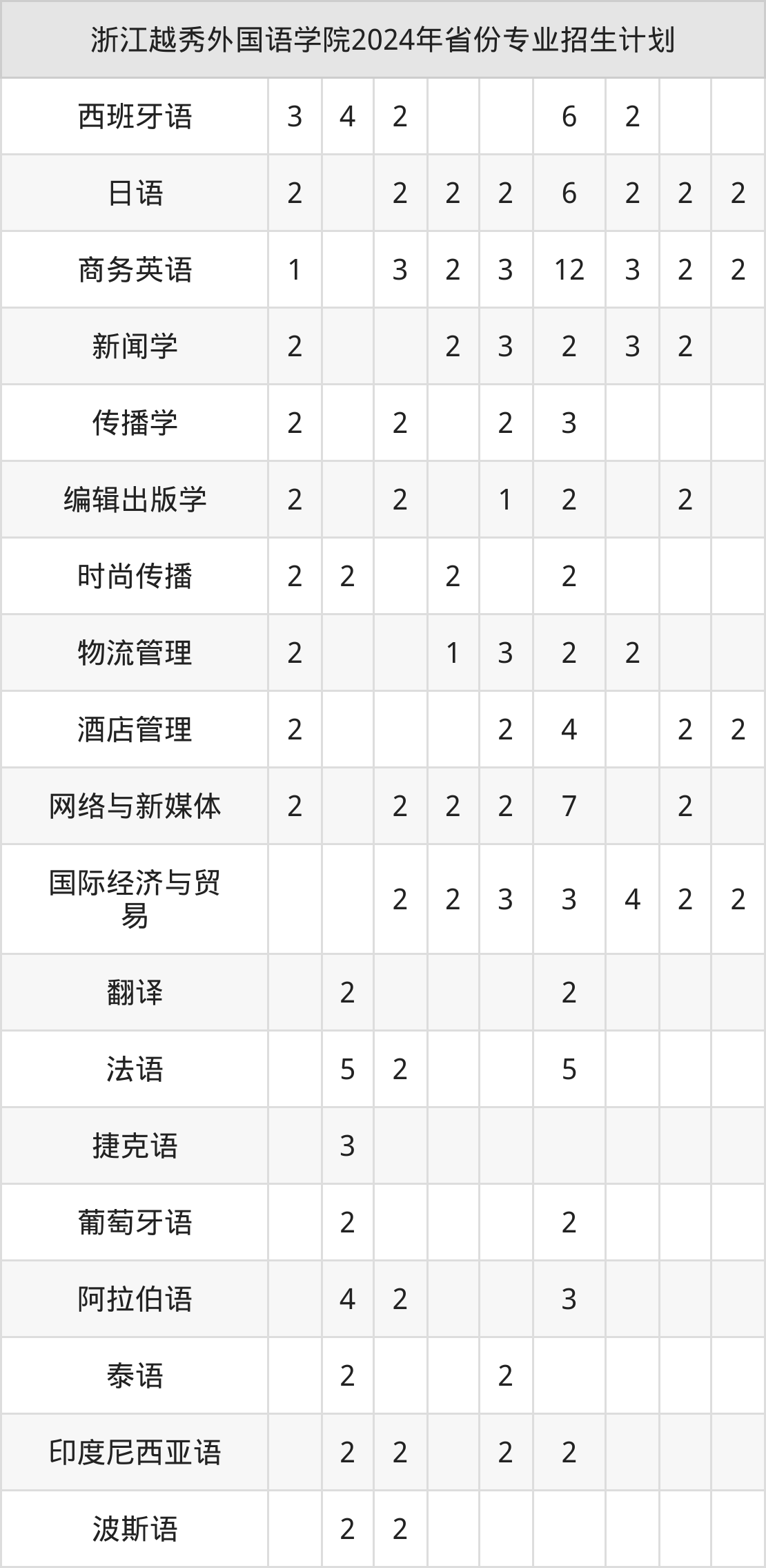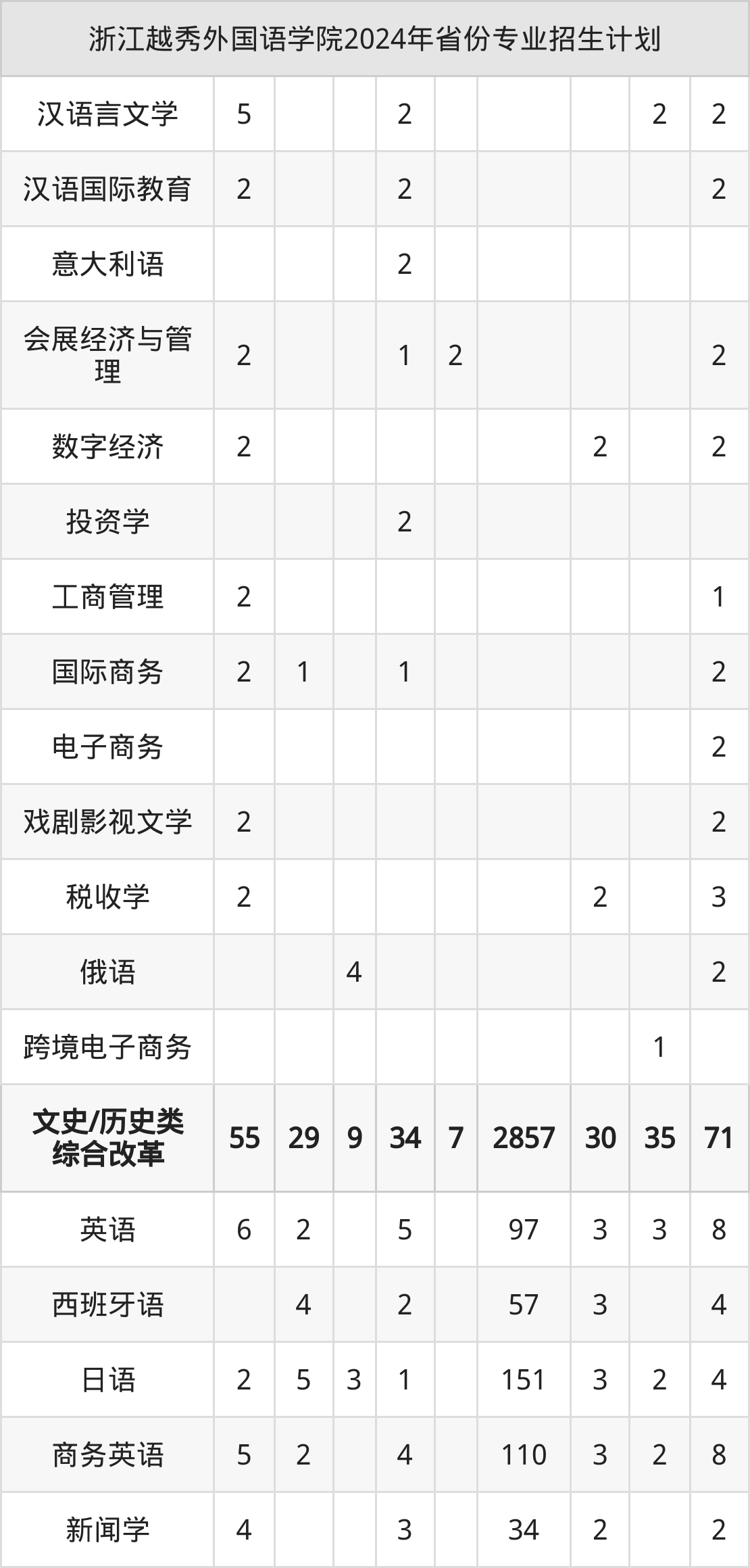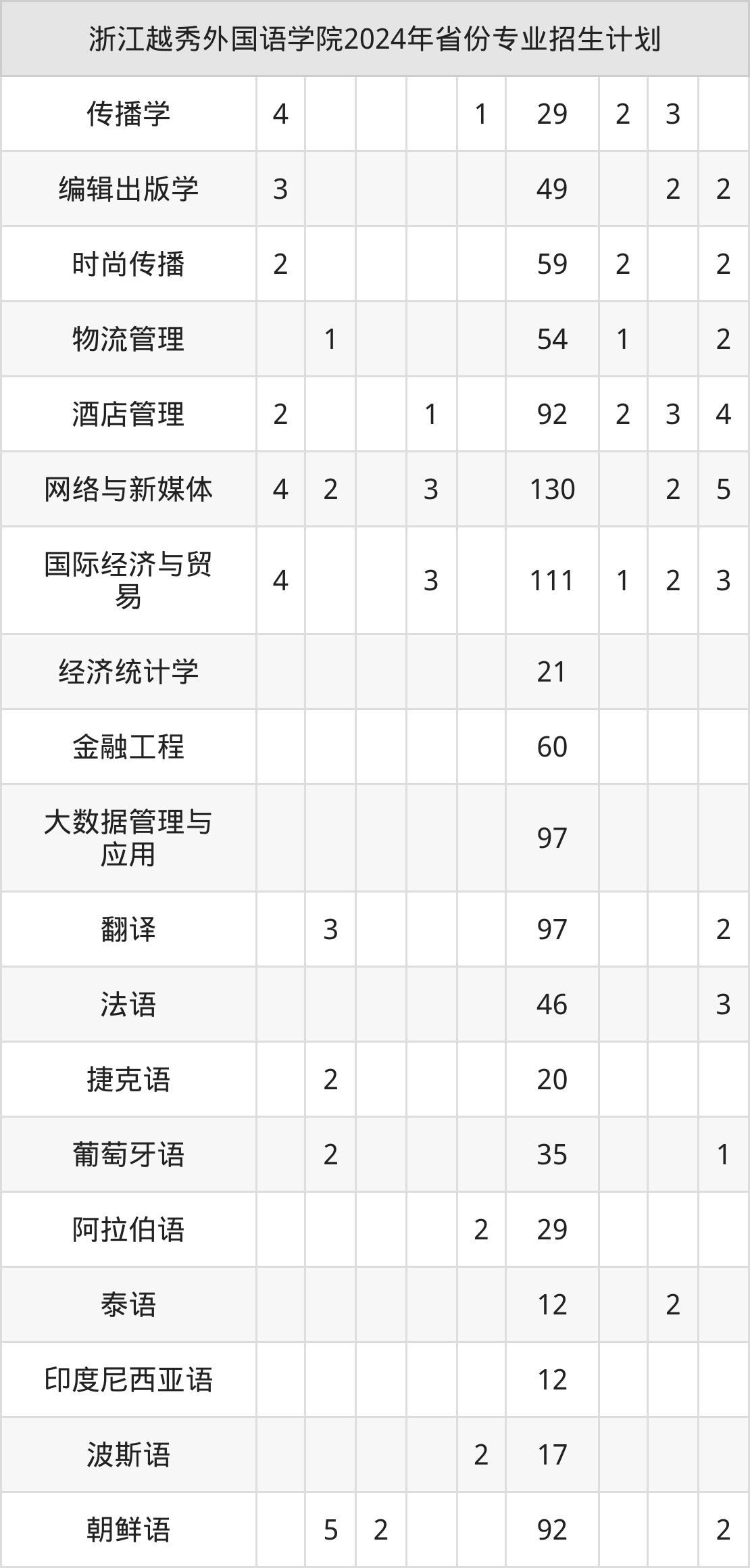 2025年浙江越秀外国语学院本科招生计划待公布,下面附上2024年数据,暂供参考:
