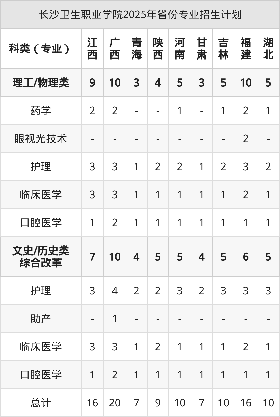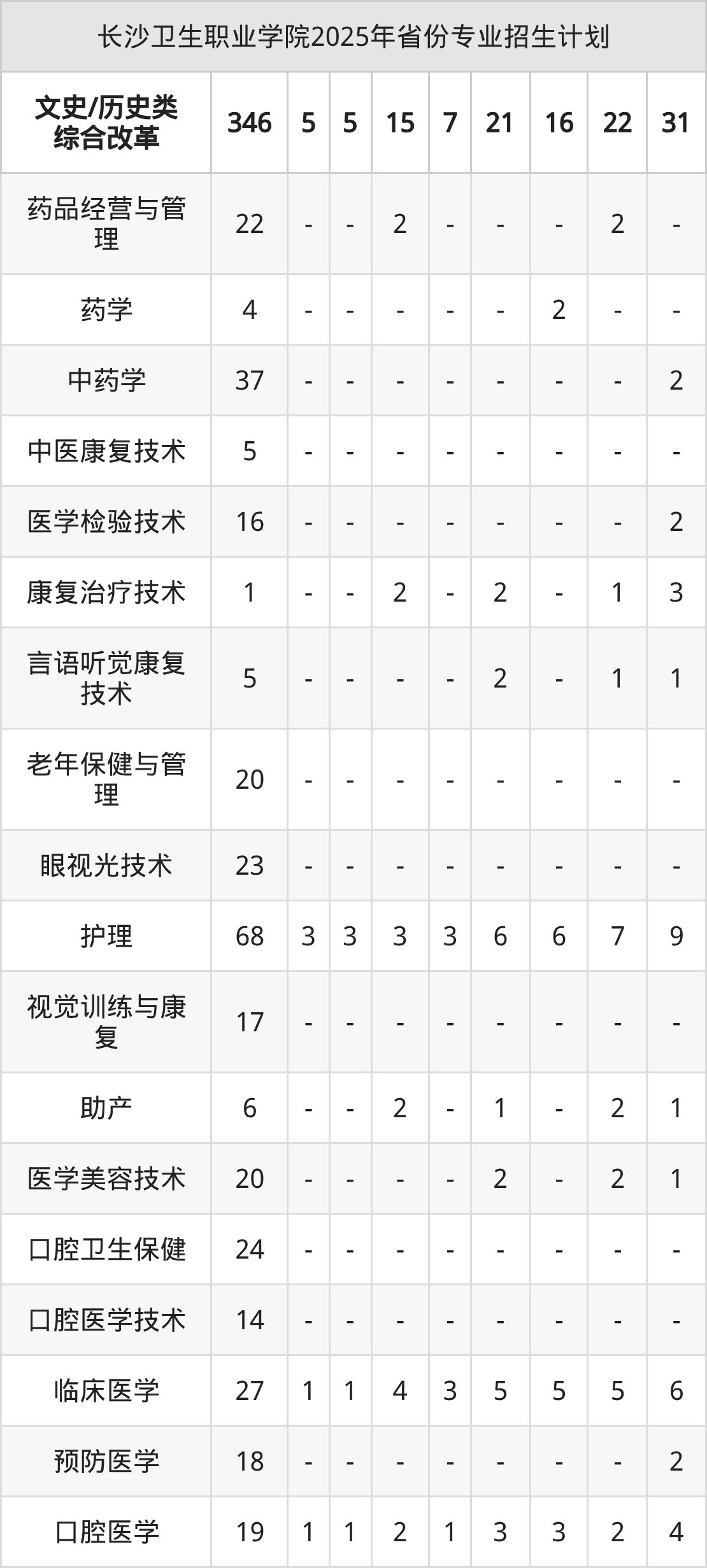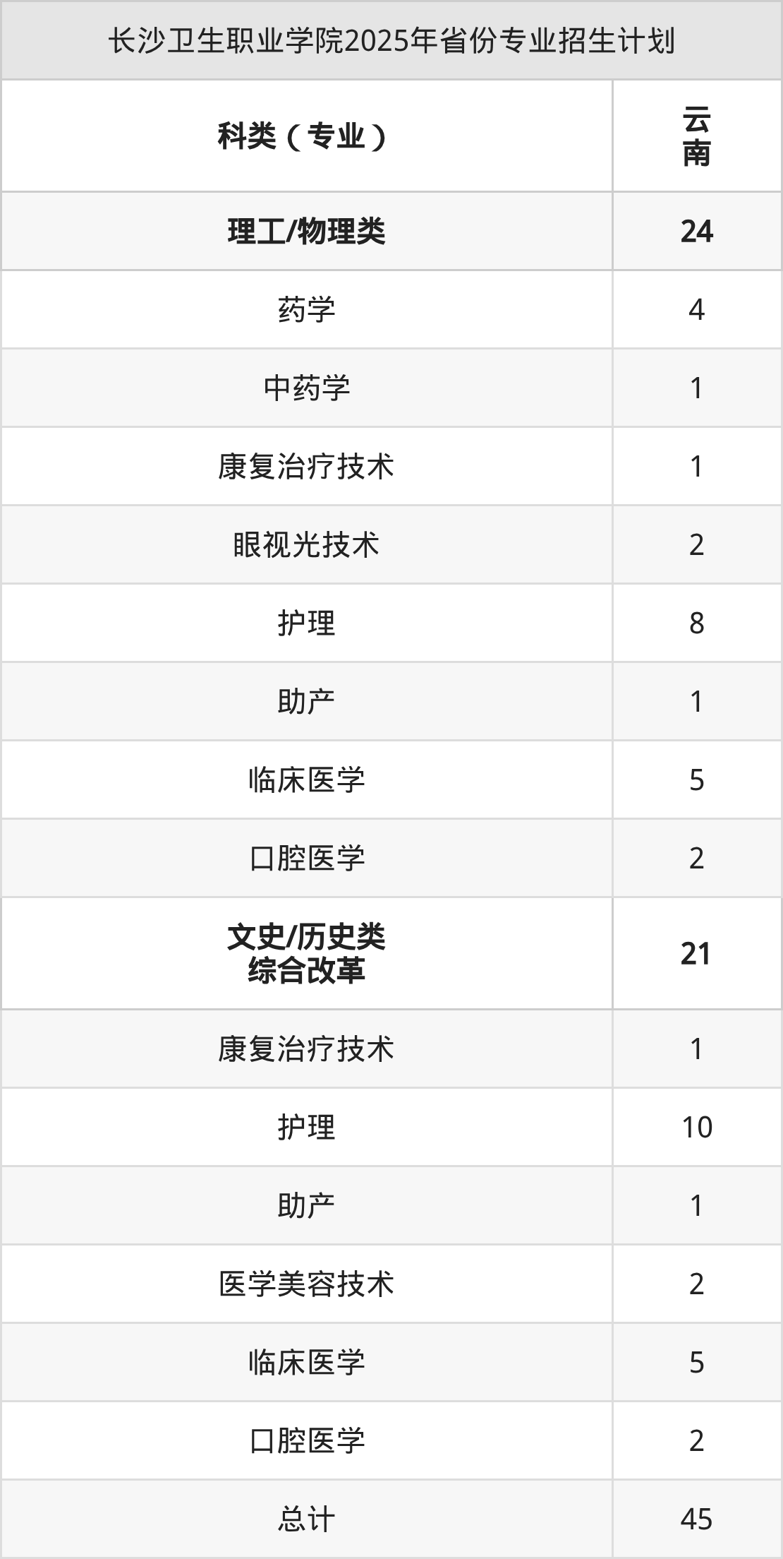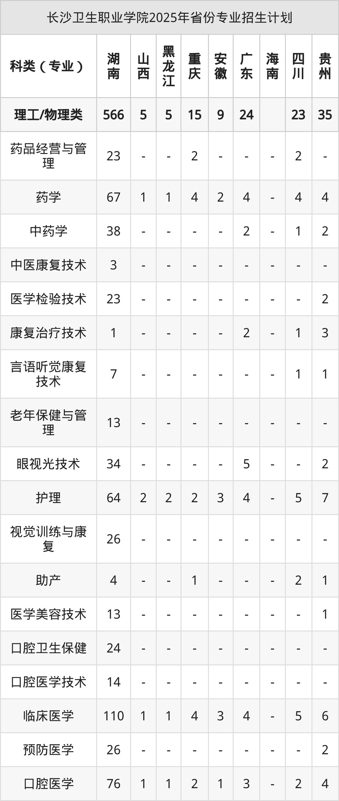 2026年长沙卫生职业学院专科招生计划待公布,下面附上2025年数据,暂供参考: