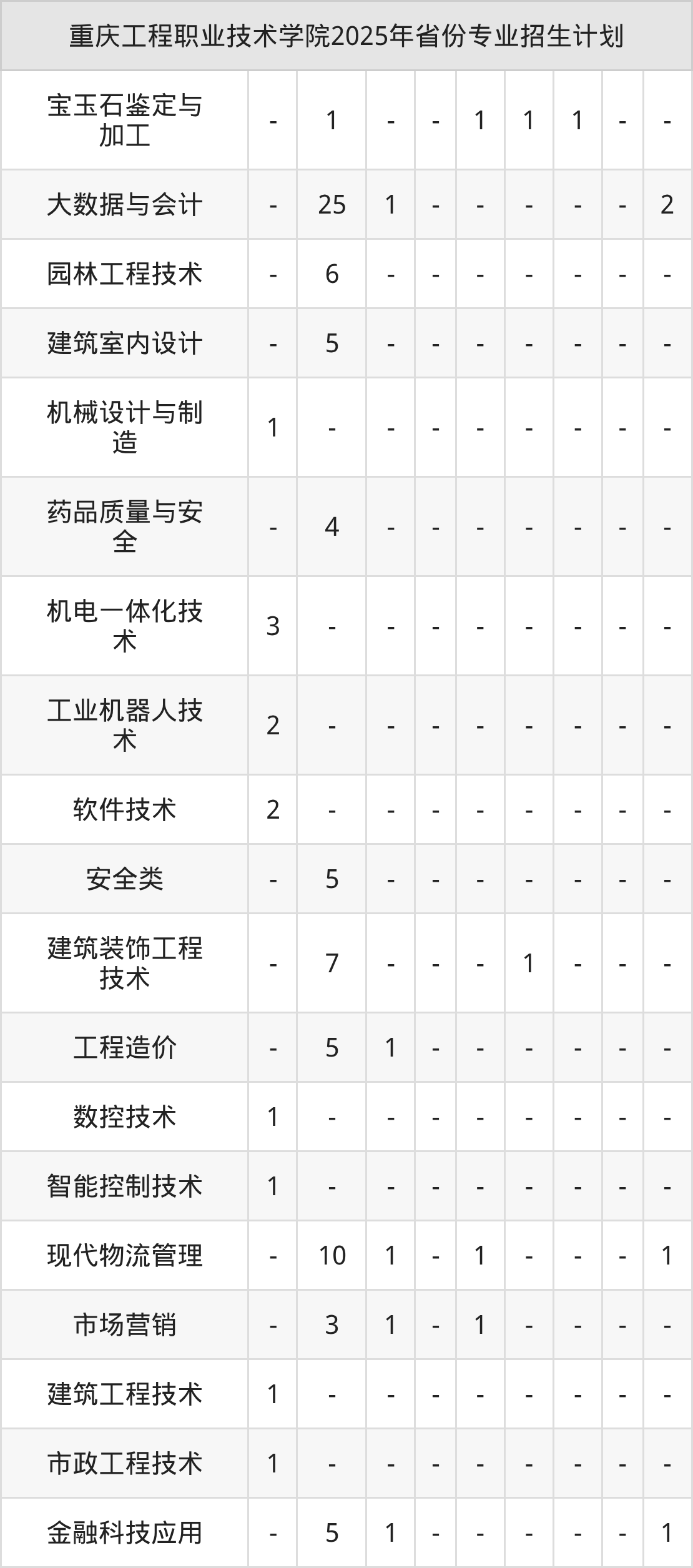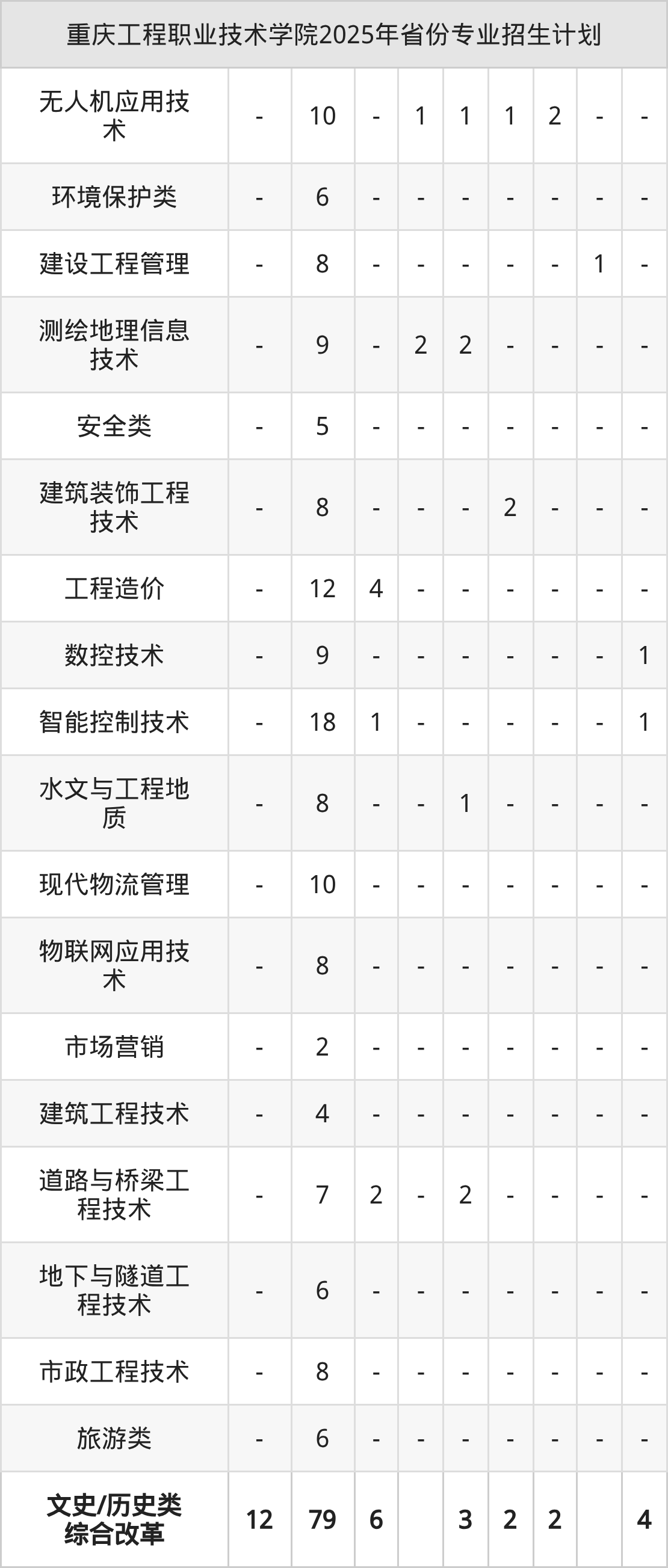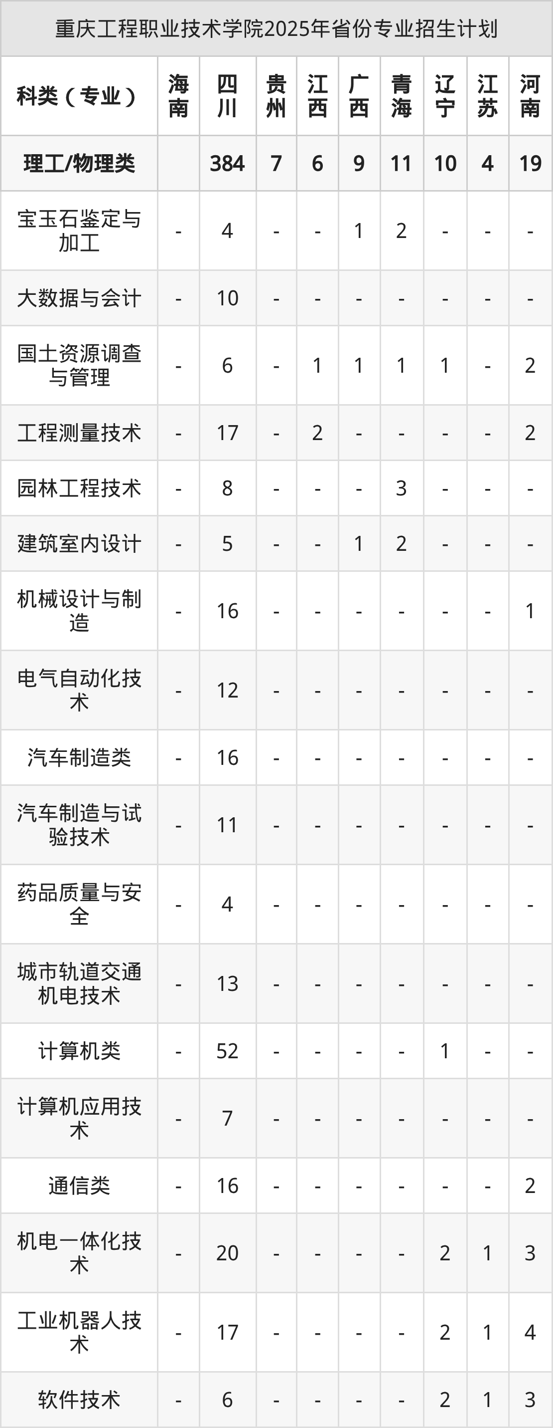 2026年重庆工程职业技术学院专科招生计划待公布,下面附上2025年数据,暂供参考: