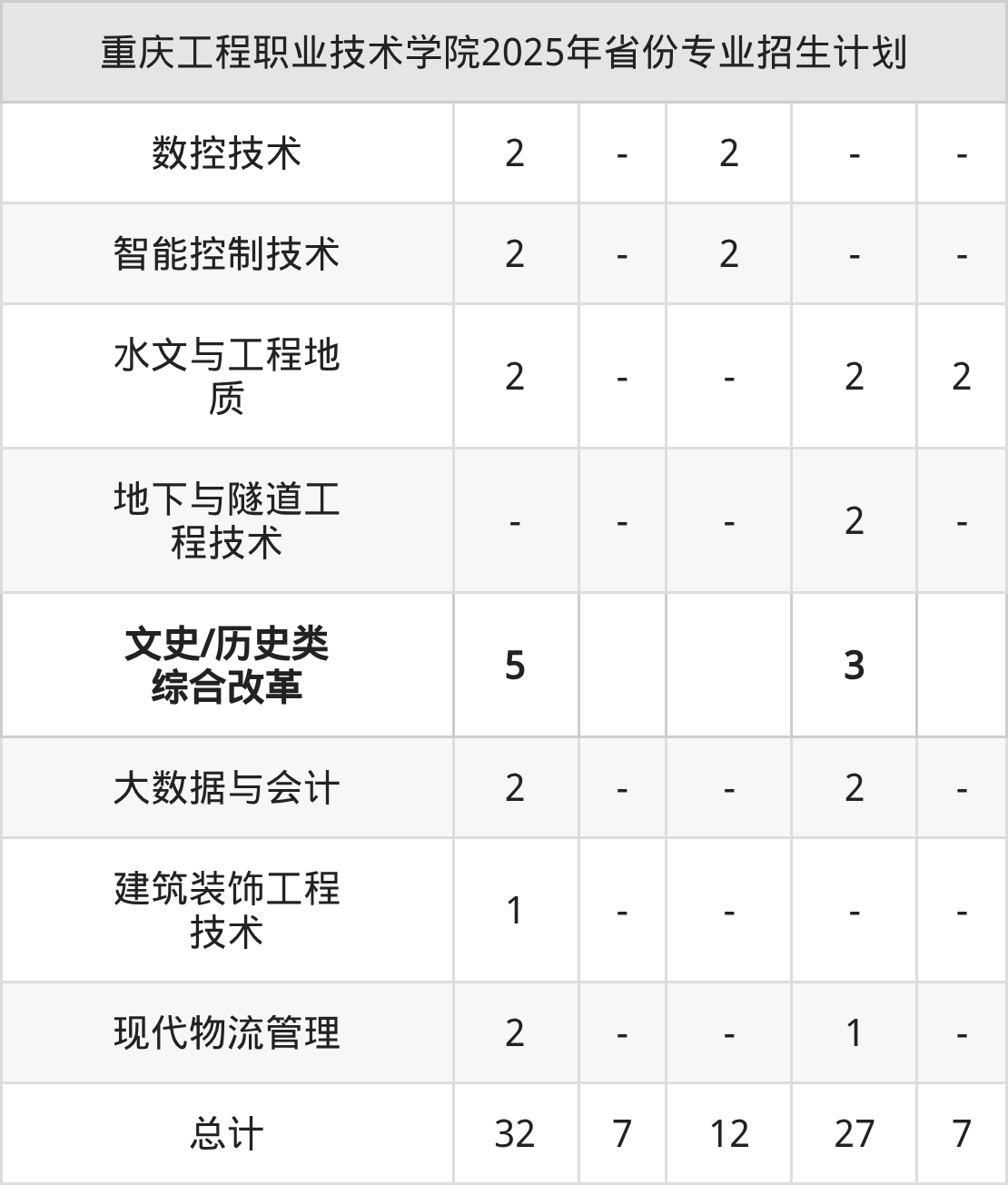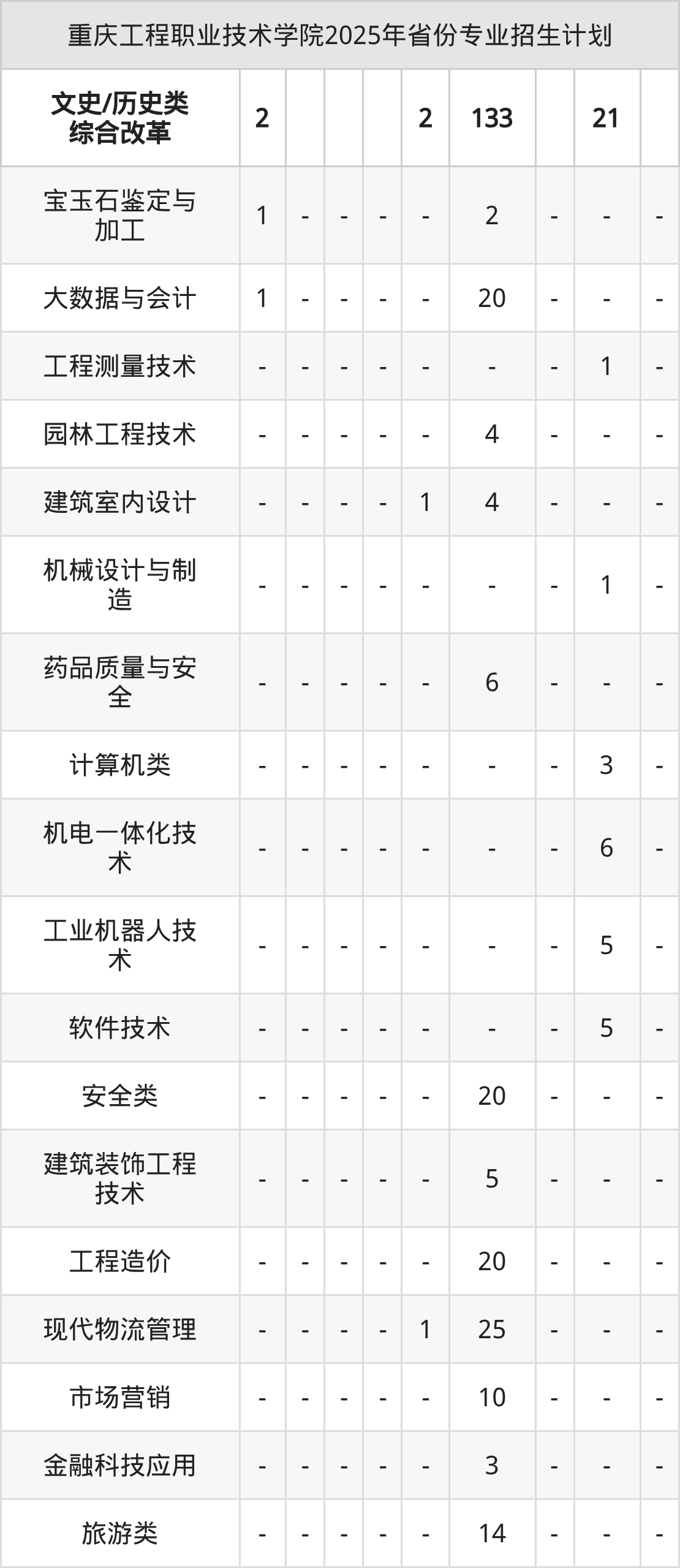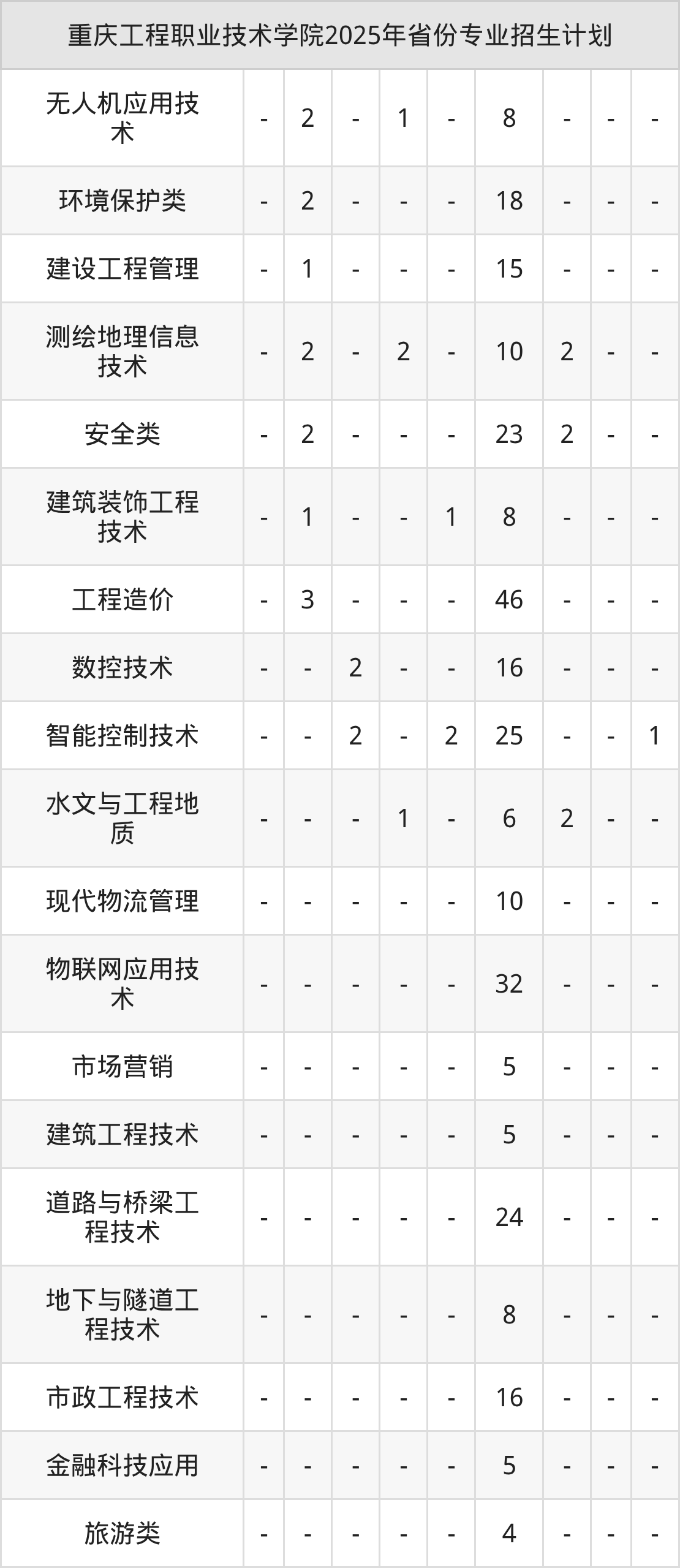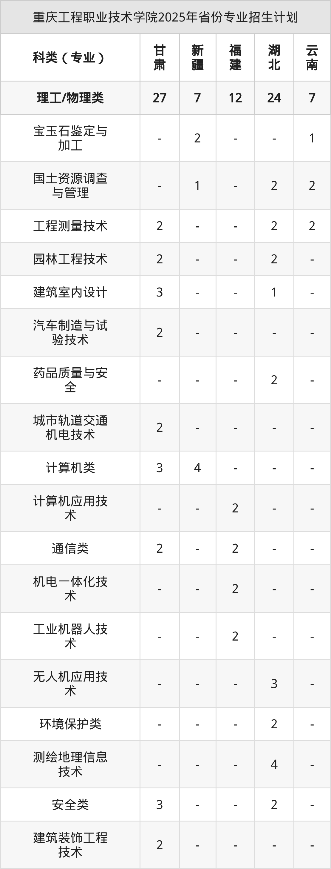 2026年重庆工程职业技术学院专科招生计划待公布,下面附上2025年数据,暂供参考: