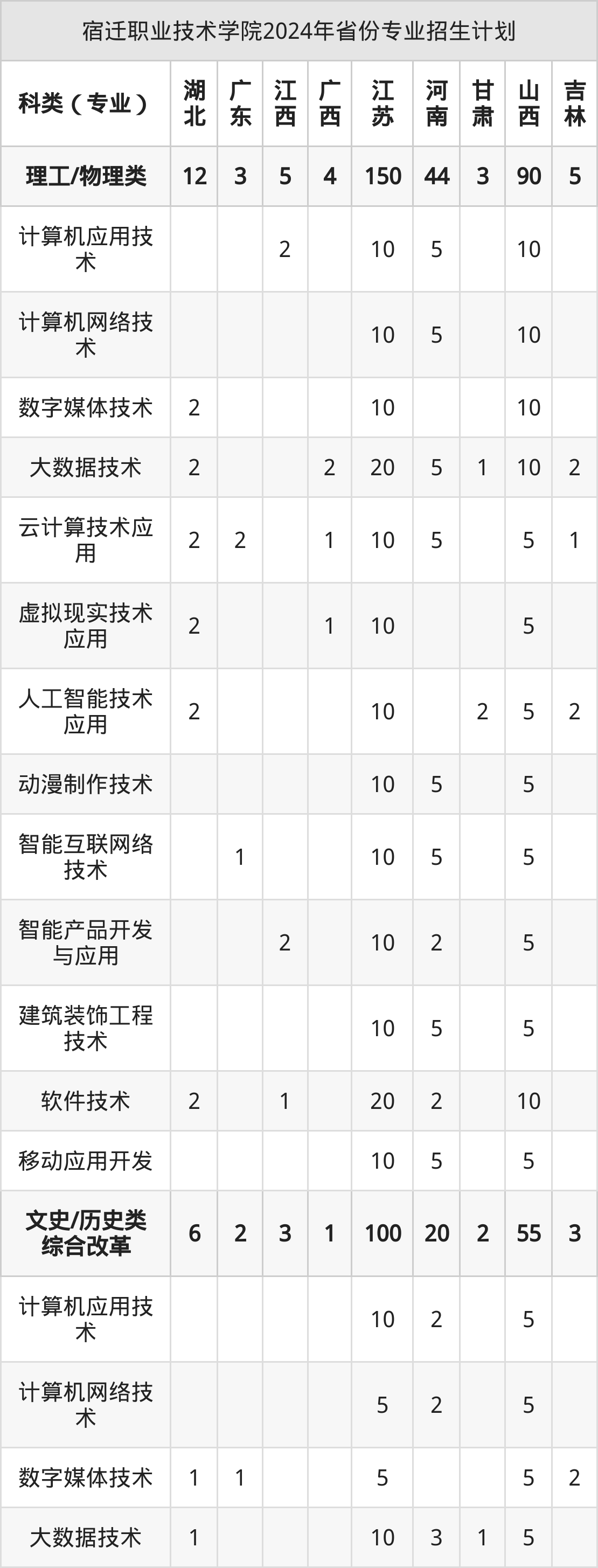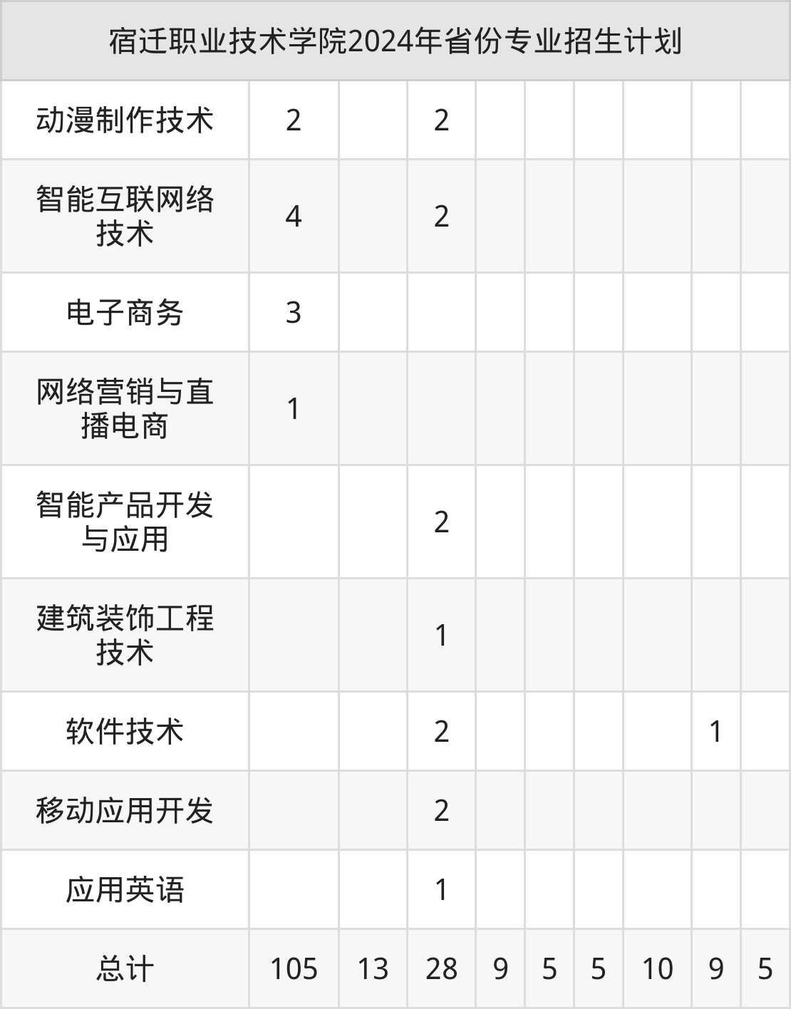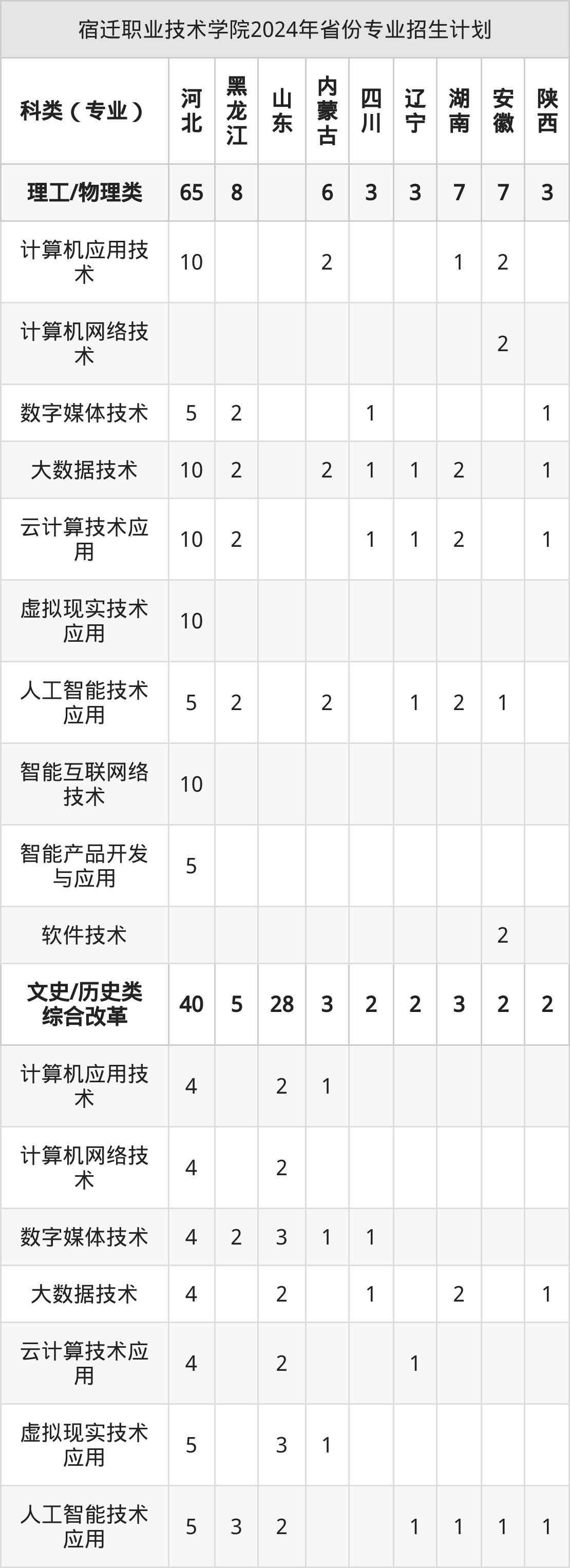 2025年宿迁职业技术学院专科招生计划待公布,下面附上2024年数据,暂供参考: