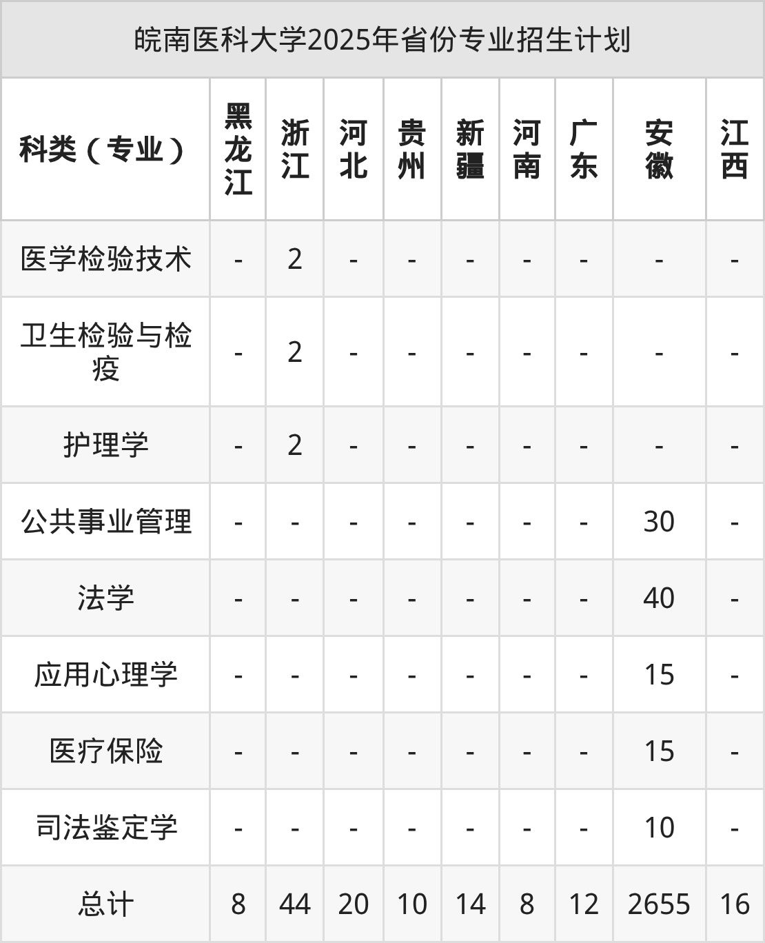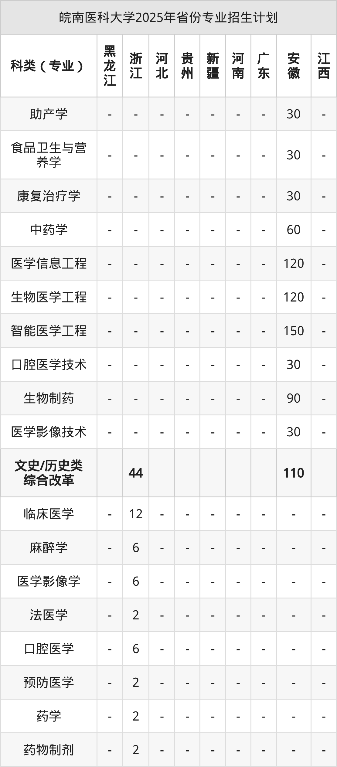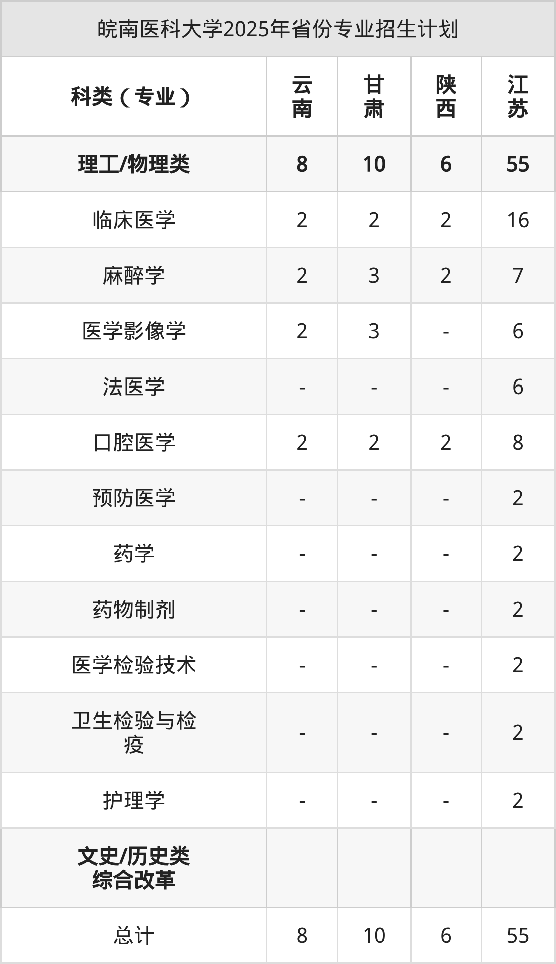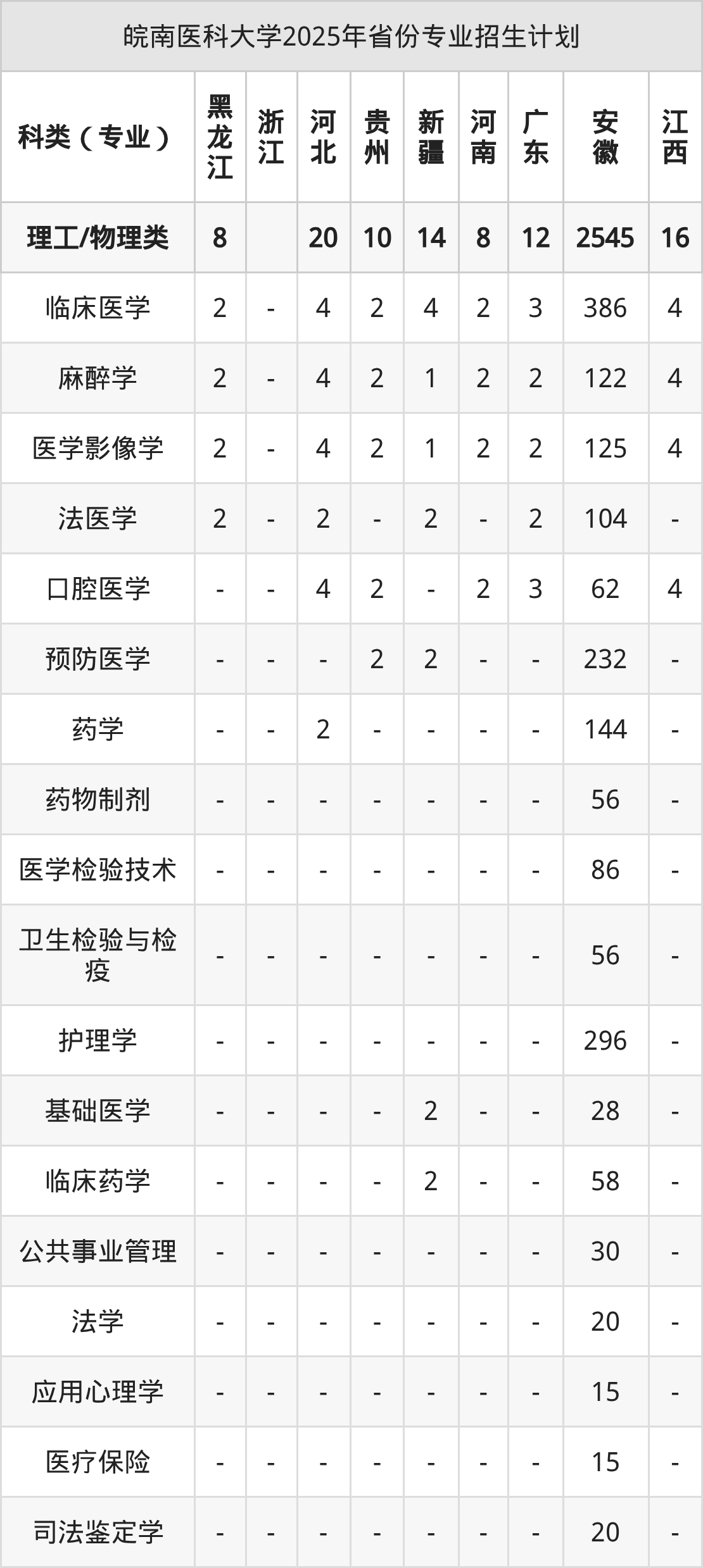 2026年皖南医科大学本科招生计划待公布,下面附上2025年数据,暂供参考: