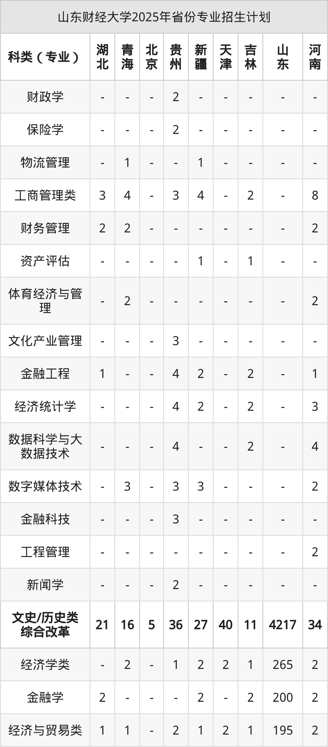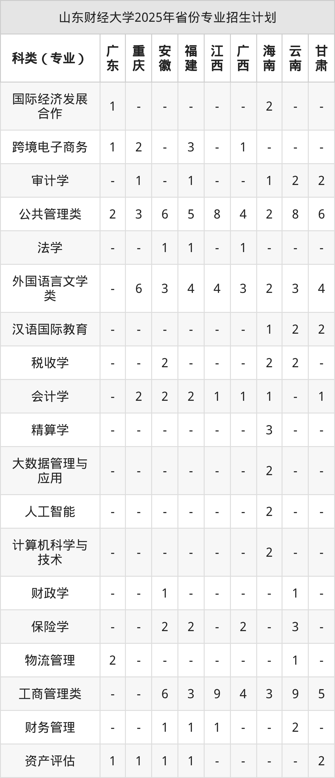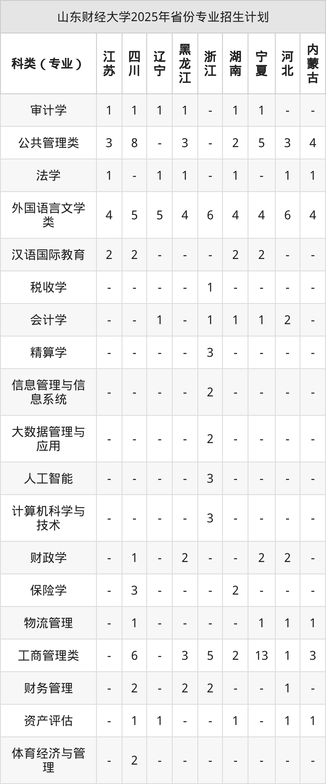 二、山东财经大学2026年招生计划