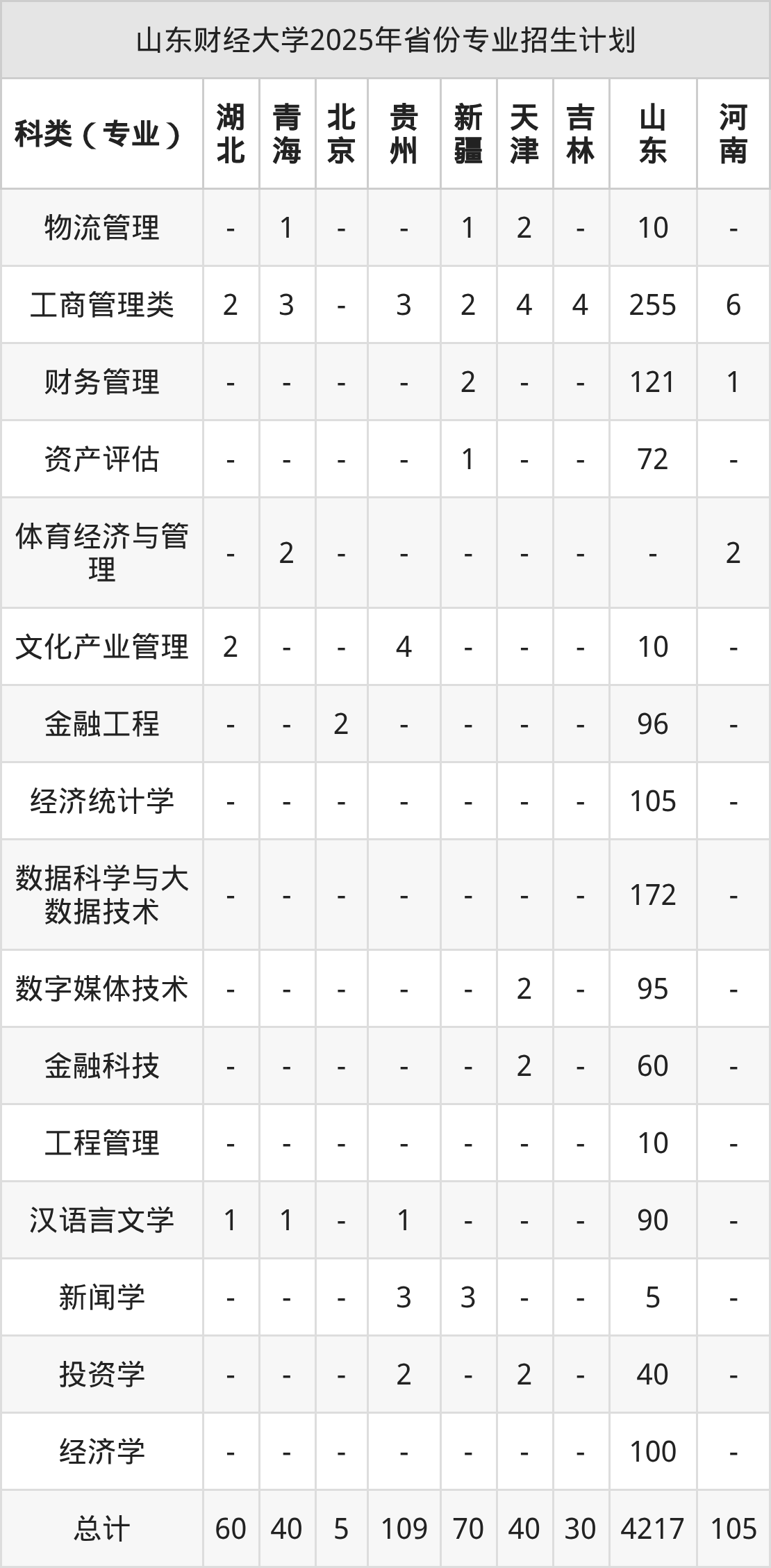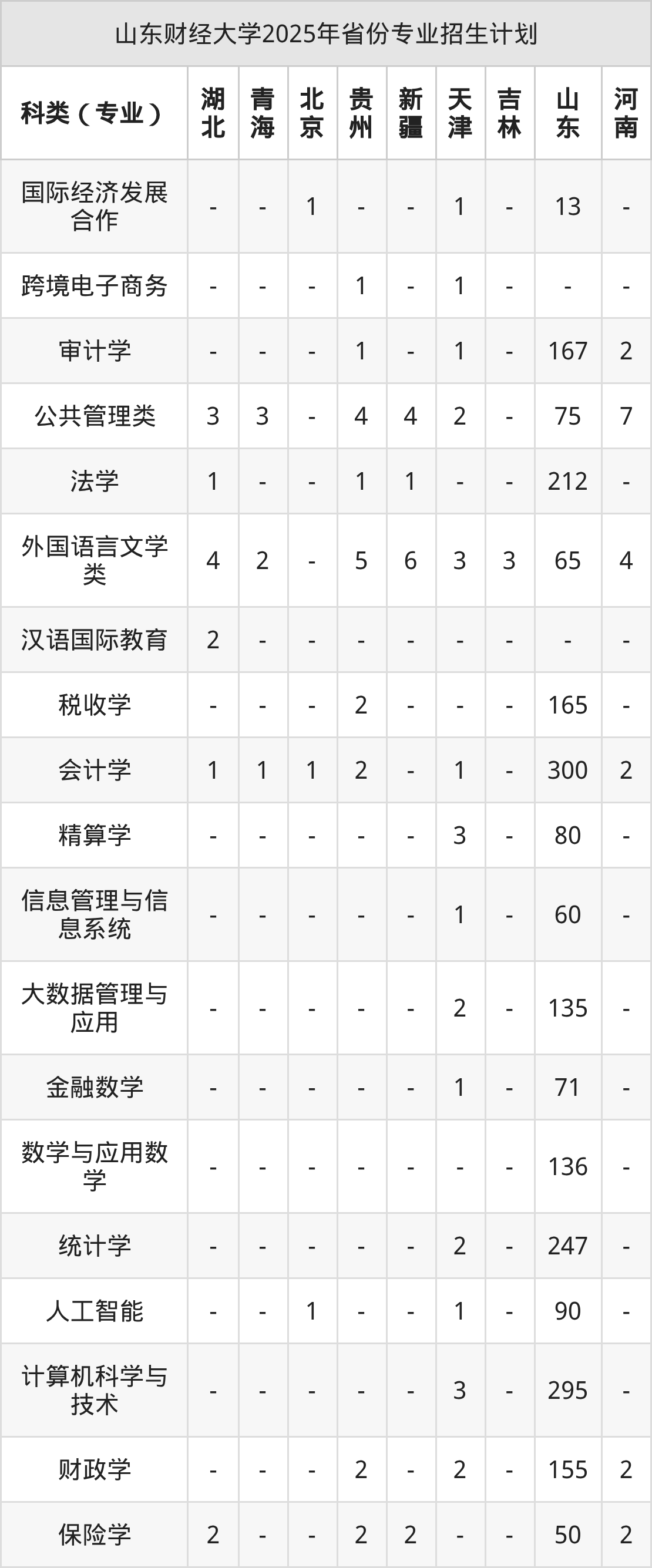 | 山东财经大学本科招生专业 | |