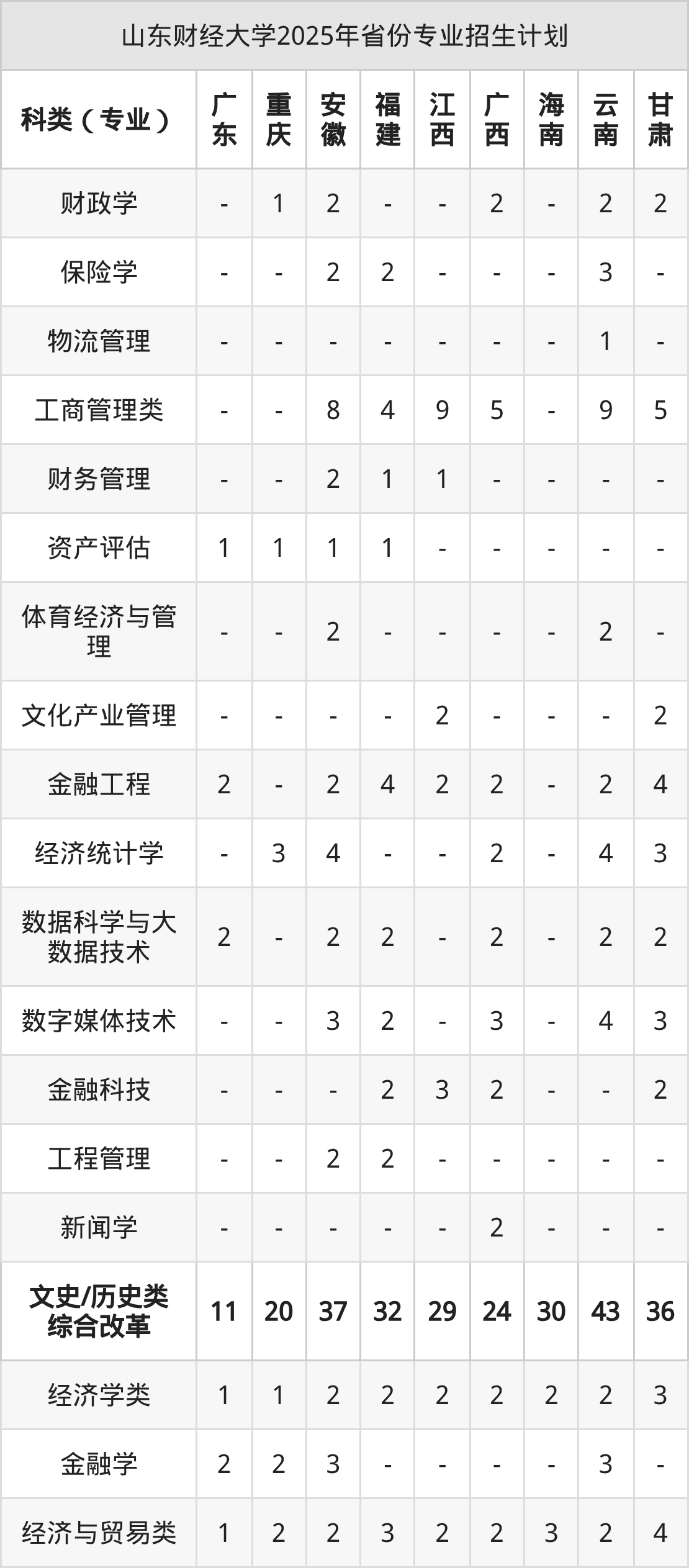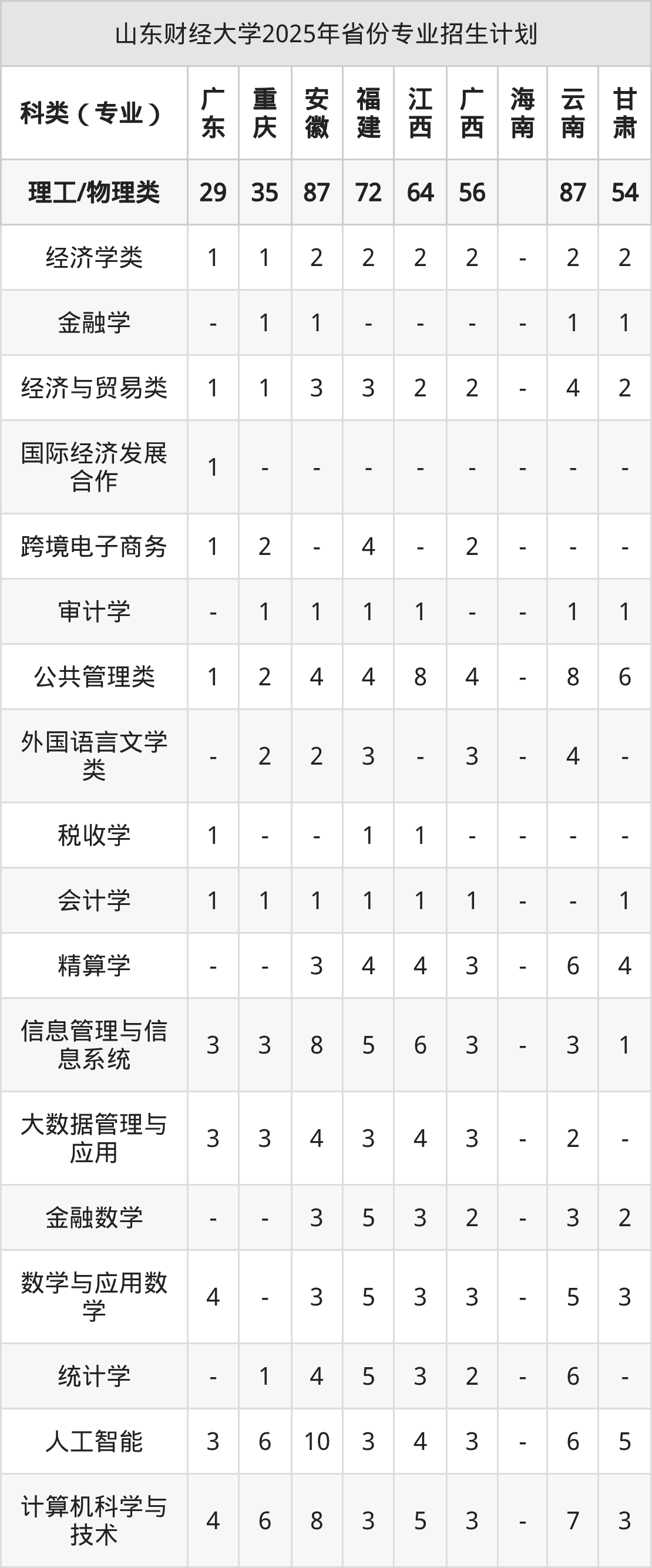 | 山东财经大学2025年本科最低分汇总 | ||||