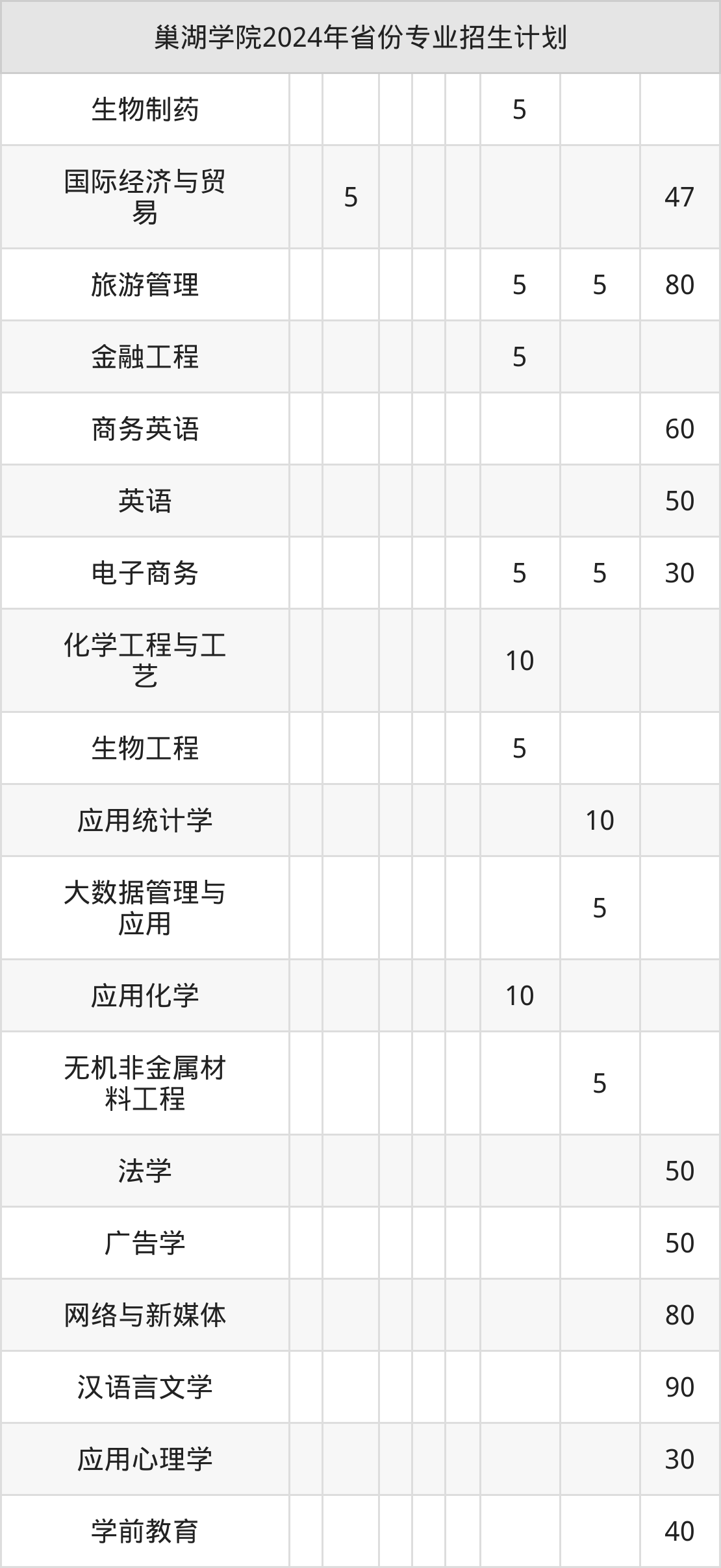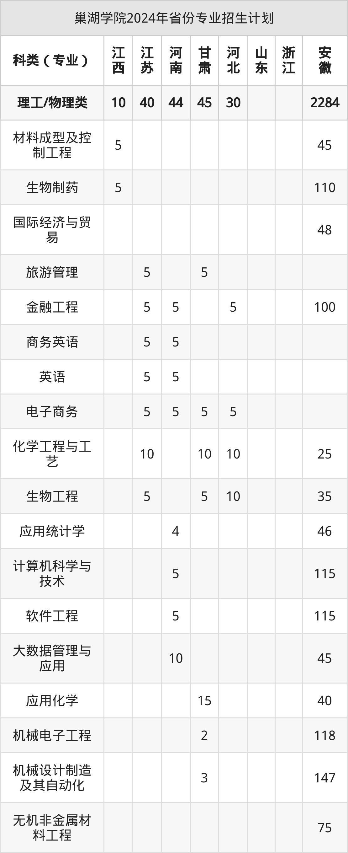 2025年巢湖学院本科招生计划待公布,下面附上2024年数据,暂供参考: