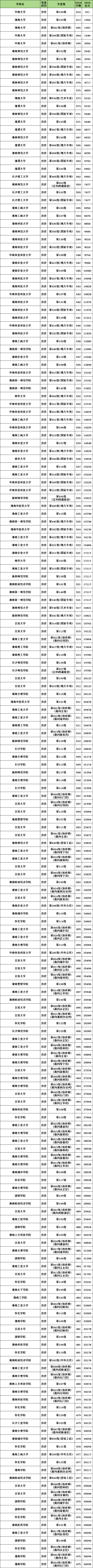 二、湖南省本科大学录取分数线