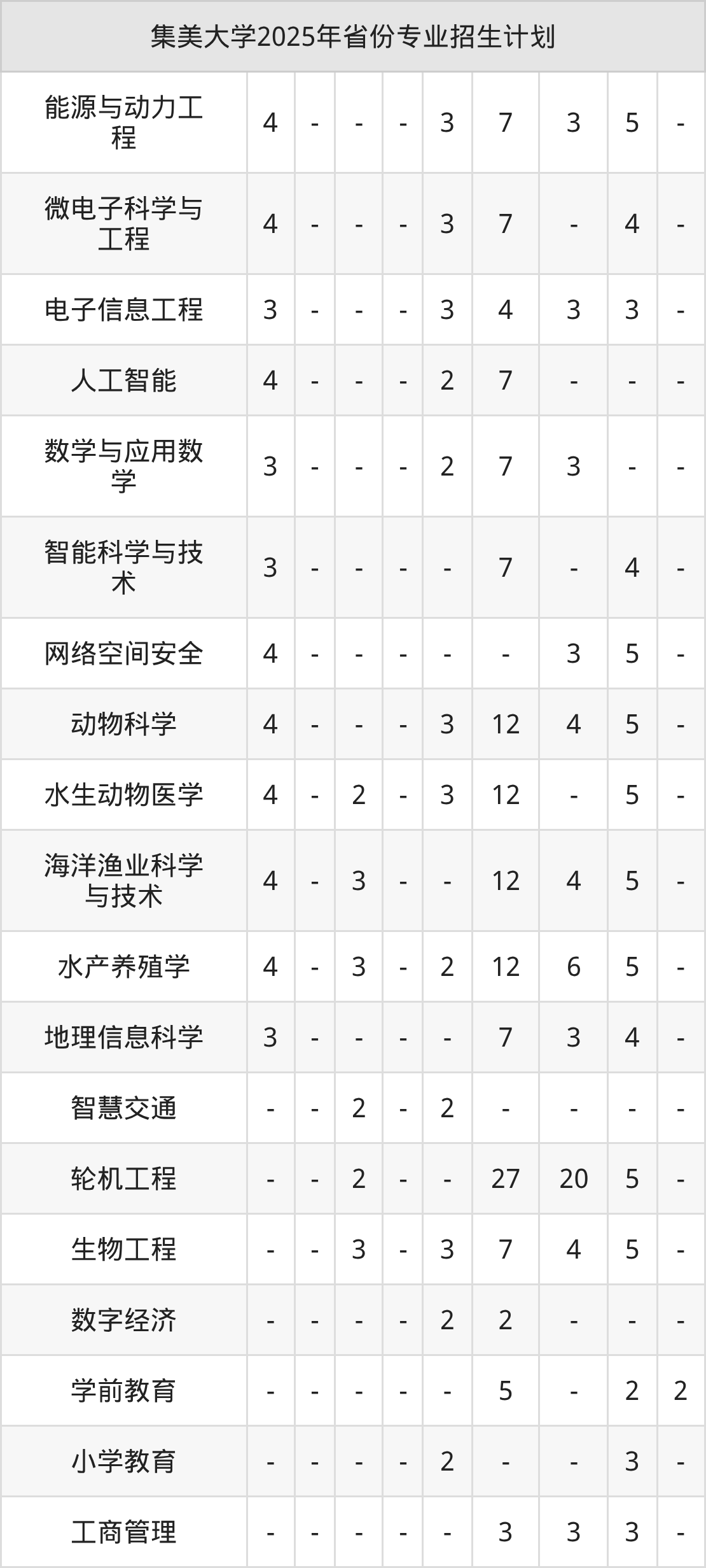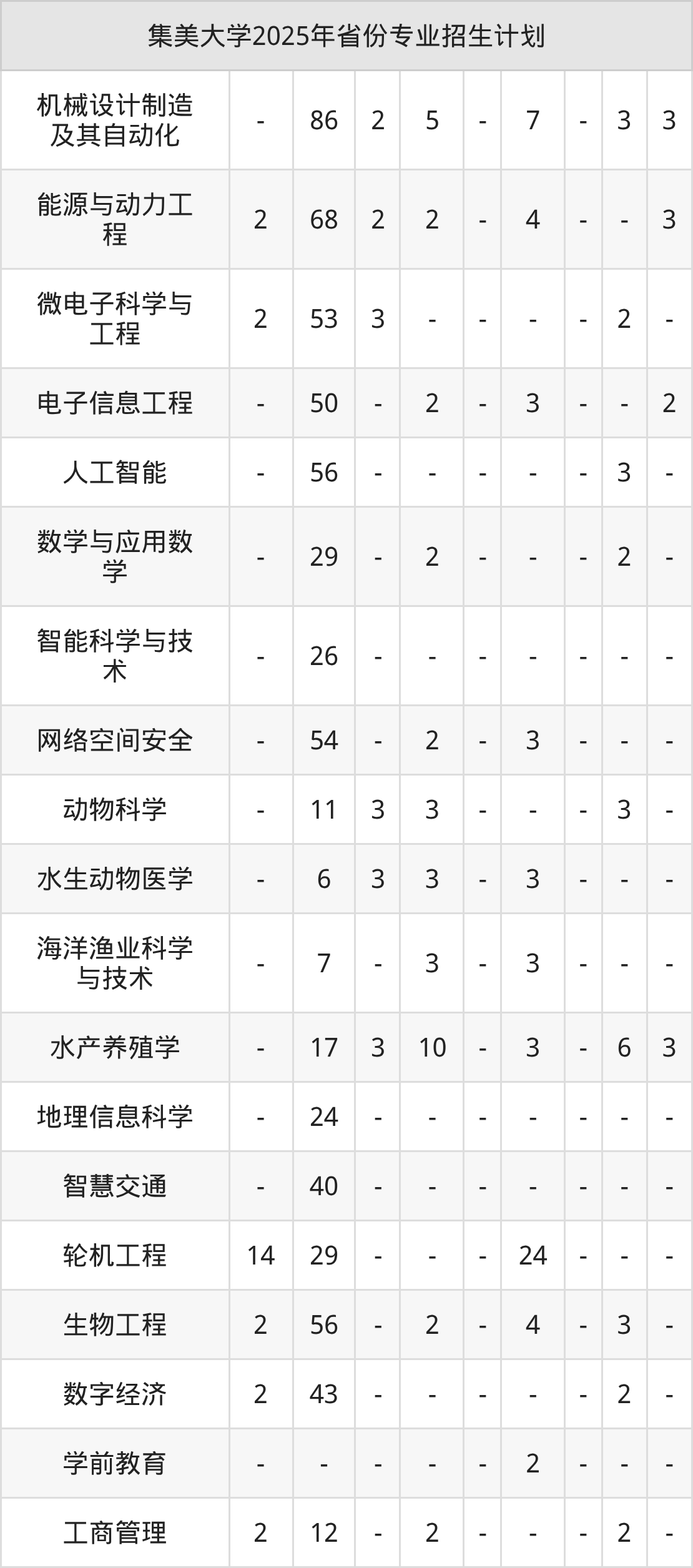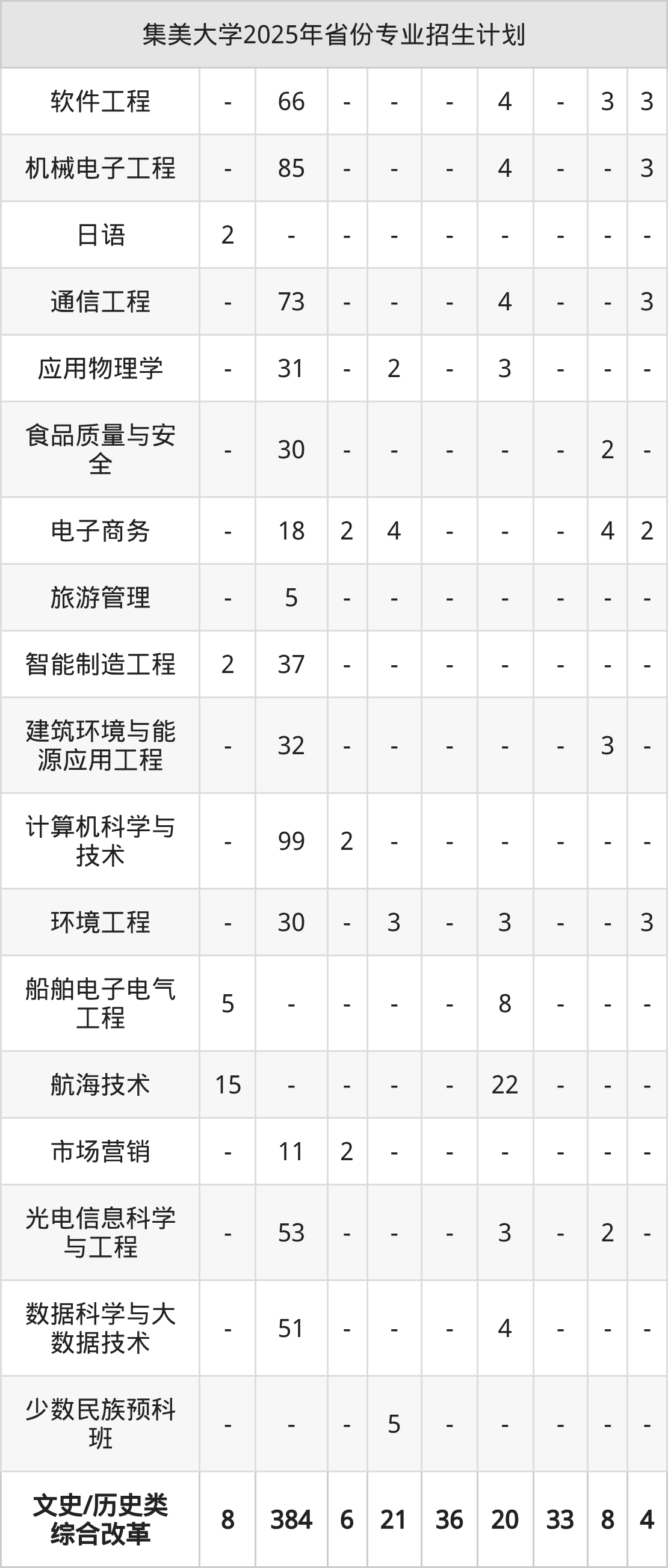 2026年集美大学本科招生计划待公布,下面附上2025年数据,暂供参考: