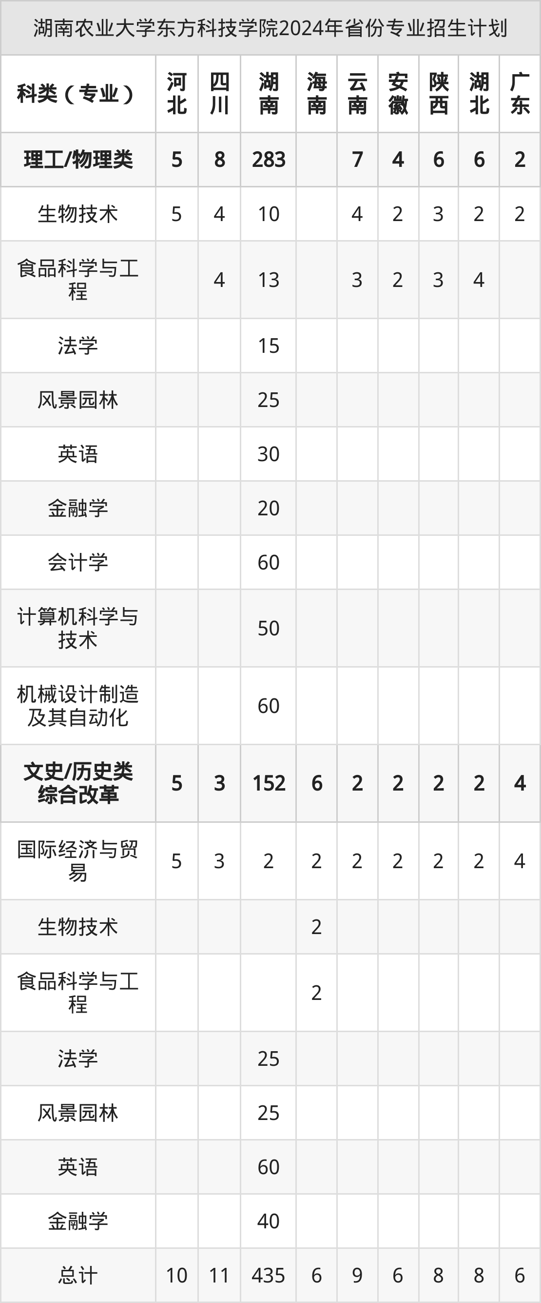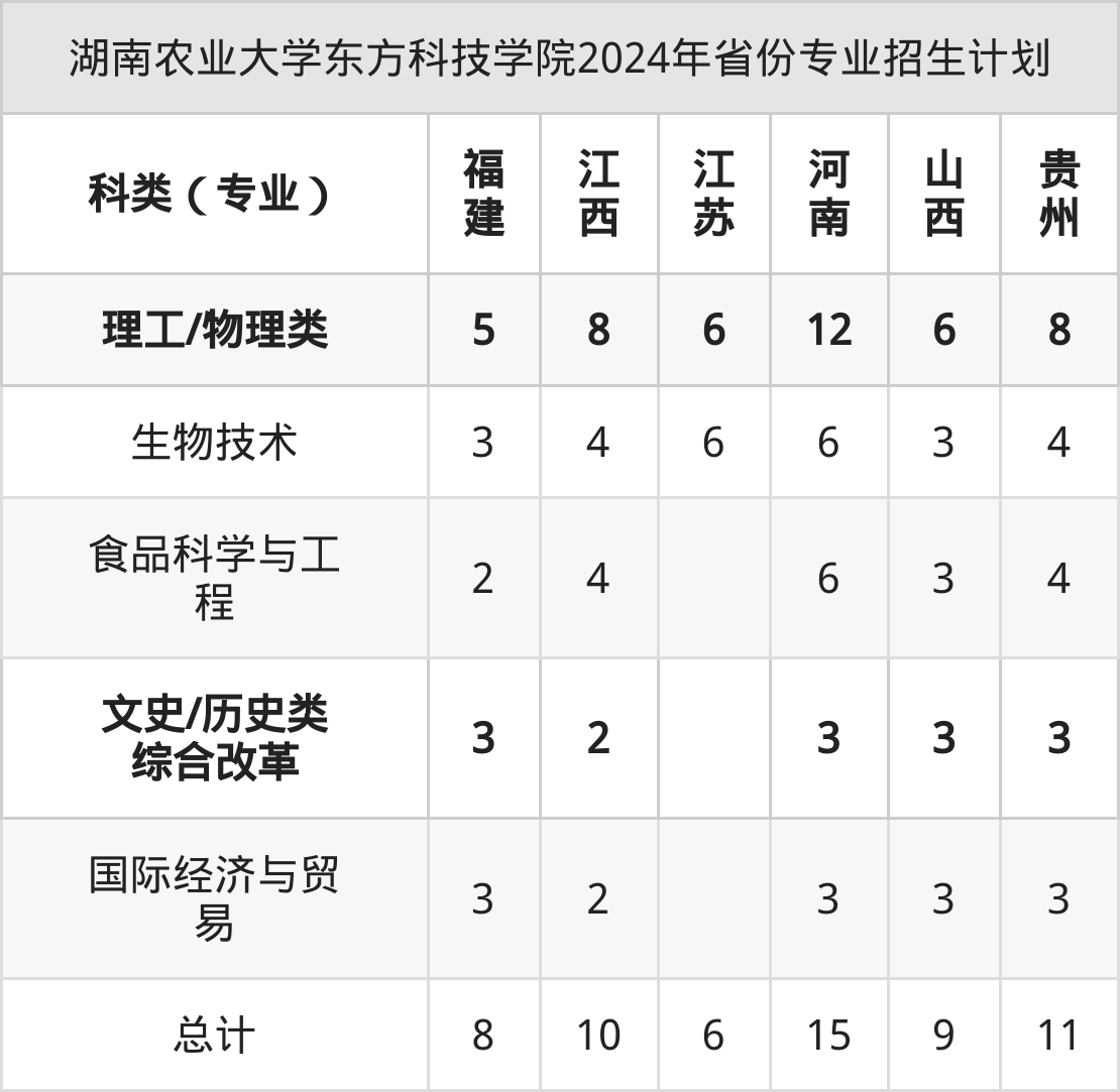 2025年湖南农业大学东方科技学院本科招生计划待公布,下面附上2024年数据,暂供参考: