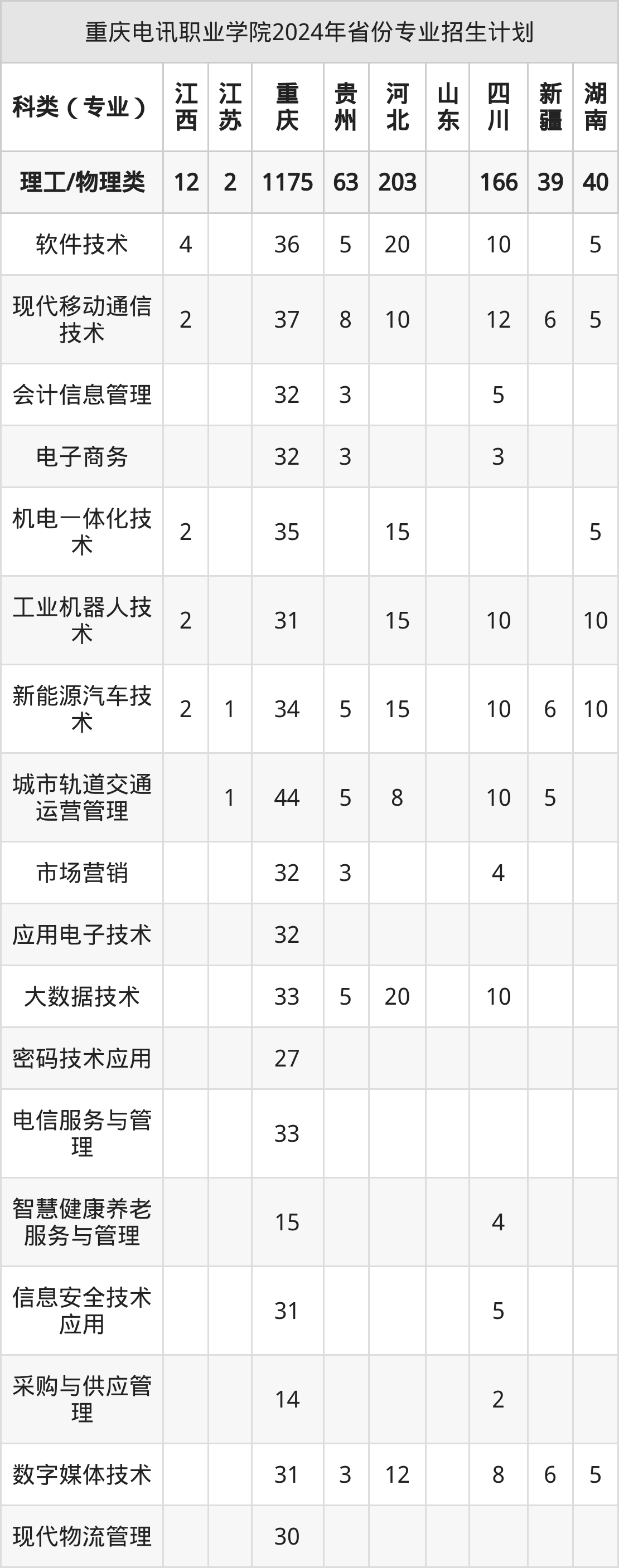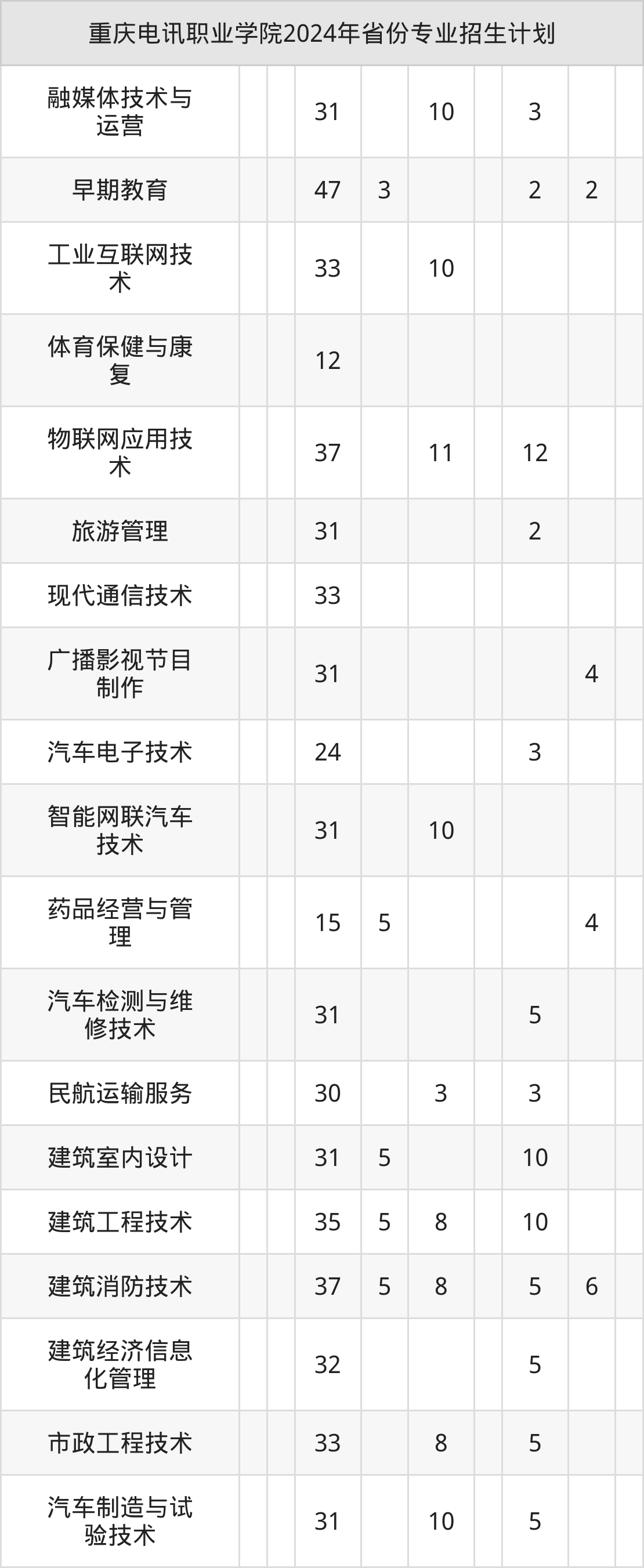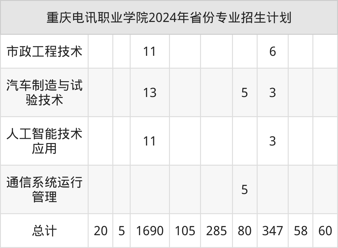 2025年重庆电讯职业学院专科招生计划待公布,下面附上2024年数据,暂供参考: