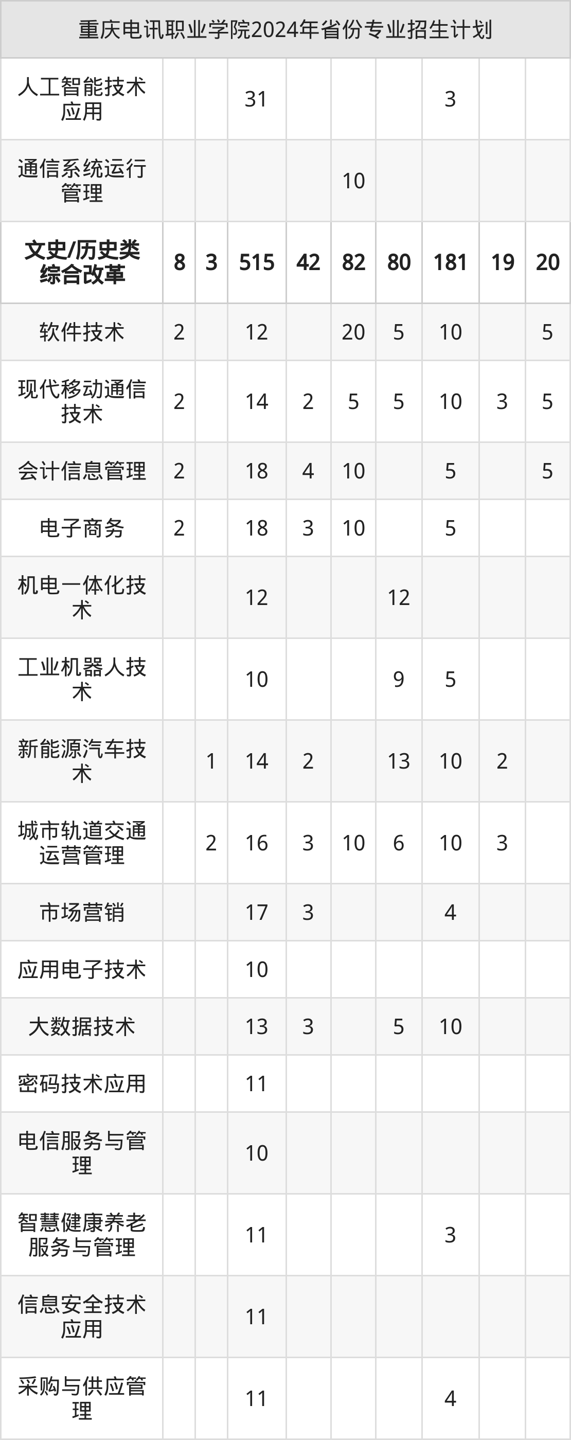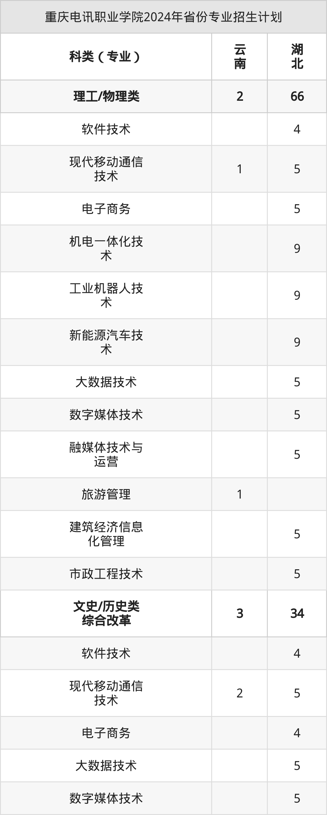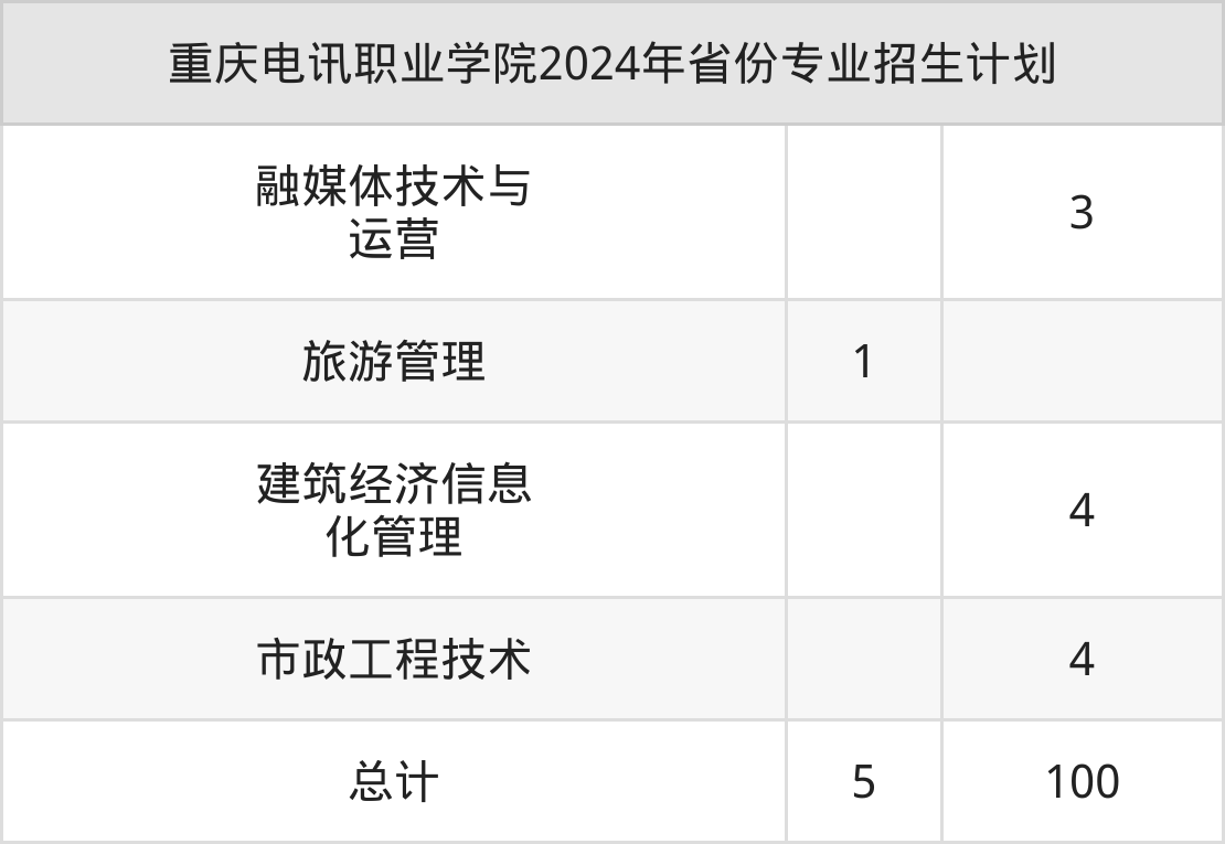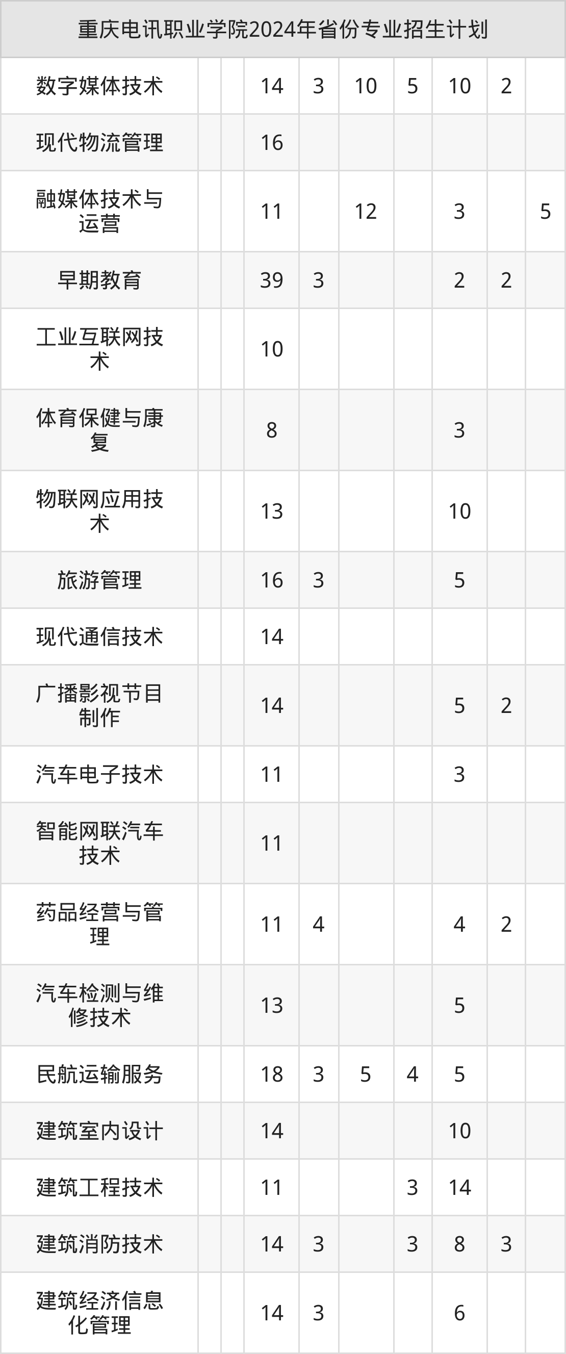 2025年重庆电讯职业学院专科招生计划待公布,下面附上2024年数据,暂供参考: