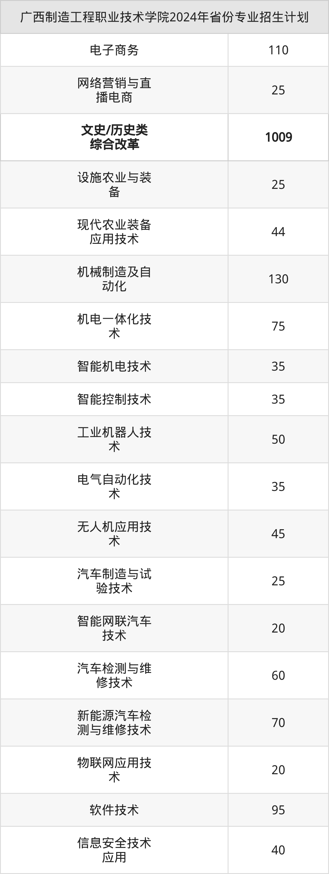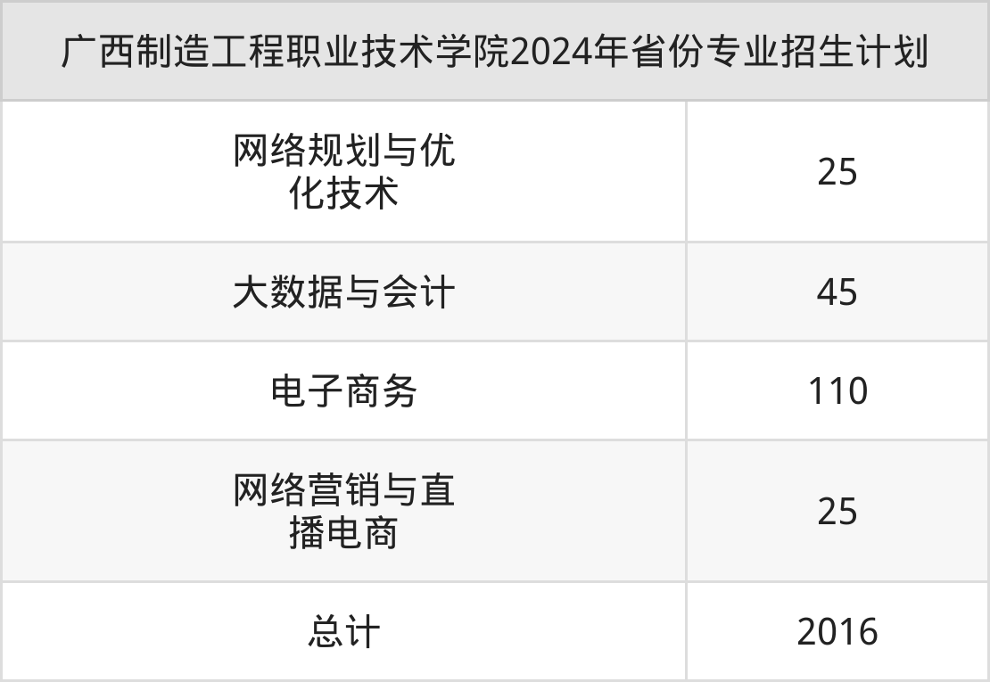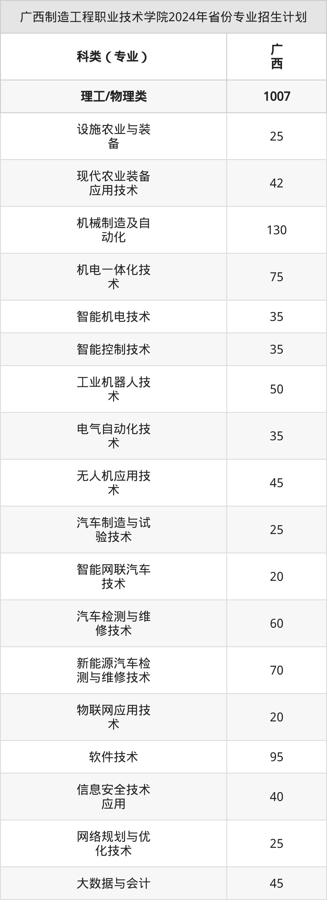 2025年广西制造工程职业技术学院专科招生计划待公布,下面附上2024年数据,暂供参考: