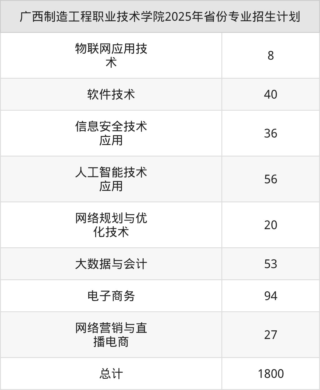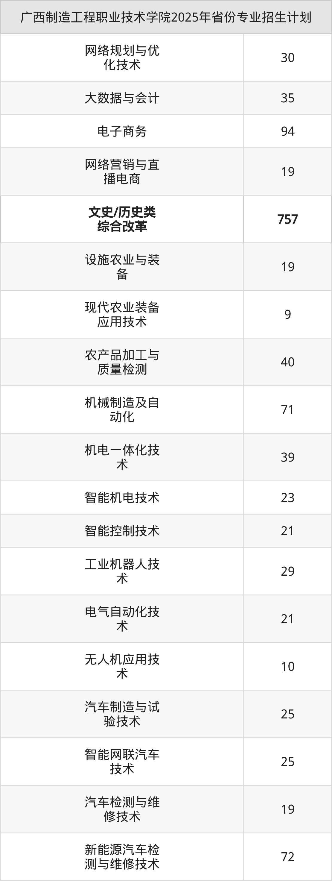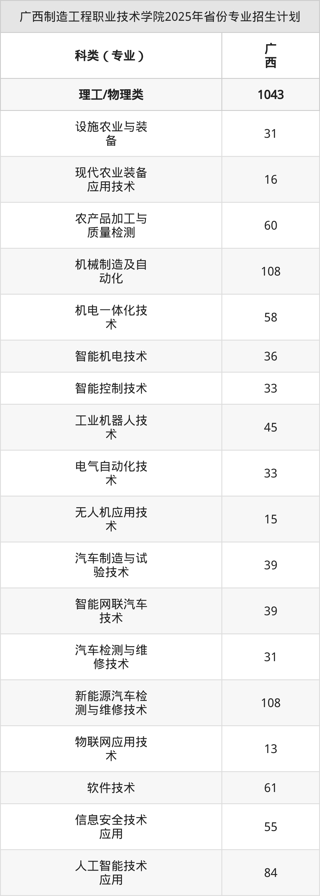 2026年广西制造工程职业技术学院专科招生计划待公布,下面附上2025年数据,暂供参考:
