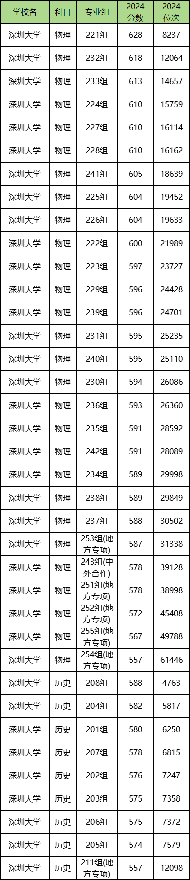 | 学校名 | 科目 | 专业组 | 2024 分数 |