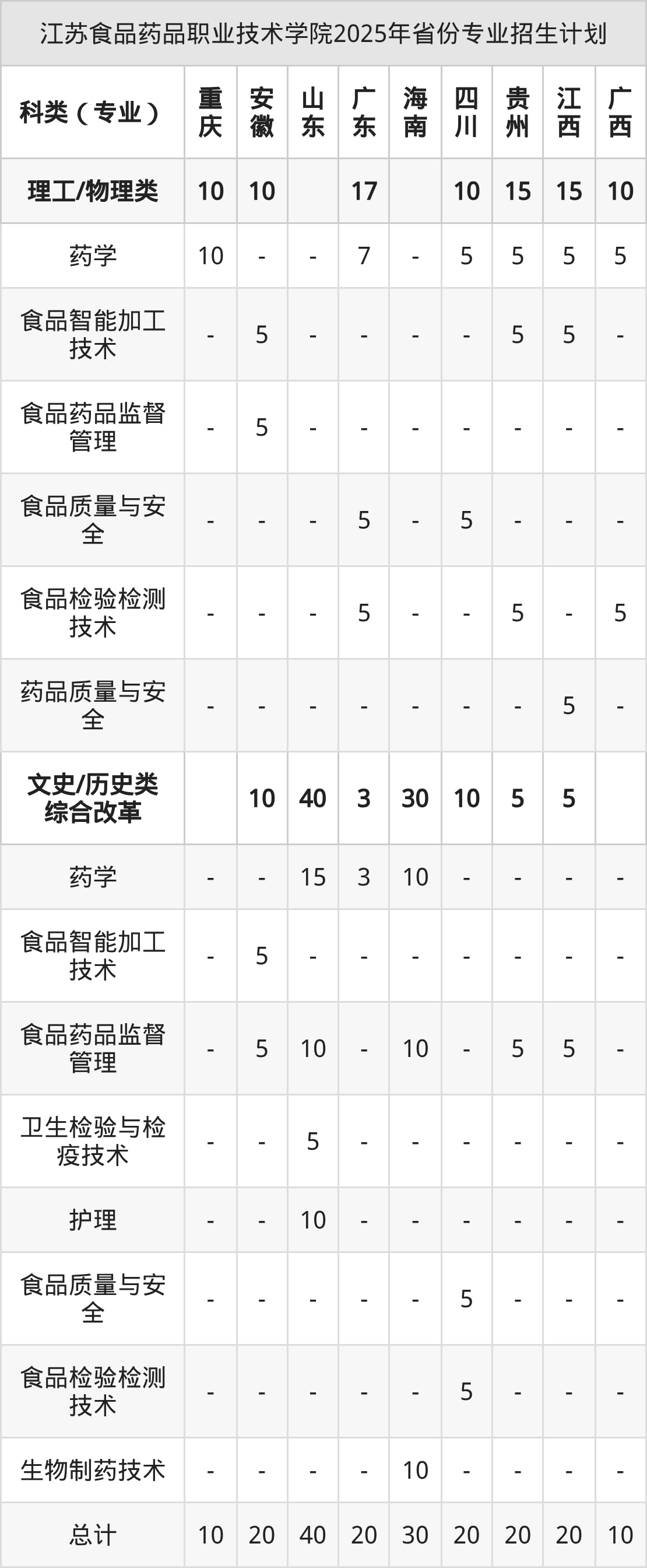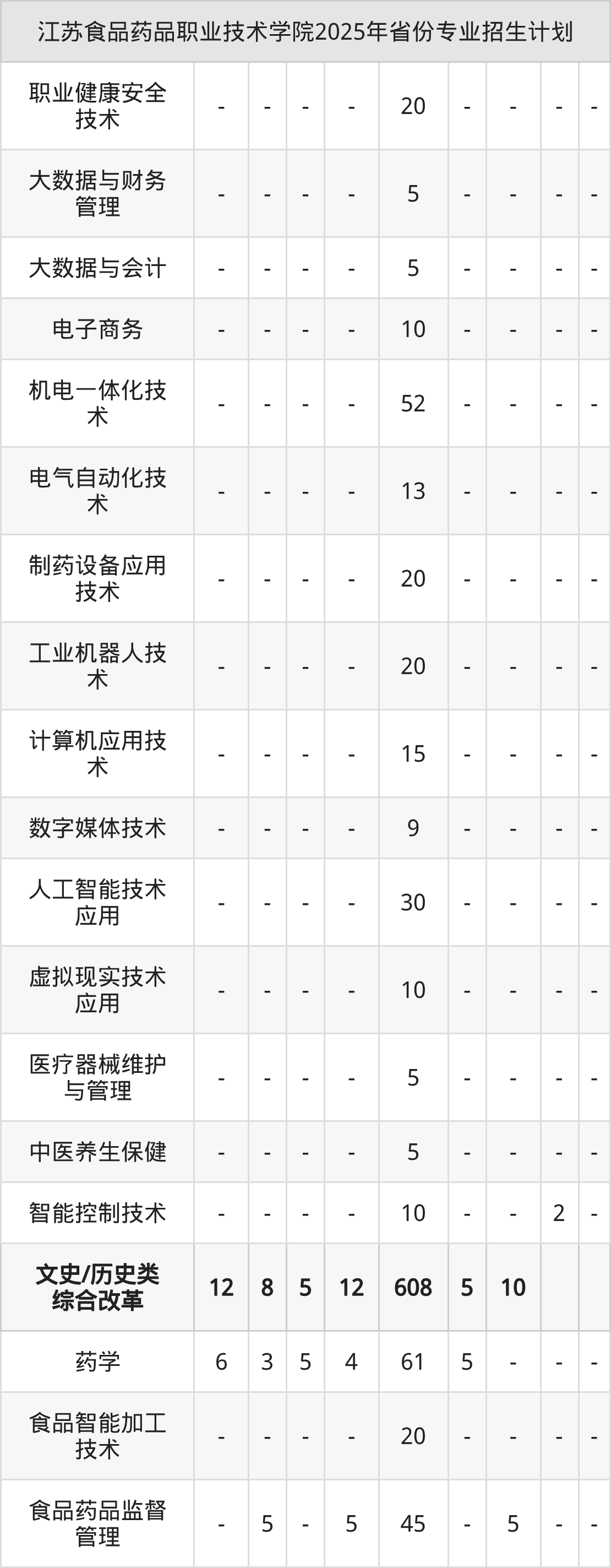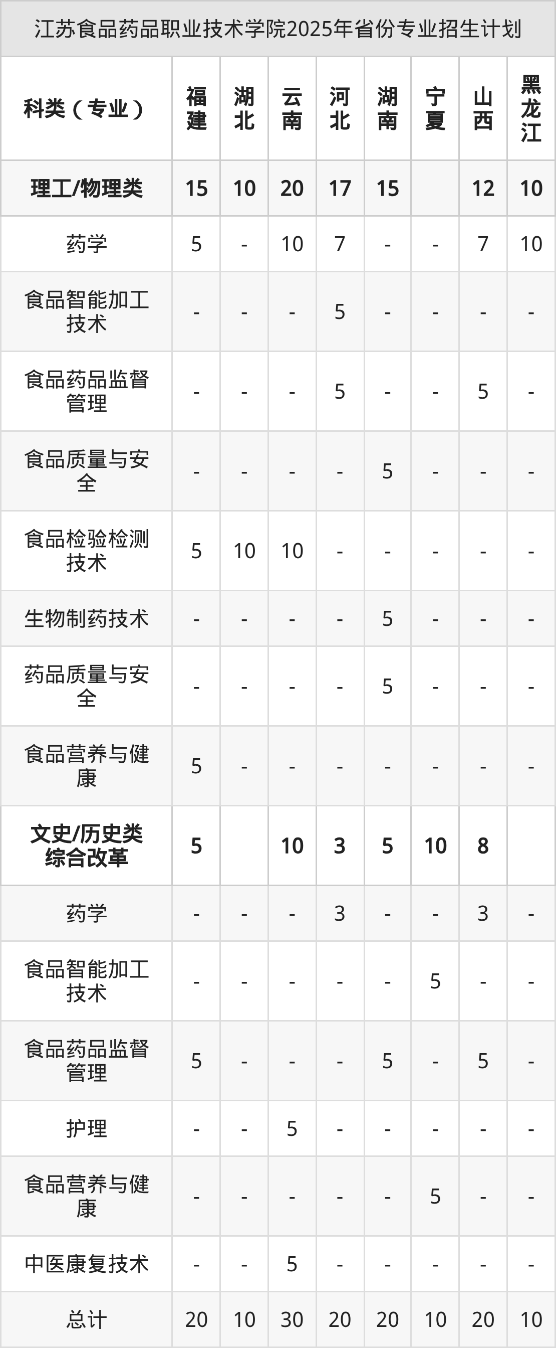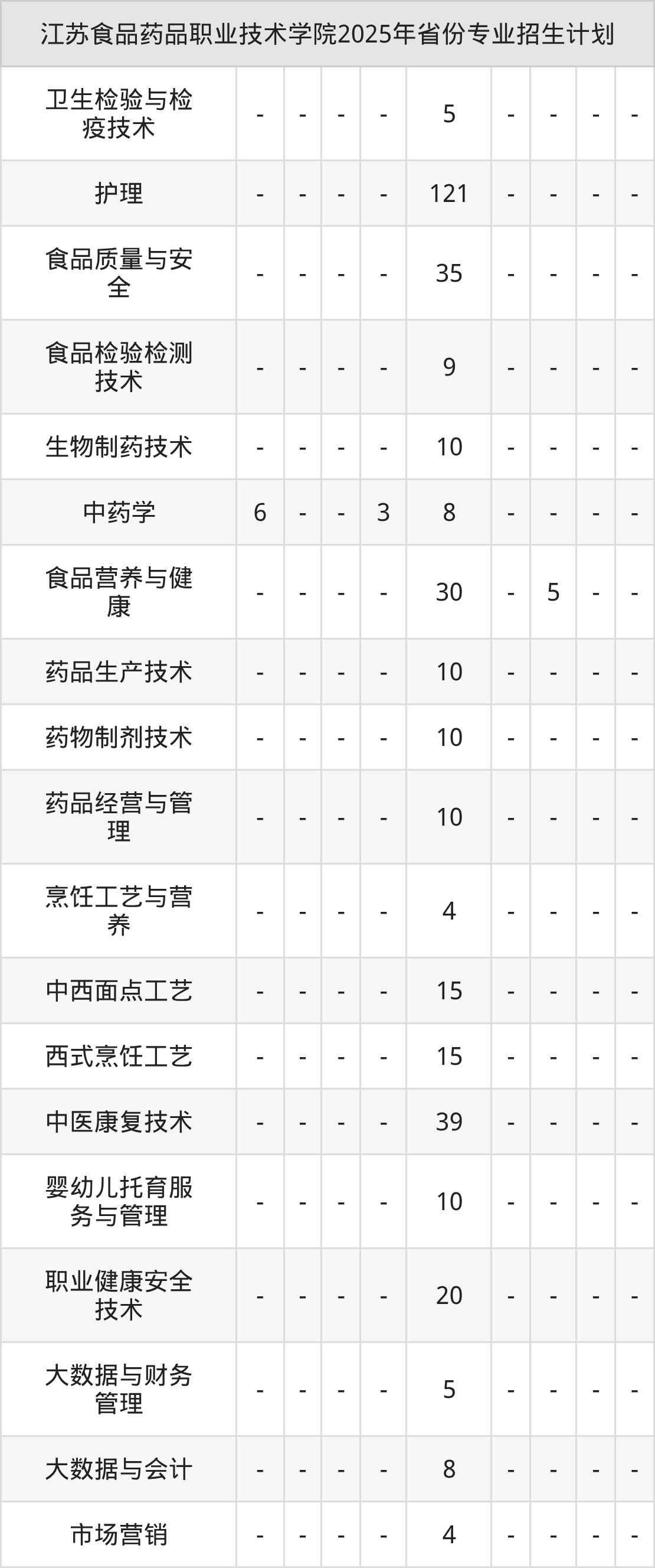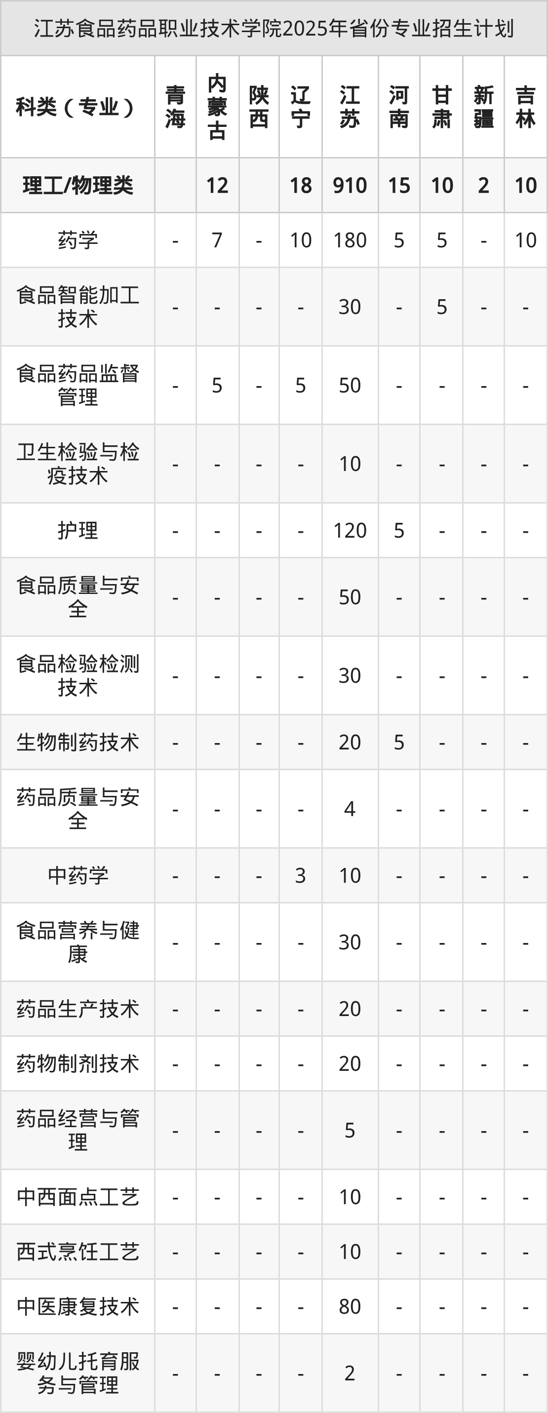 2026年江苏食品药品职业技术学院专科招生计划待公布,下面附上2025年数据,暂供参考: