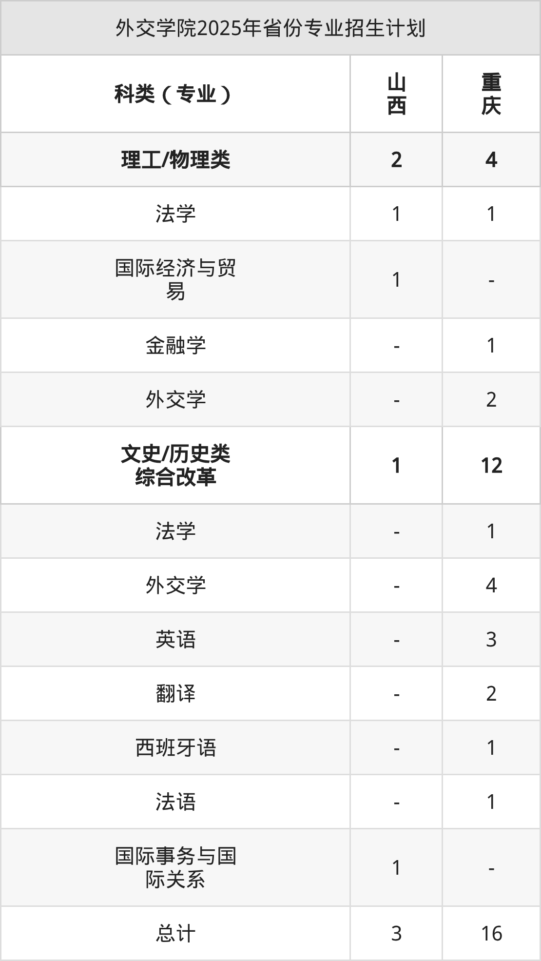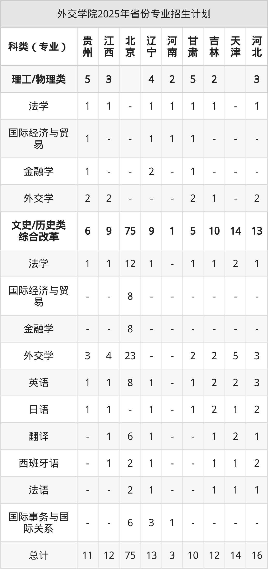 2026年外交学院本科招生计划待公布,下面附上2025年数据,暂供参考: