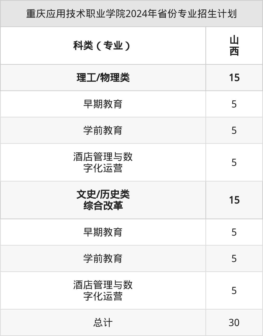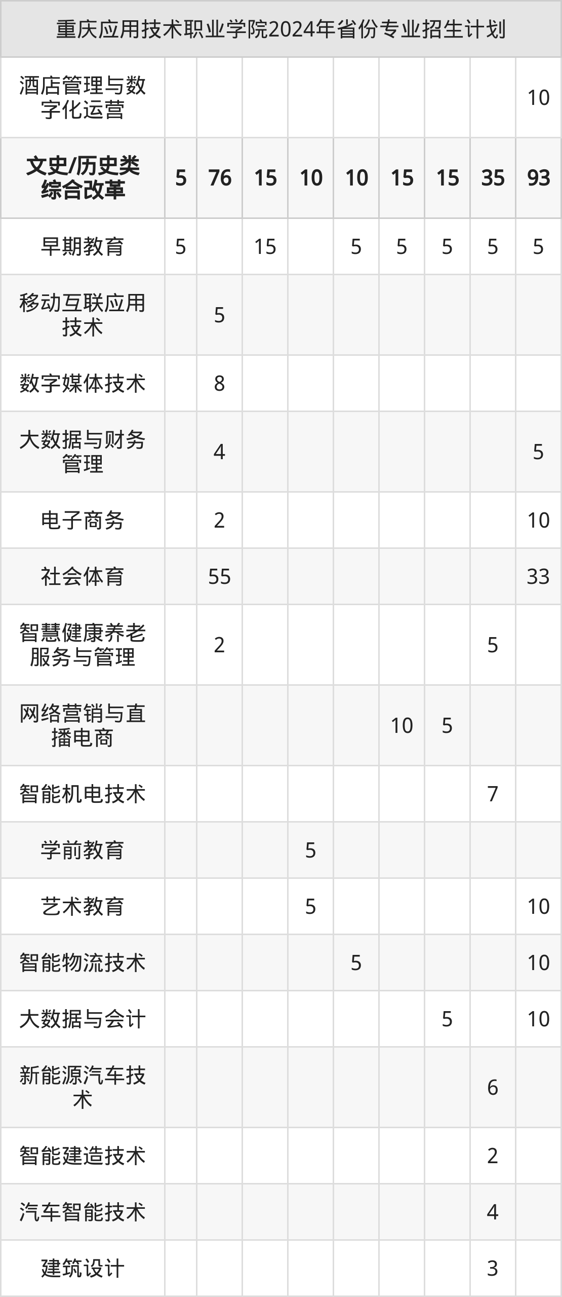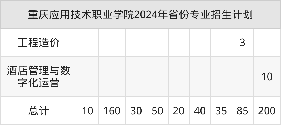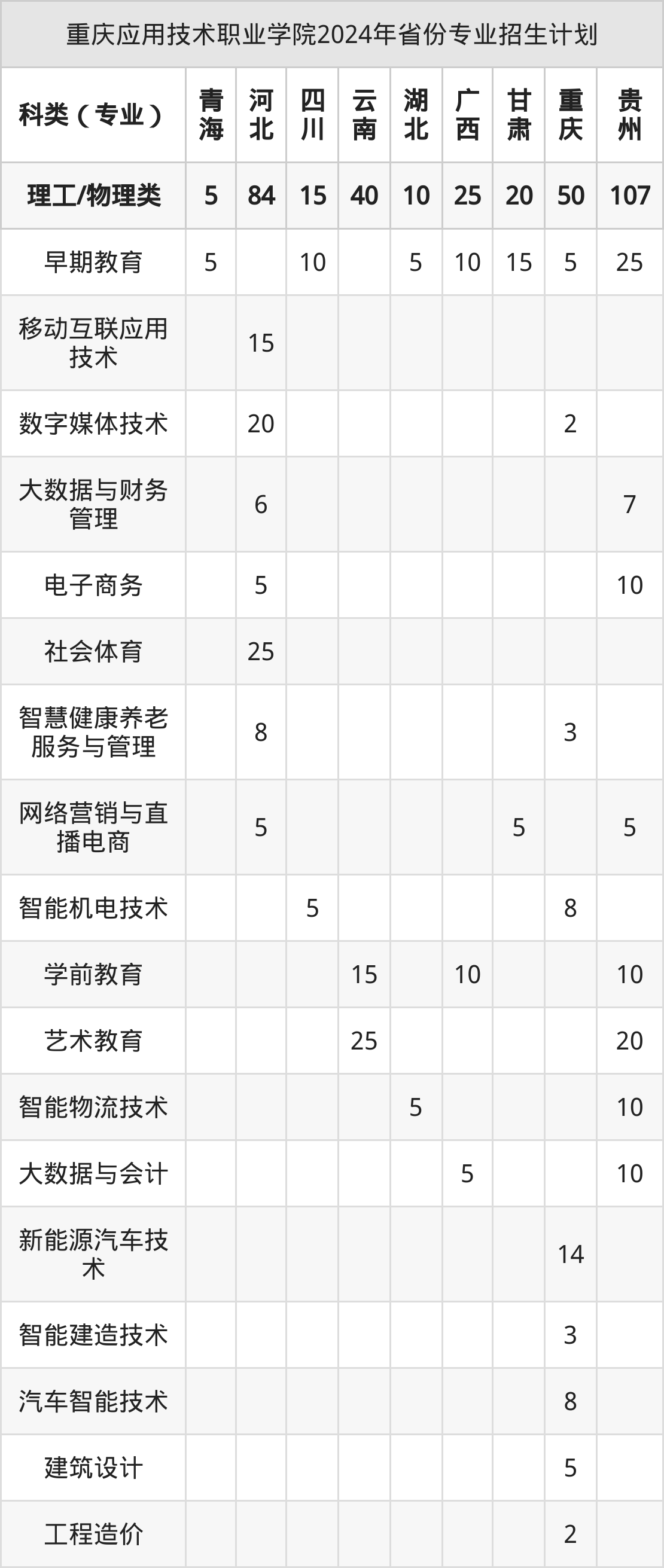 2025年重庆应用技术职业学院专科招生计划待公布,下面附上2024年数据,暂供参考: