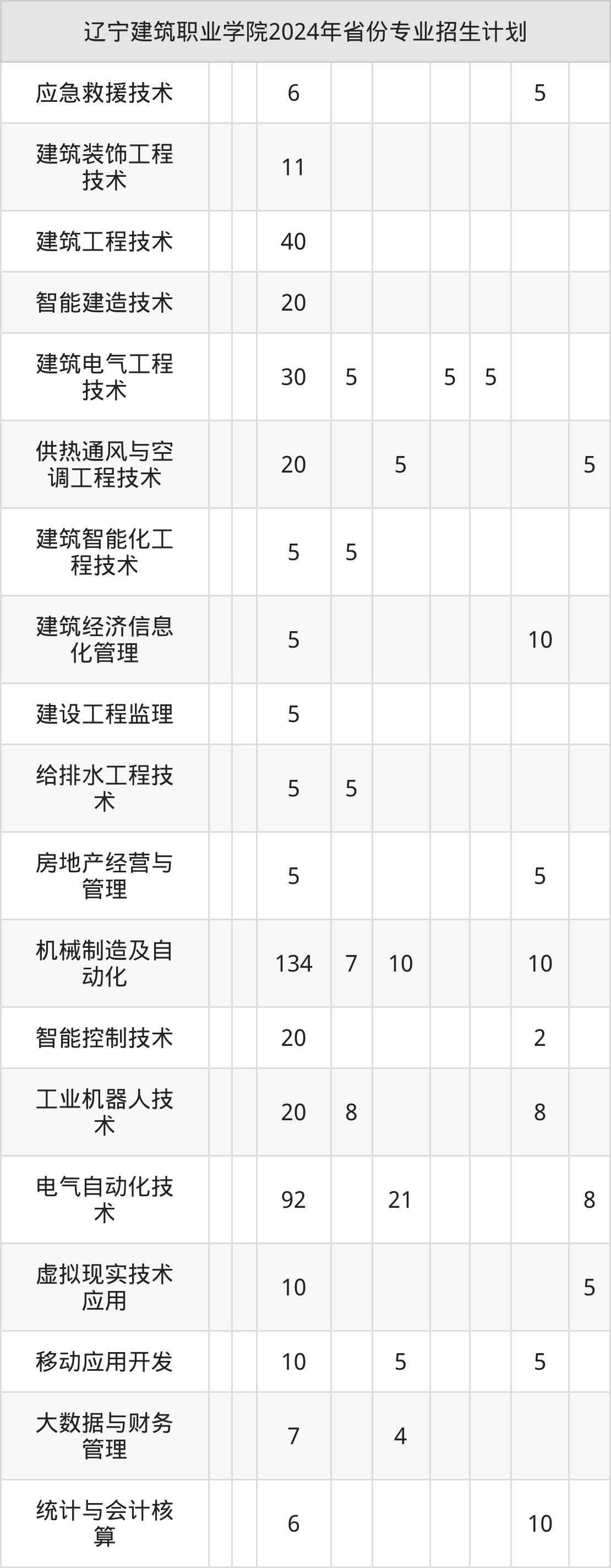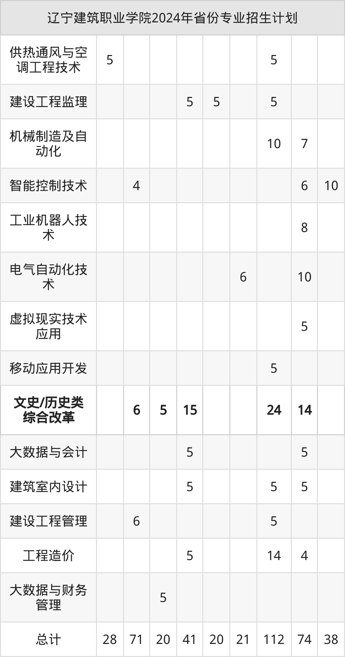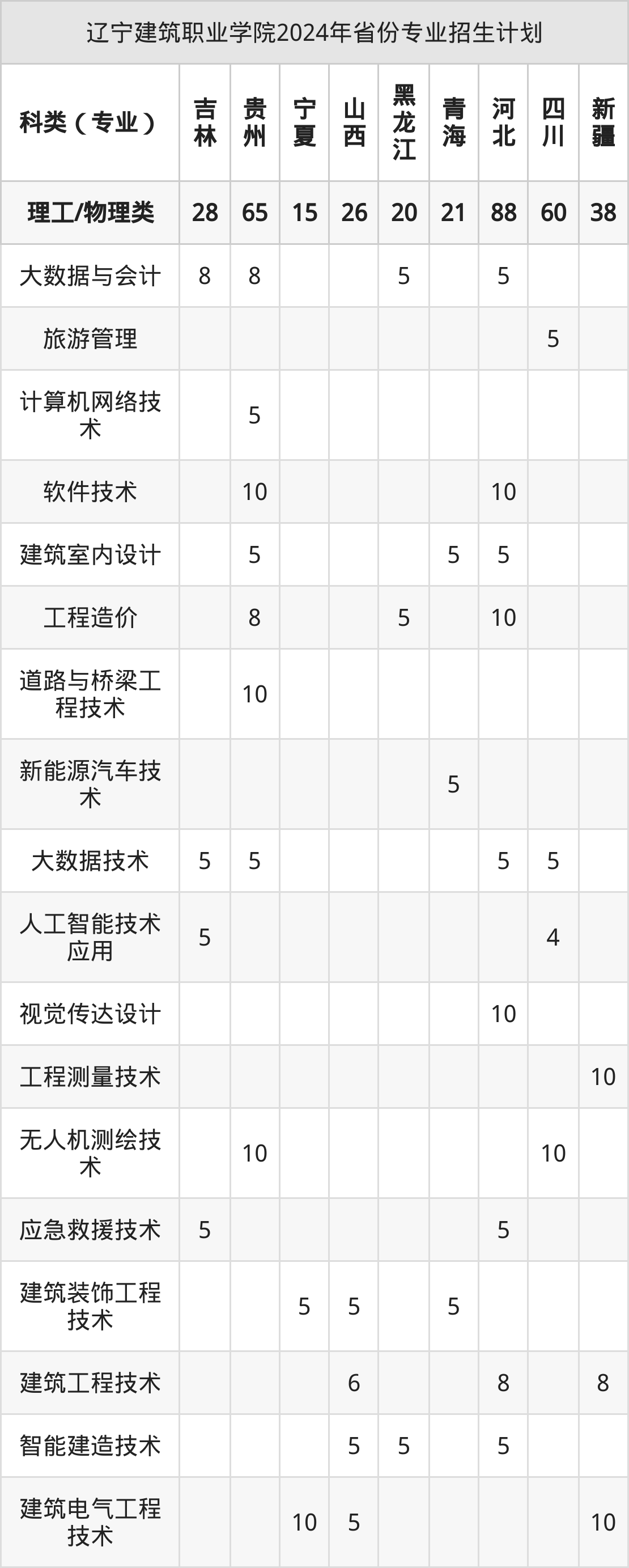 2025年辽宁建筑职业学院专科招生计划待公布,下面附上2024年数据,暂供参考: