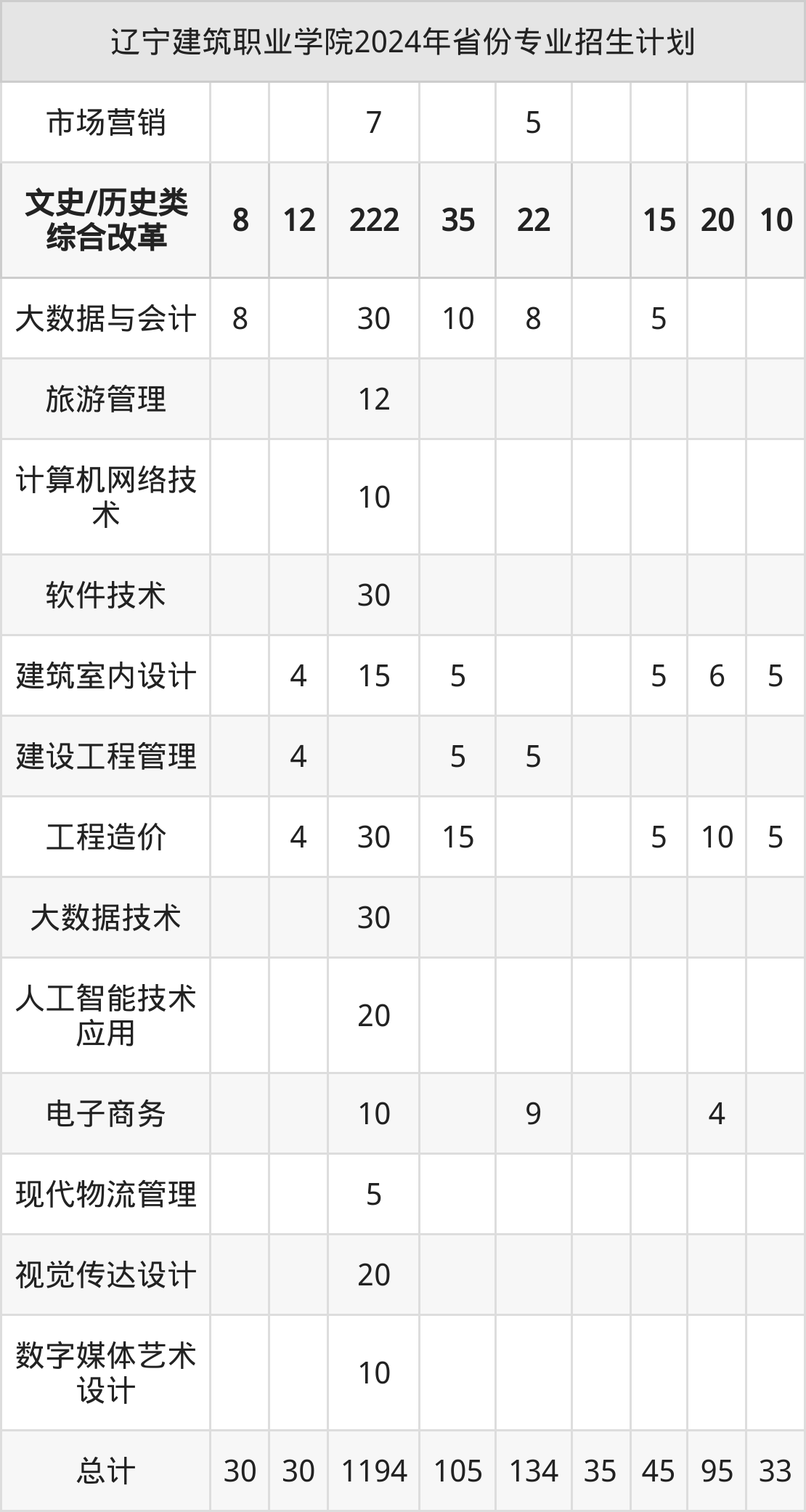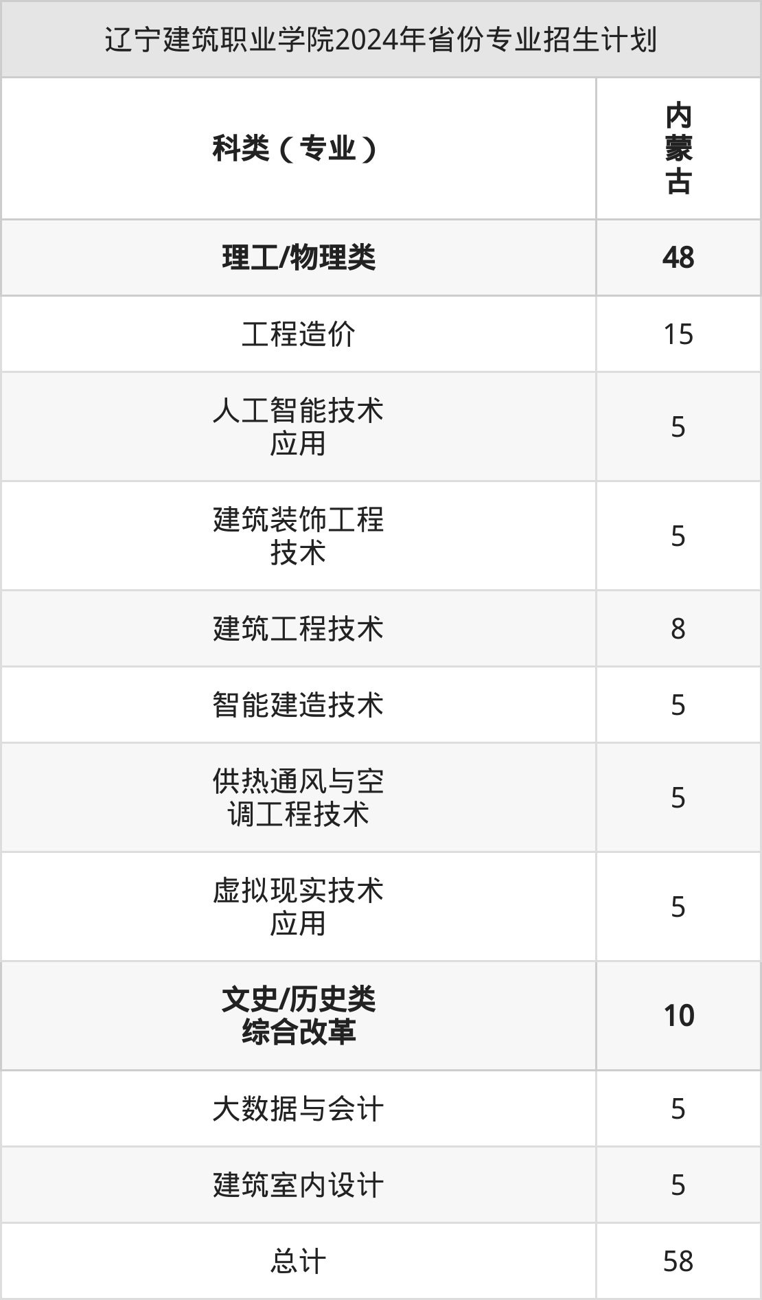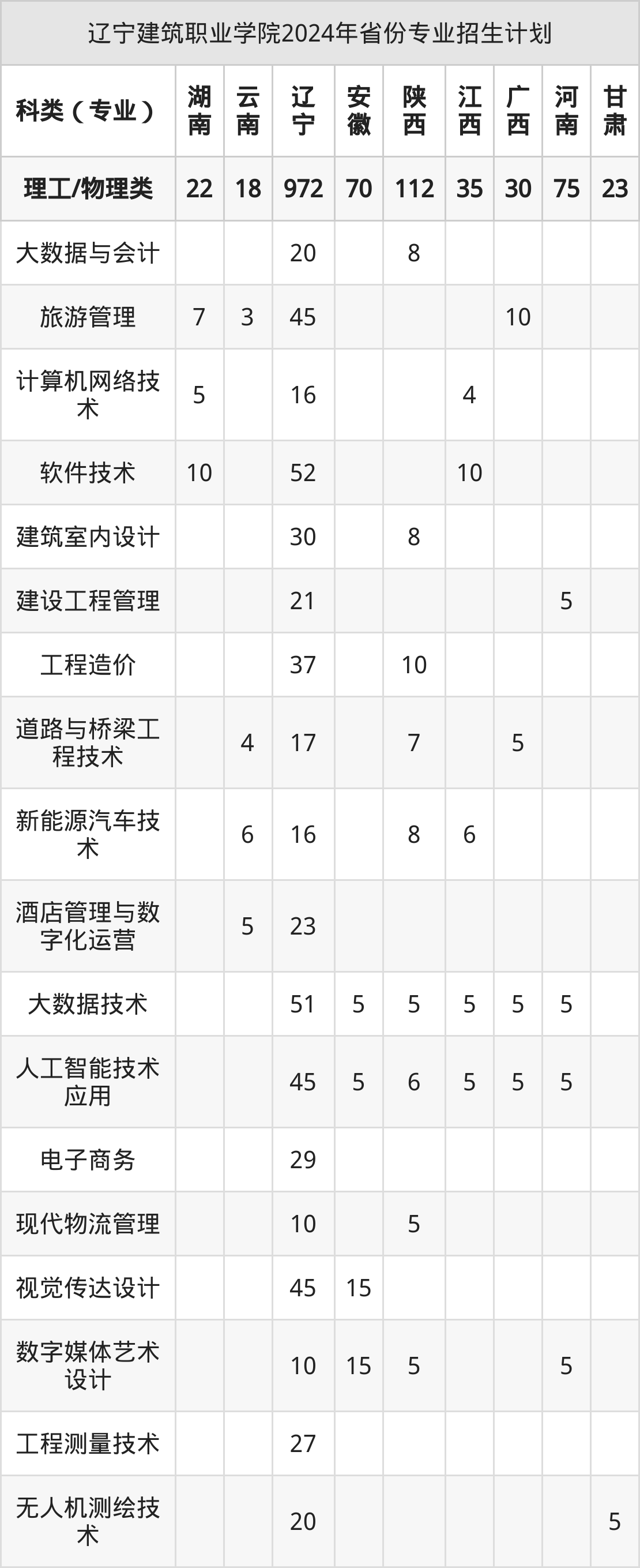 2025年辽宁建筑职业学院专科招生计划待公布,下面附上2024年数据,暂供参考:
