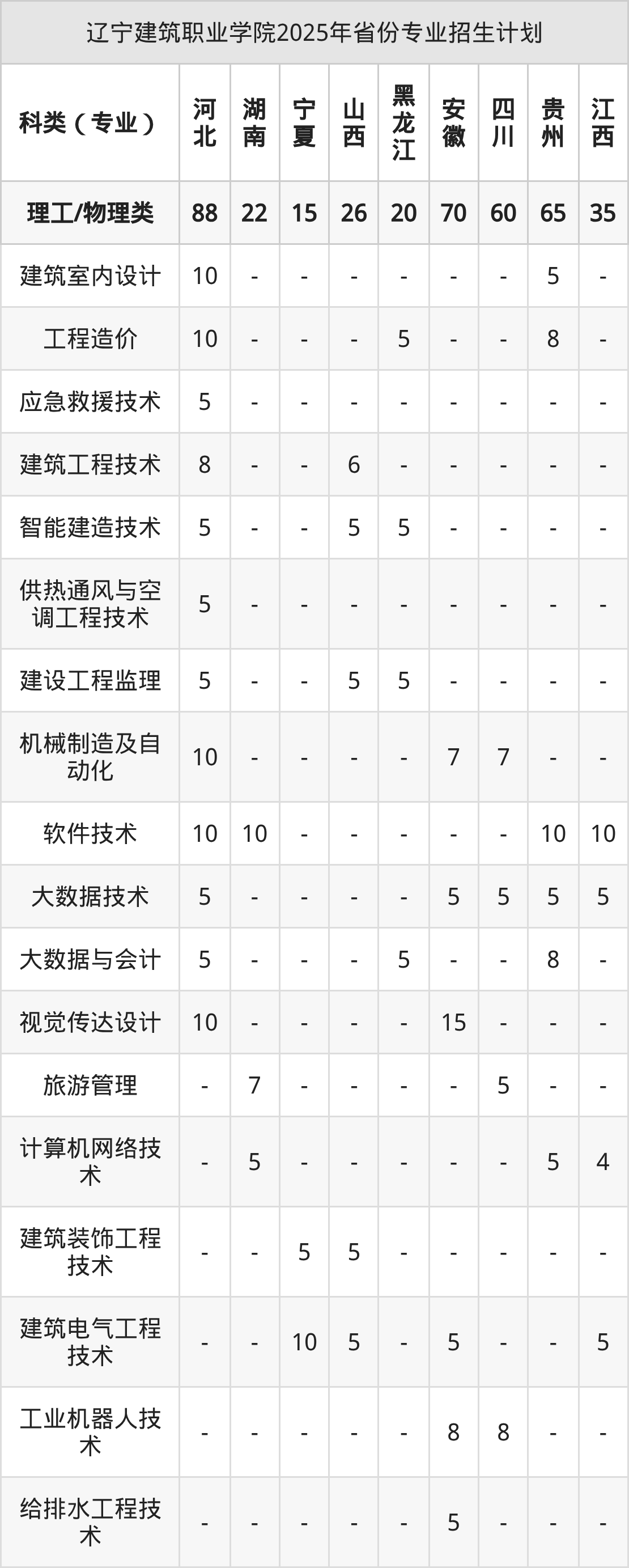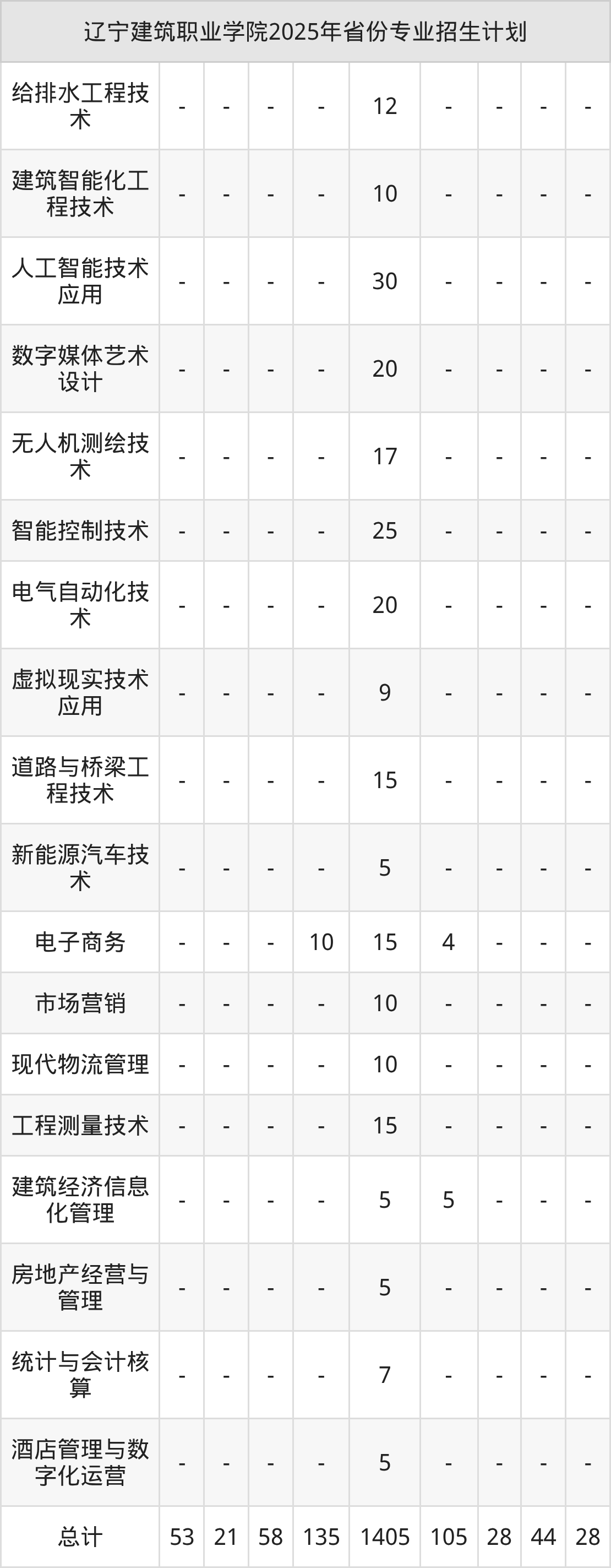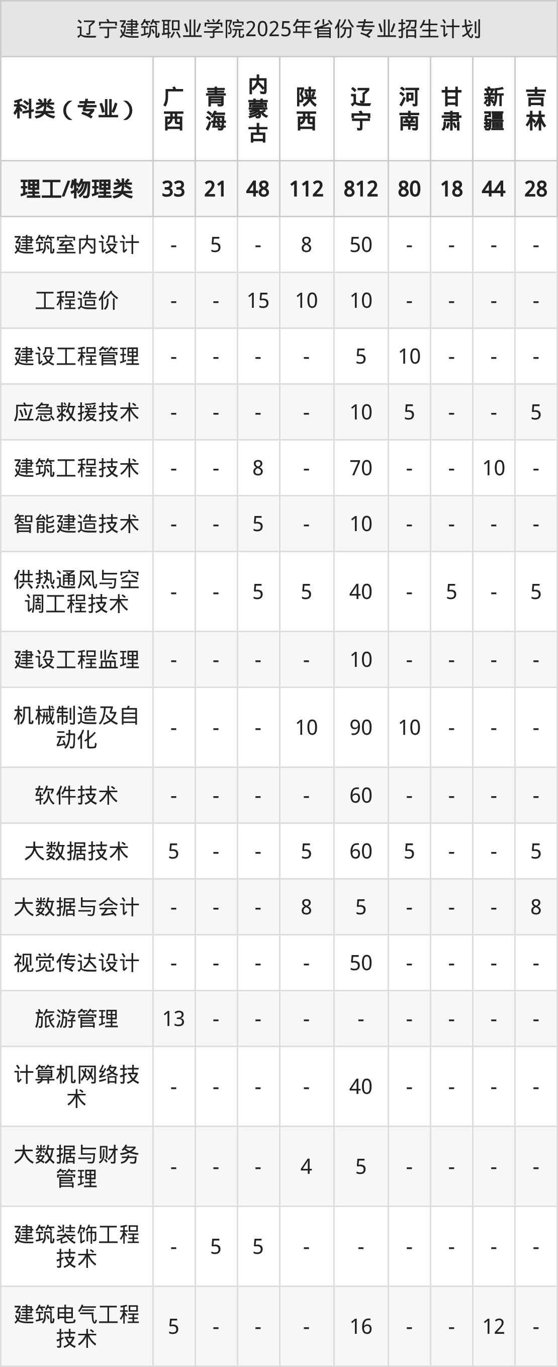 2026年辽宁建筑职业学院专科招生计划待公布,下面附上2025年数据,暂供参考: