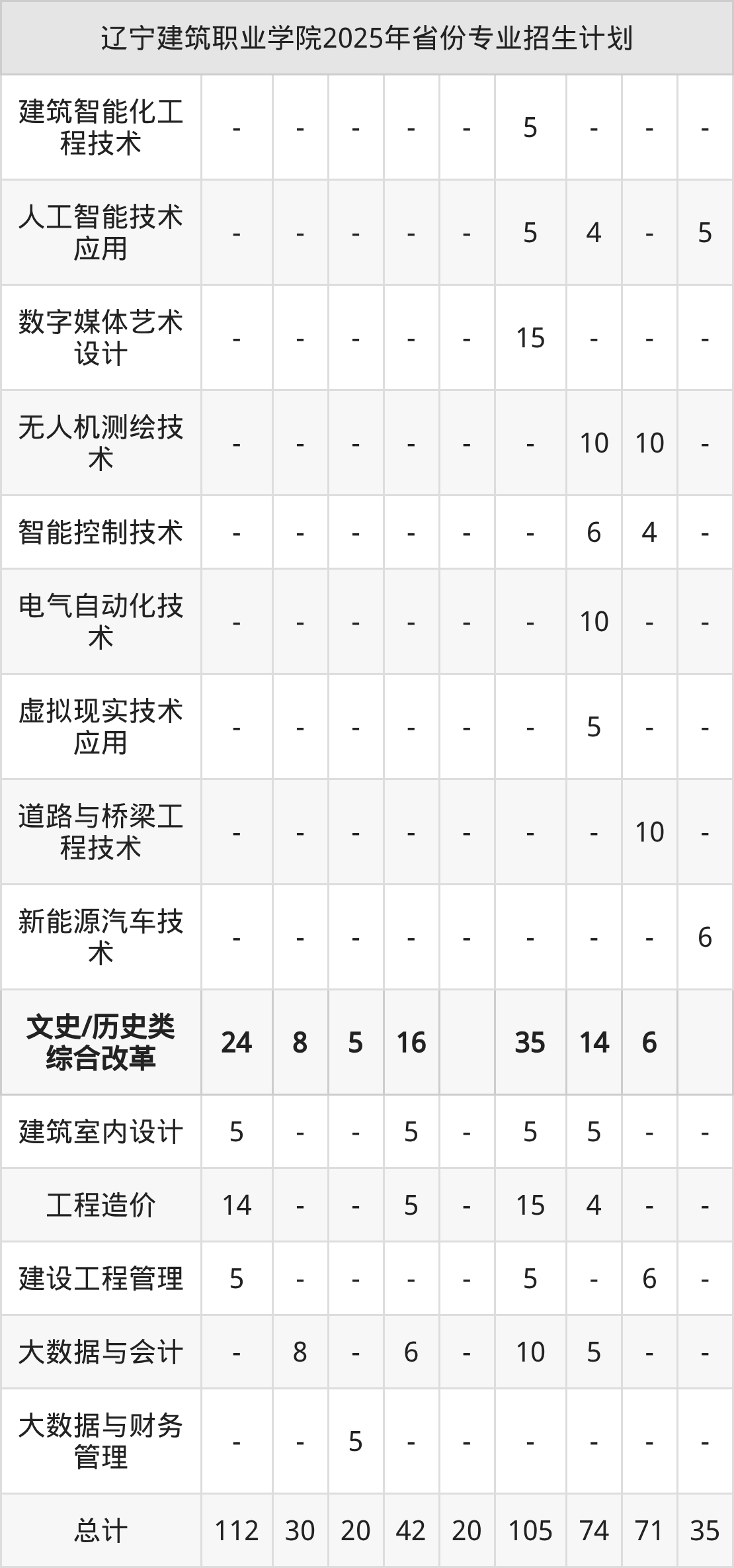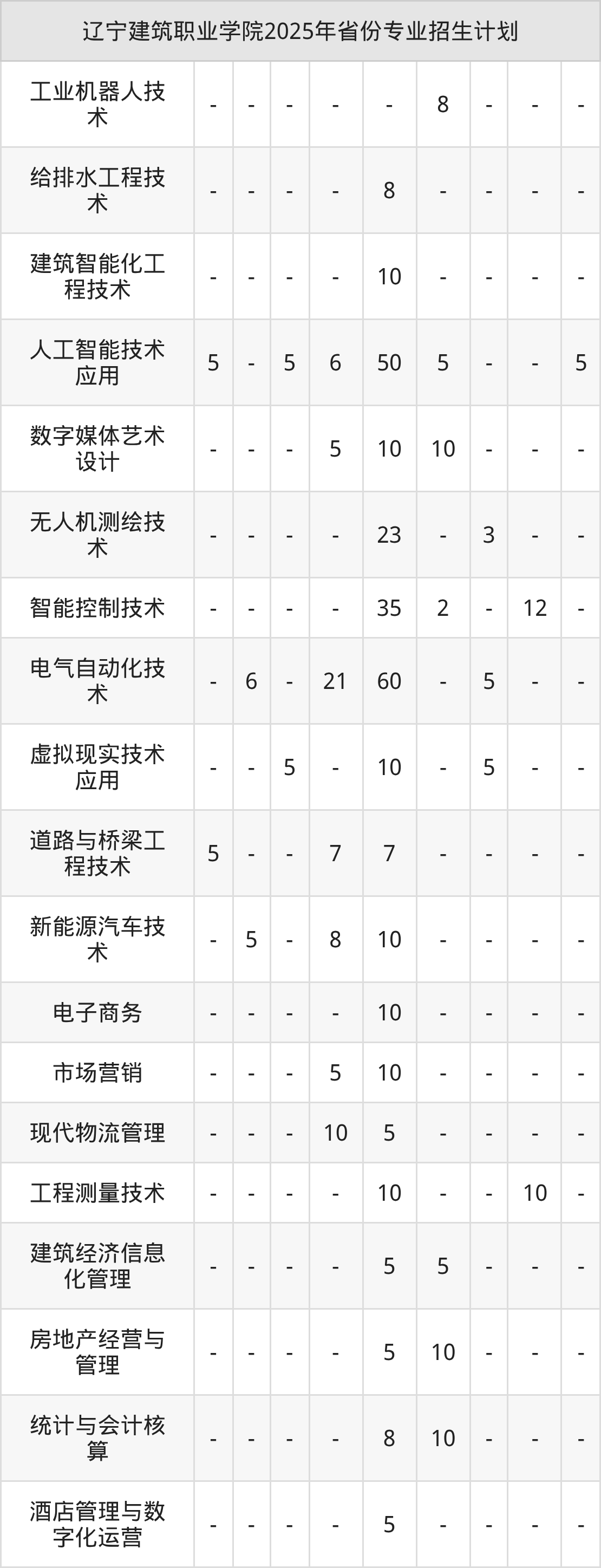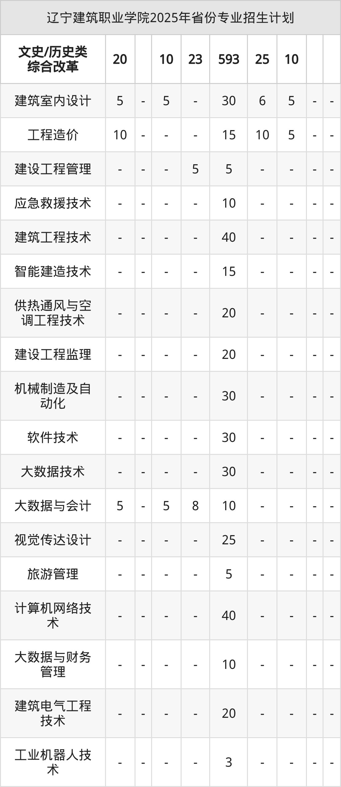 2026年辽宁建筑职业学院专科招生计划待公布,下面附上2025年数据,暂供参考: