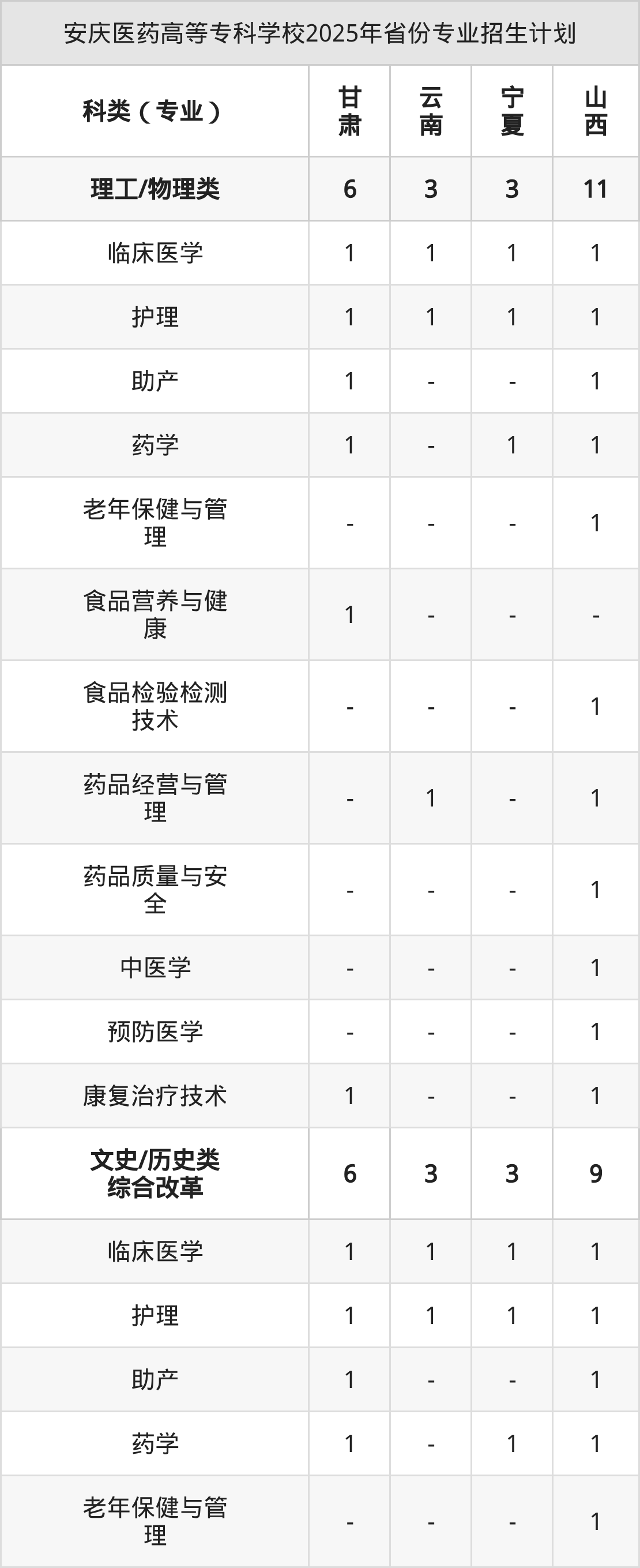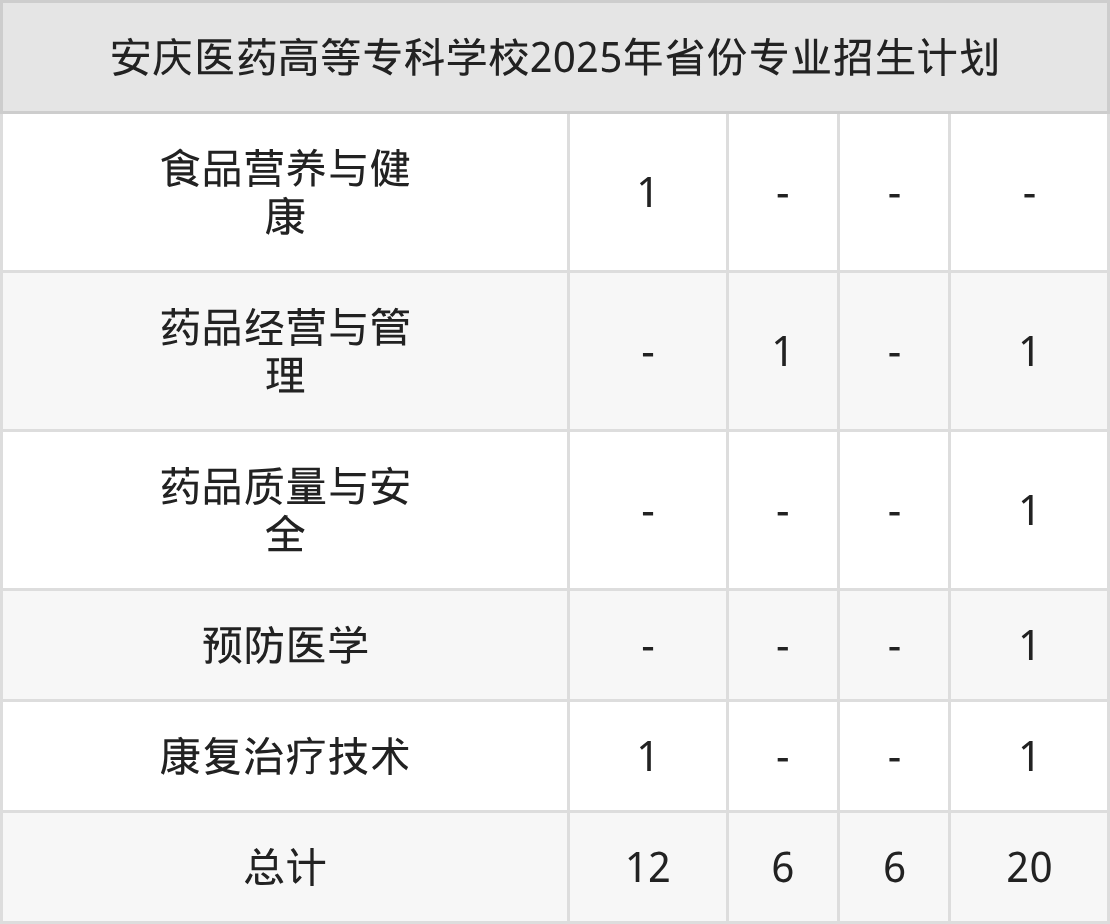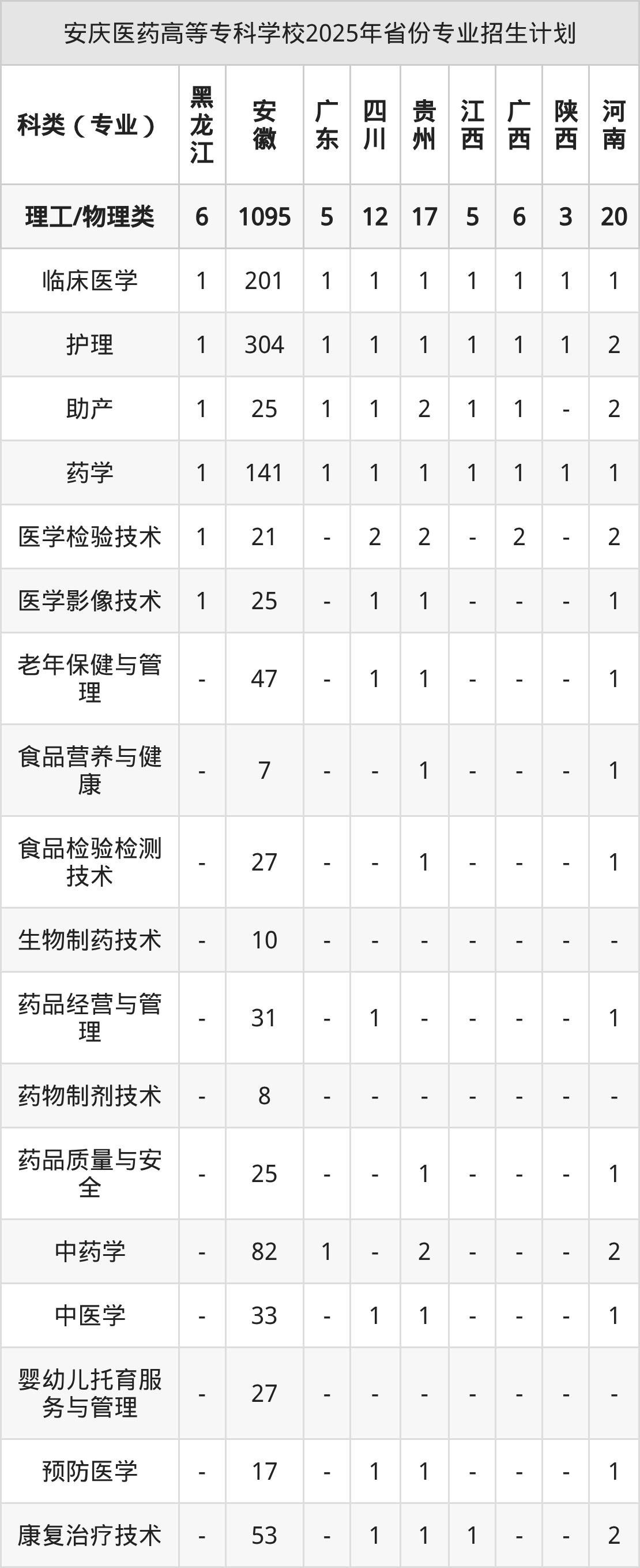 2026年安庆医药高等专科学校专科招生计划待公布,下面附上2025年数据,暂供参考: