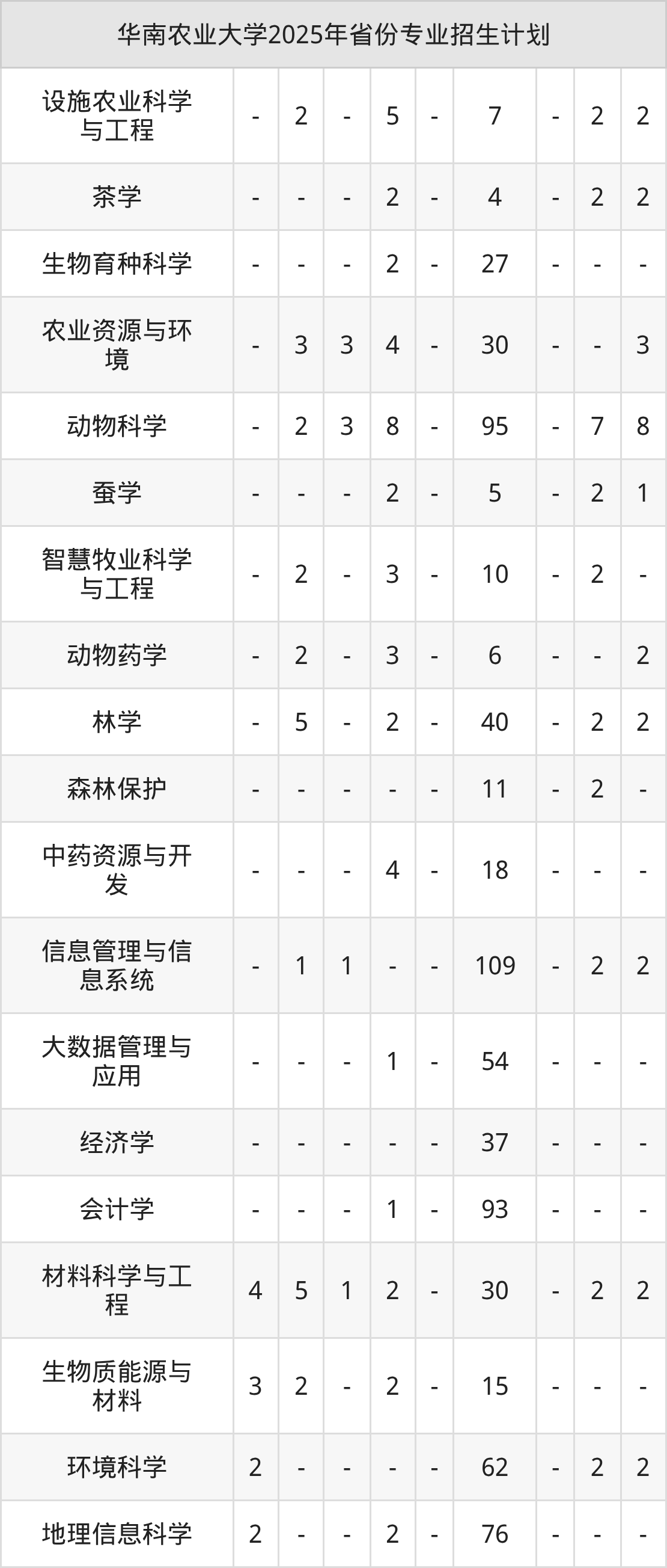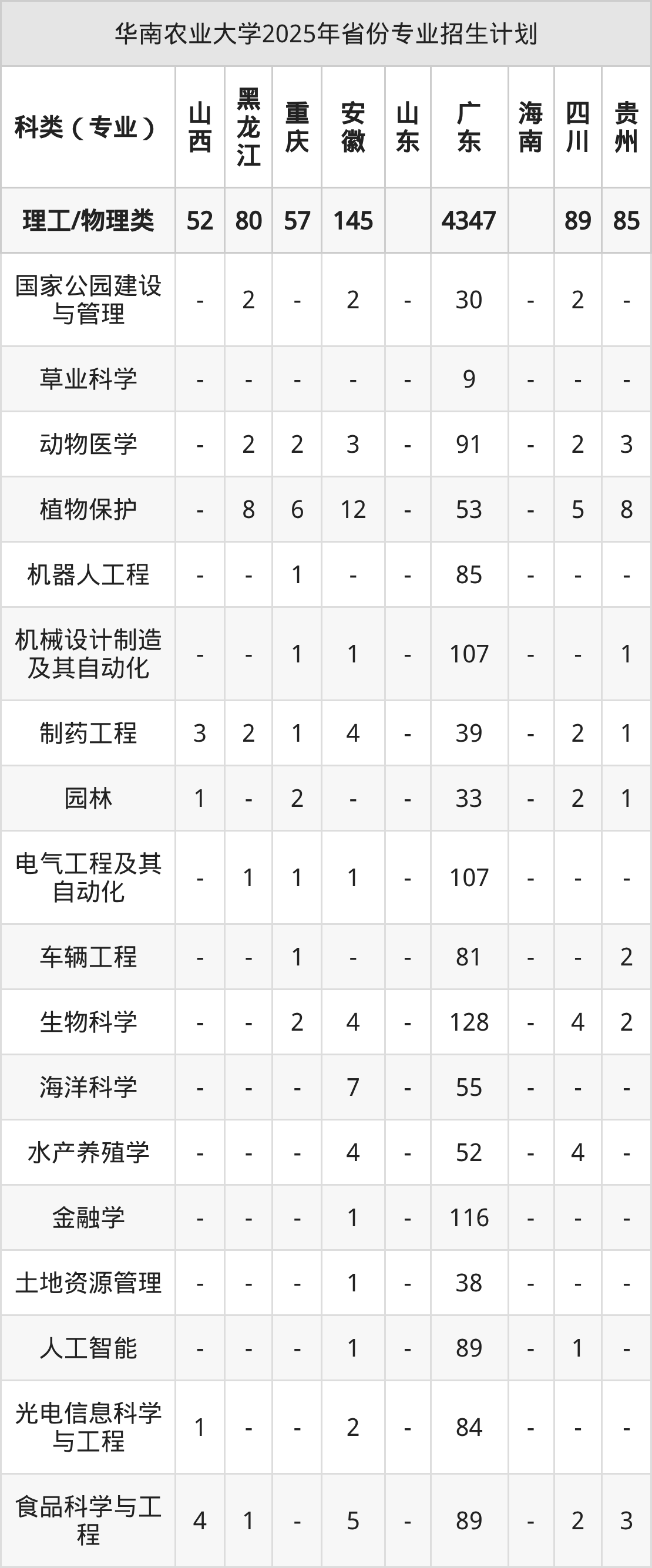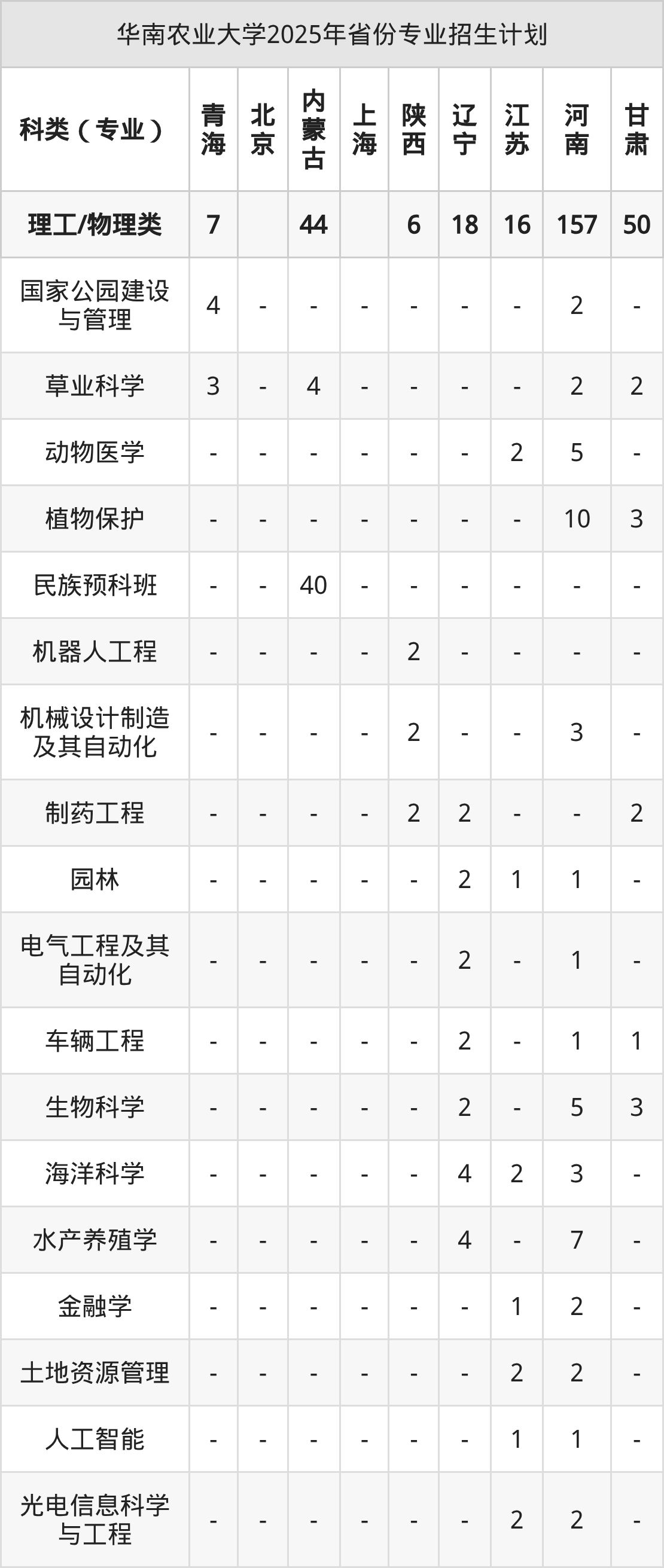 2026年华南农业大学本科招生计划待公布,下面附上2025年数据,暂供参考: