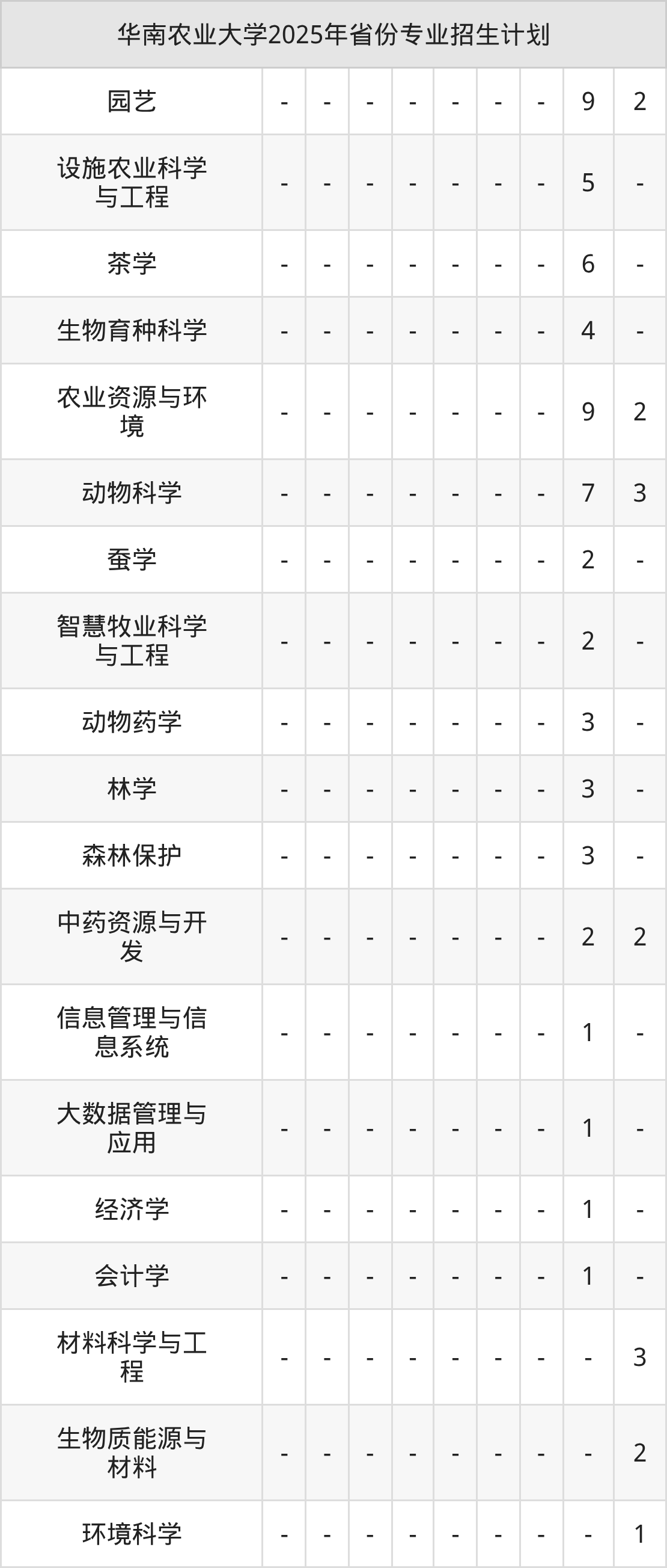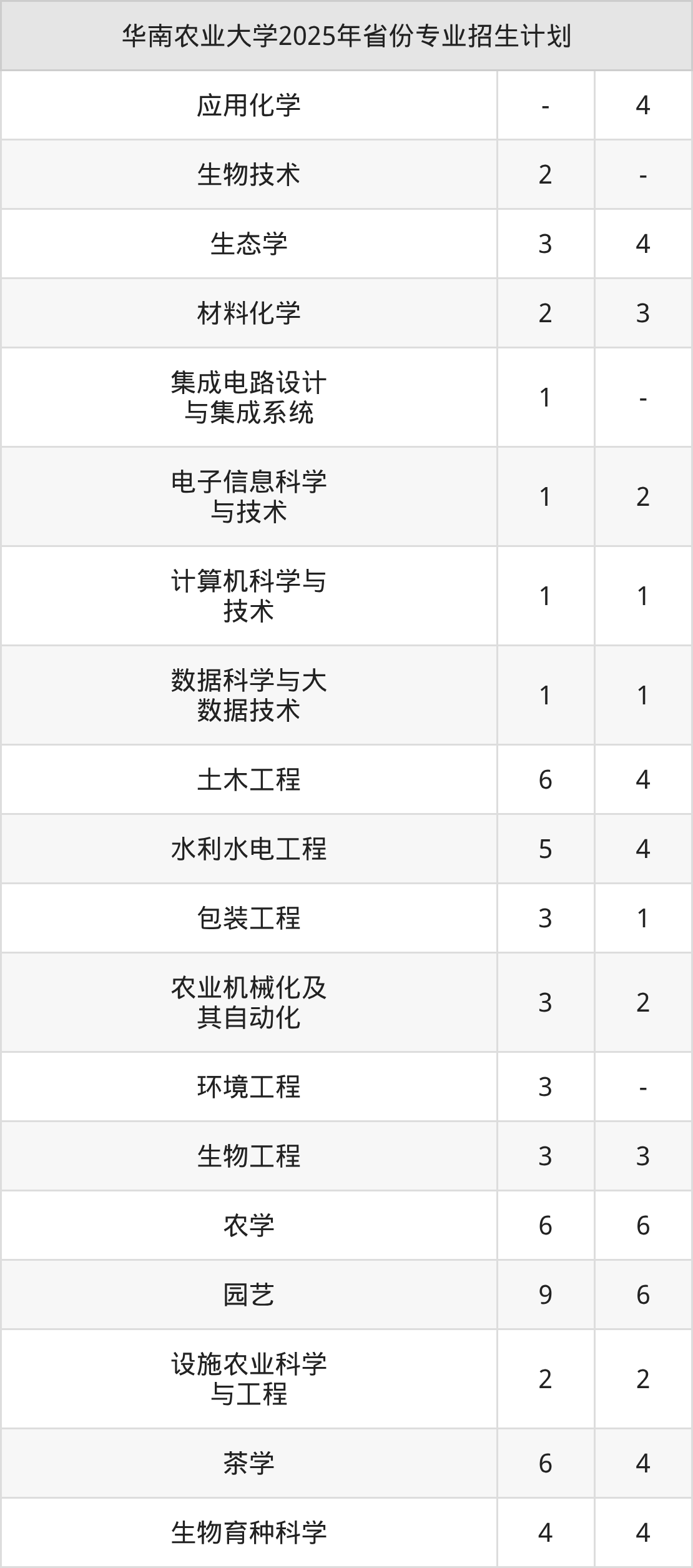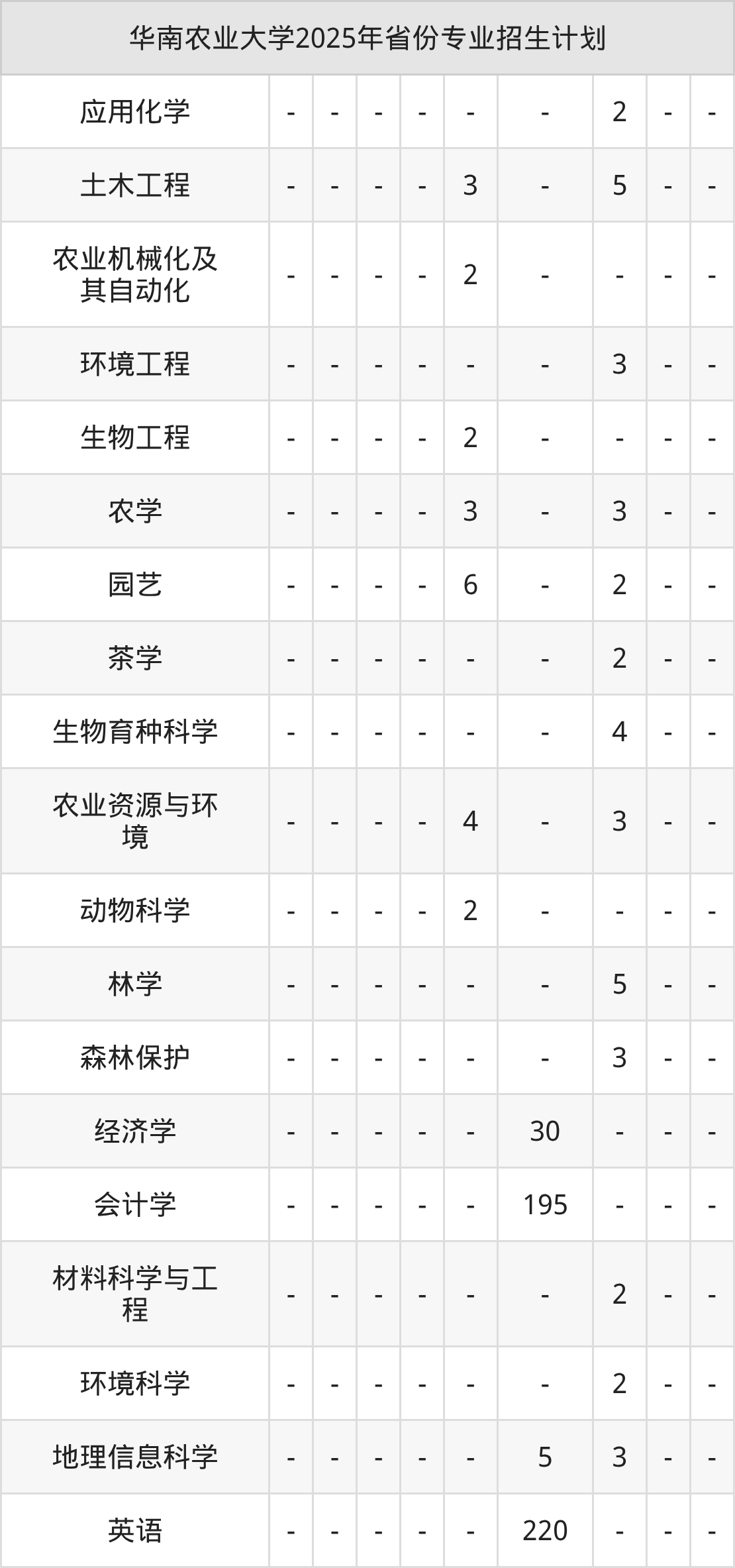 2026年华南农业大学本科招生计划待公布,下面附上2025年数据,暂供参考: