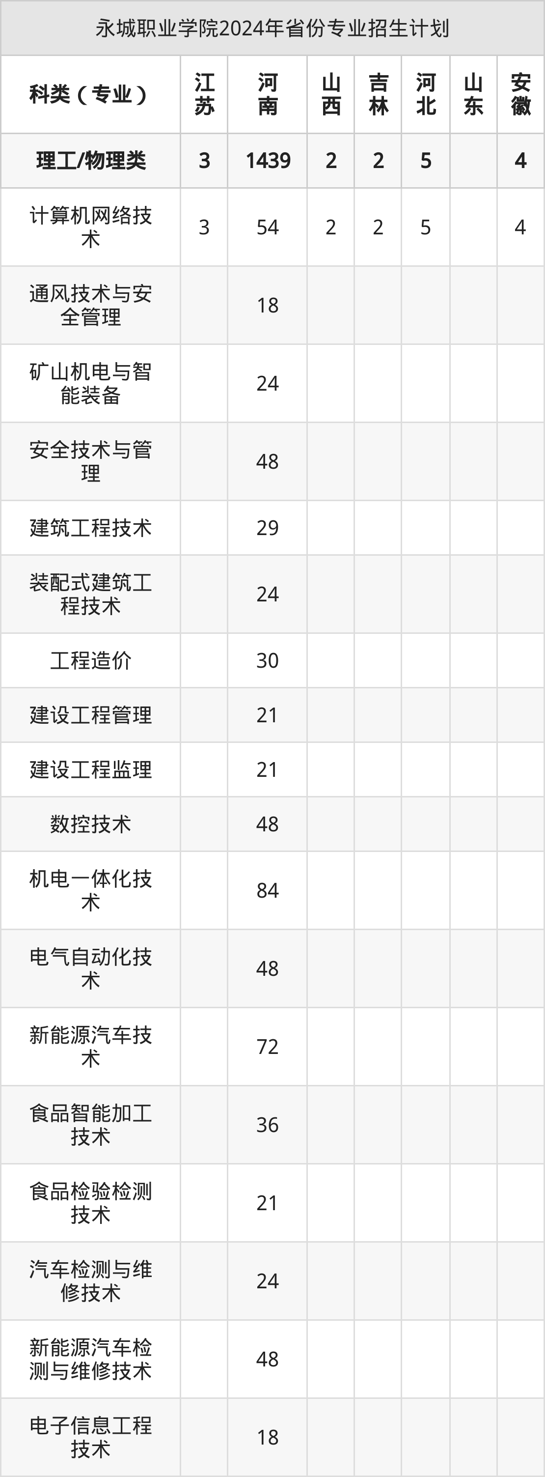 2025年永城职业学院专科招生计划待公布,下面附上2024年数据,暂供参考: