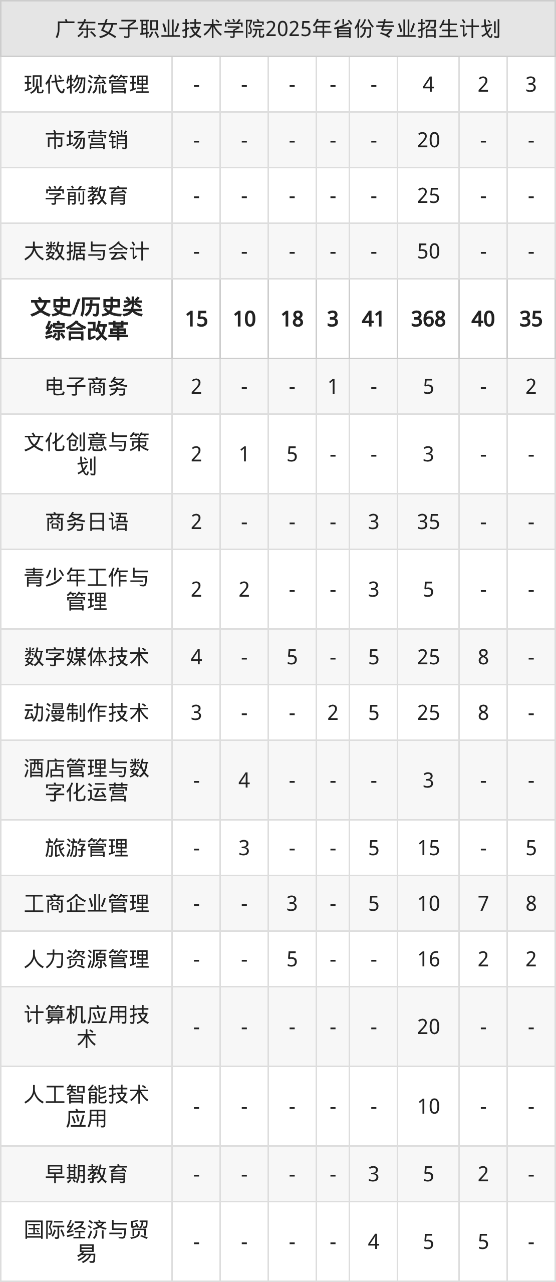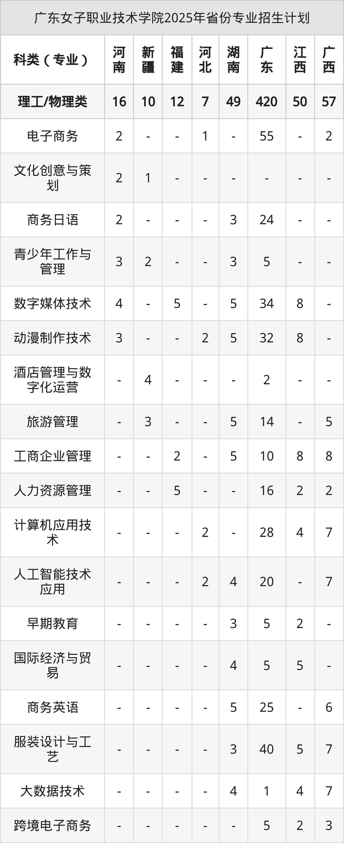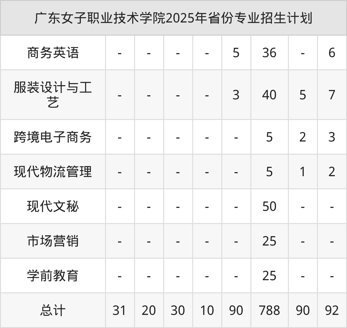 2026年广东女子职业技术学院专科招生计划待公布,下面附上2025年数据,暂供参考: