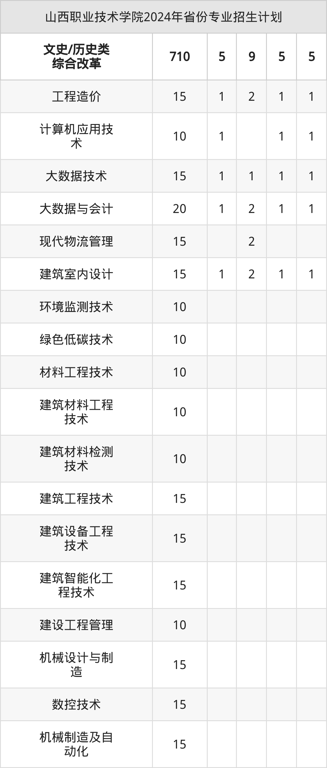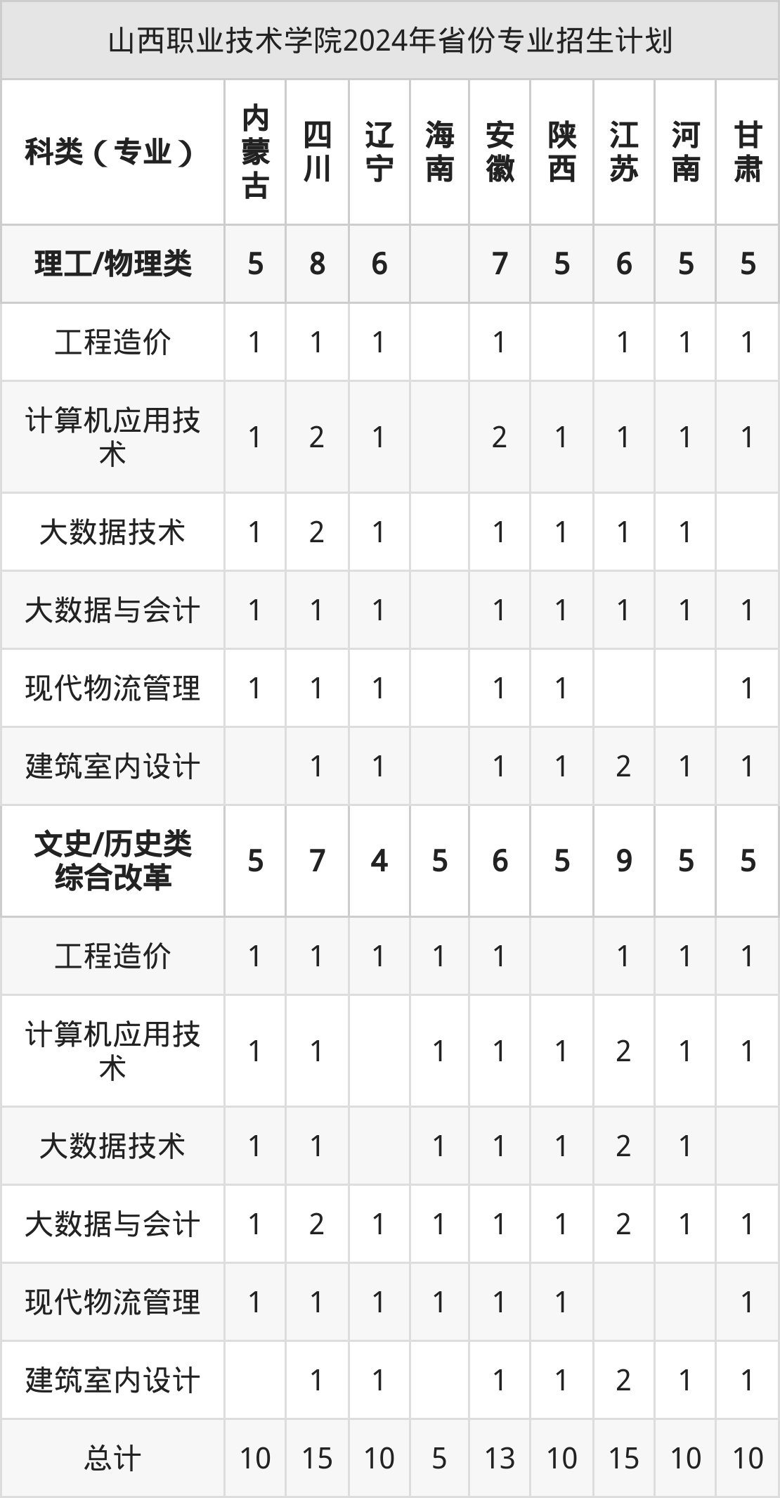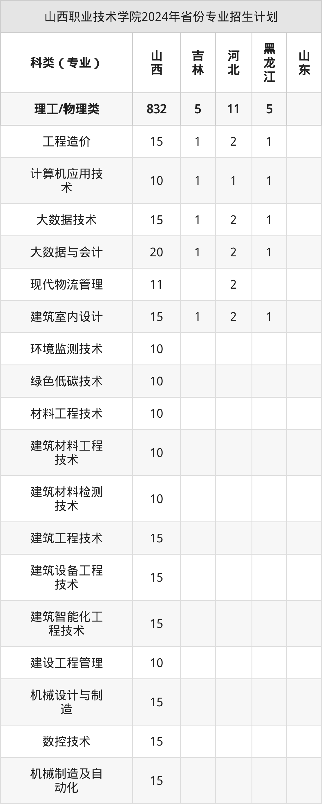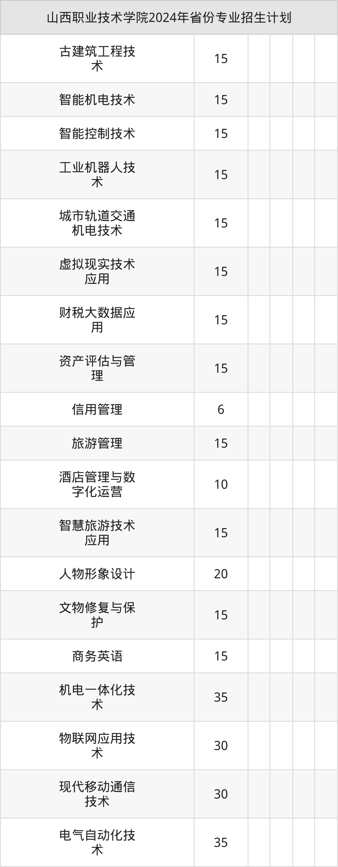 2025年山西职业技术学院专科招生计划待公布,下面附上2024年数据,暂供参考: