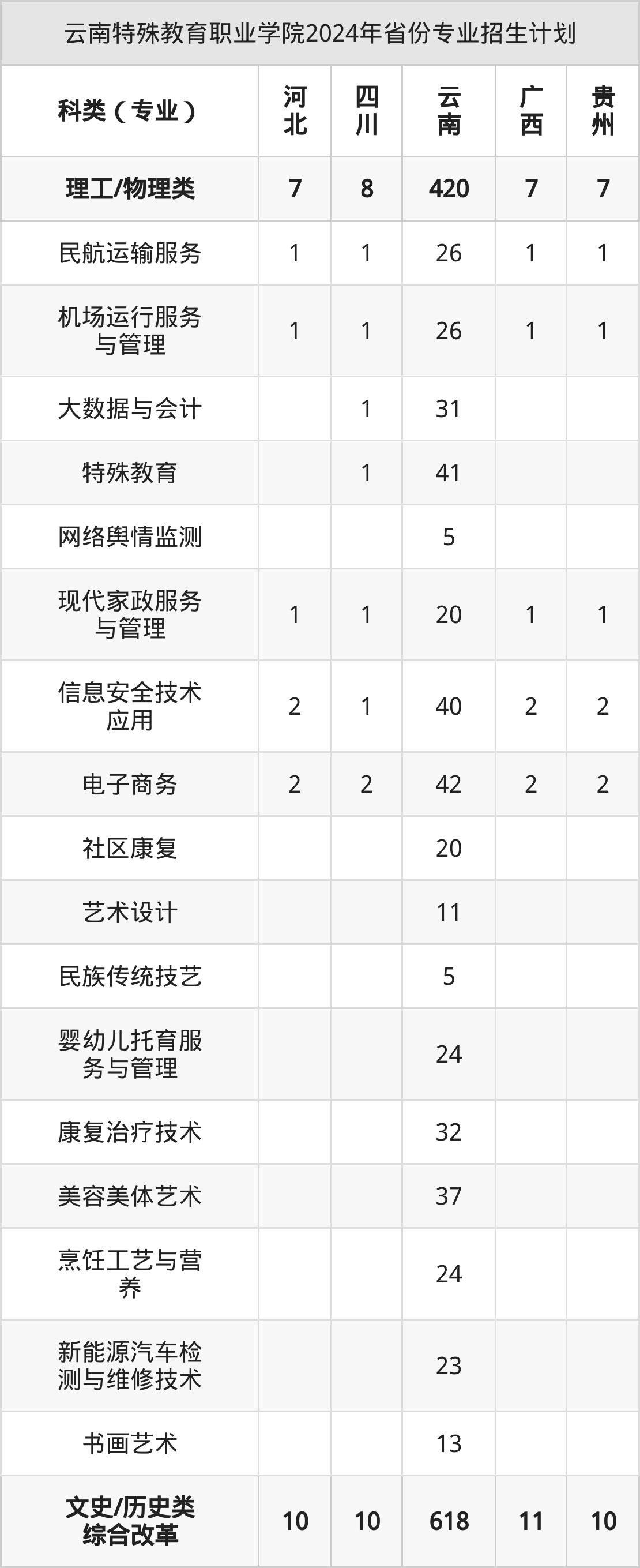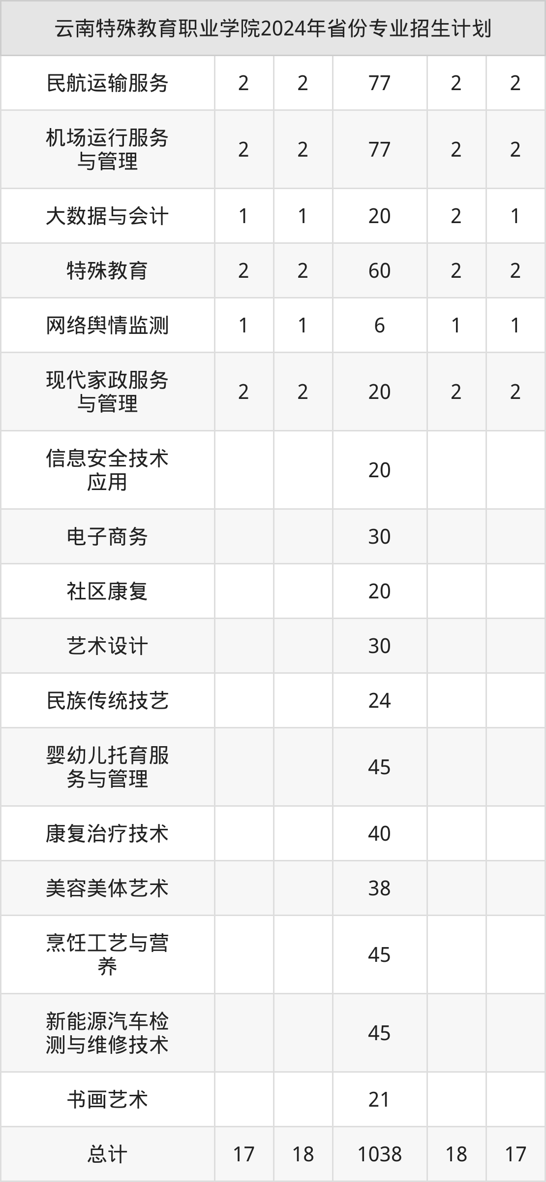 2025年云南特殊教育职业学院专科招生计划待公布,下面附上2024年数据,暂供参考: