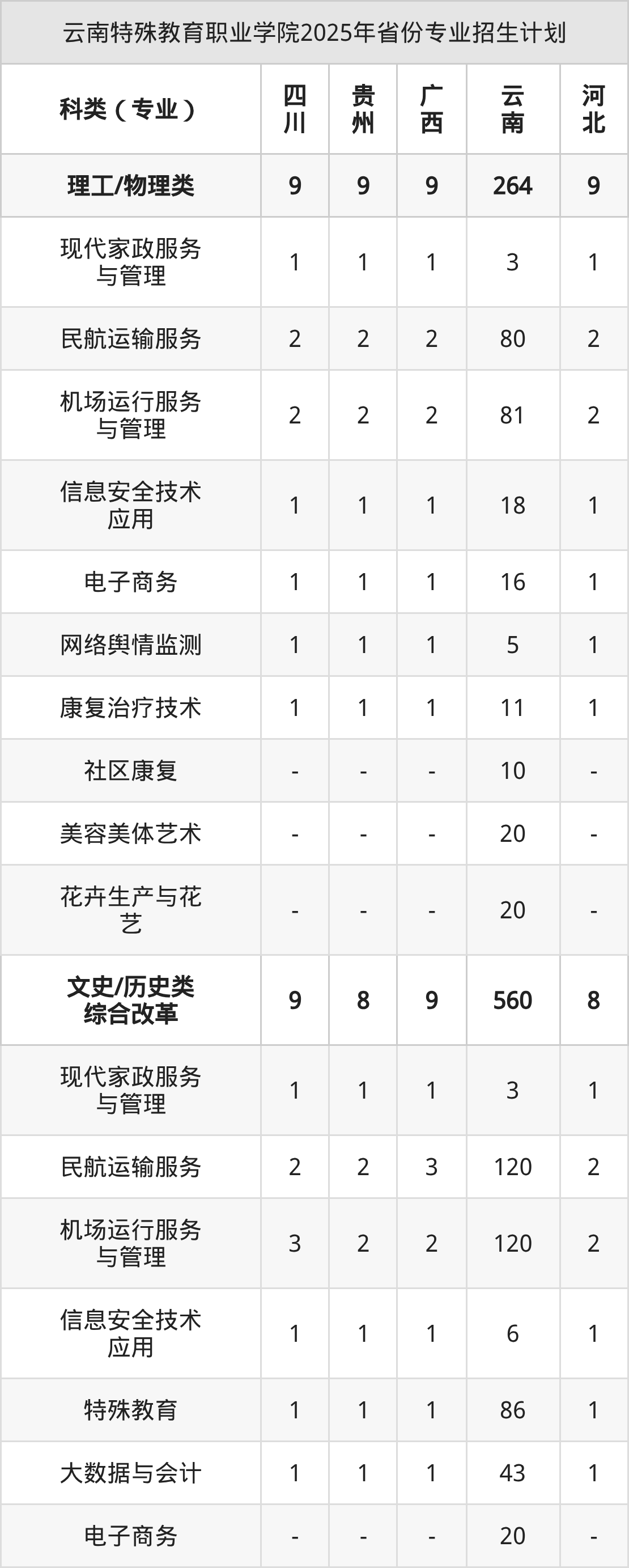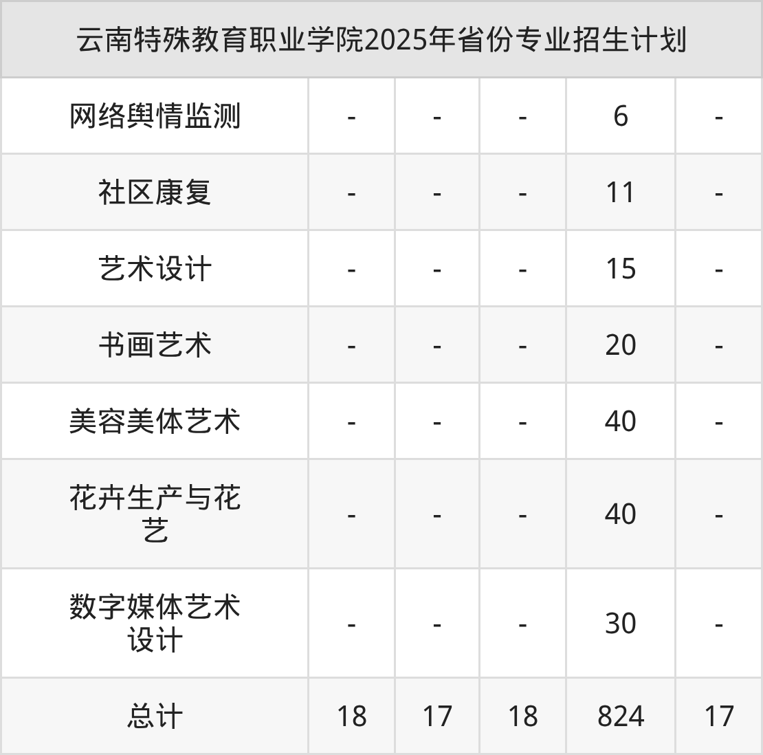 2026年云南特殊教育职业学院专科招生计划待公布,下面附上2025年数据,暂供参考: