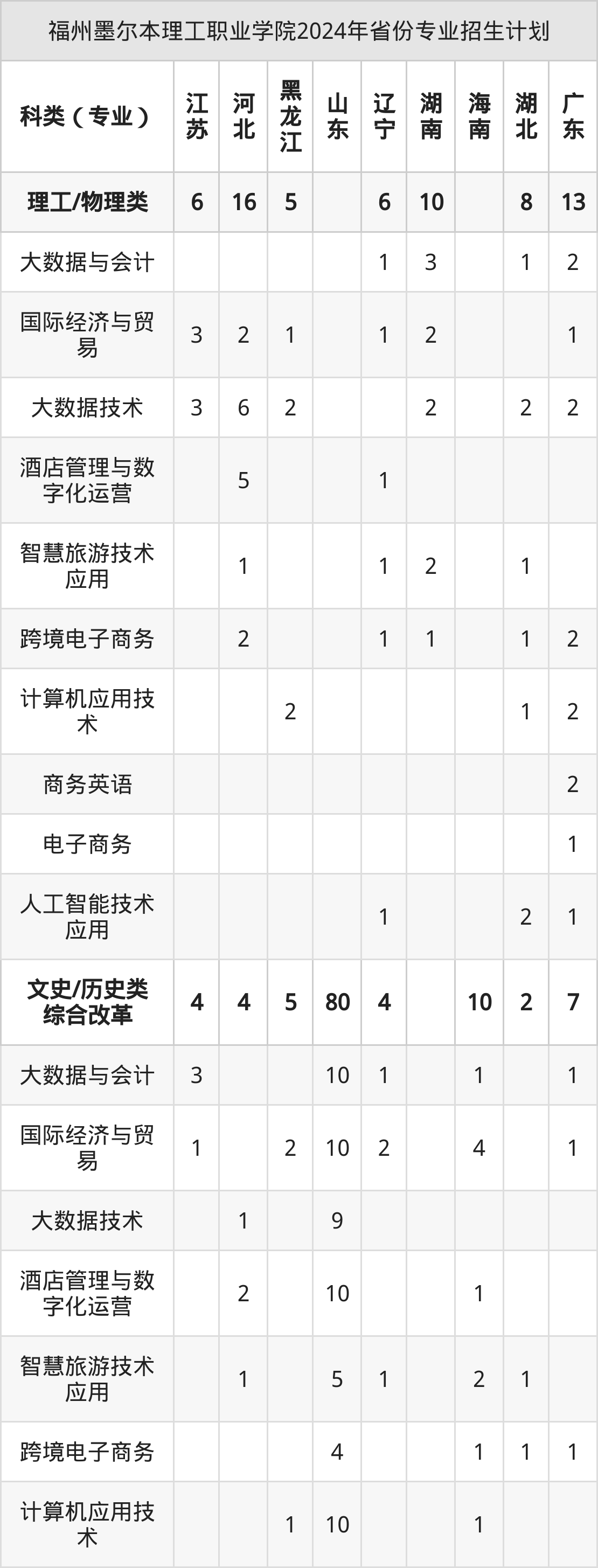 2025年福州墨尔本理工职业学院专科招生计划待公布,下面附上2024年数据,暂供参考: