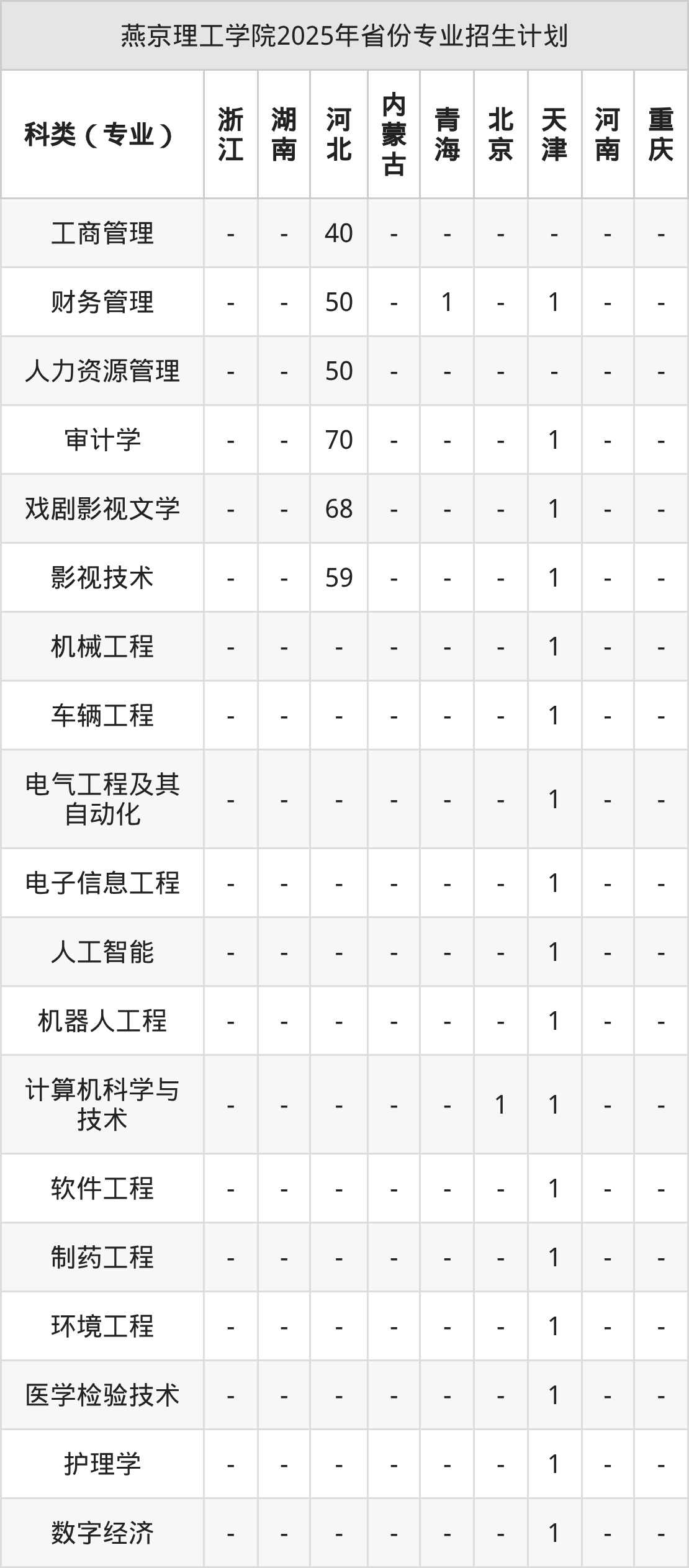 | 燕京理工学院本科招生专业 | |