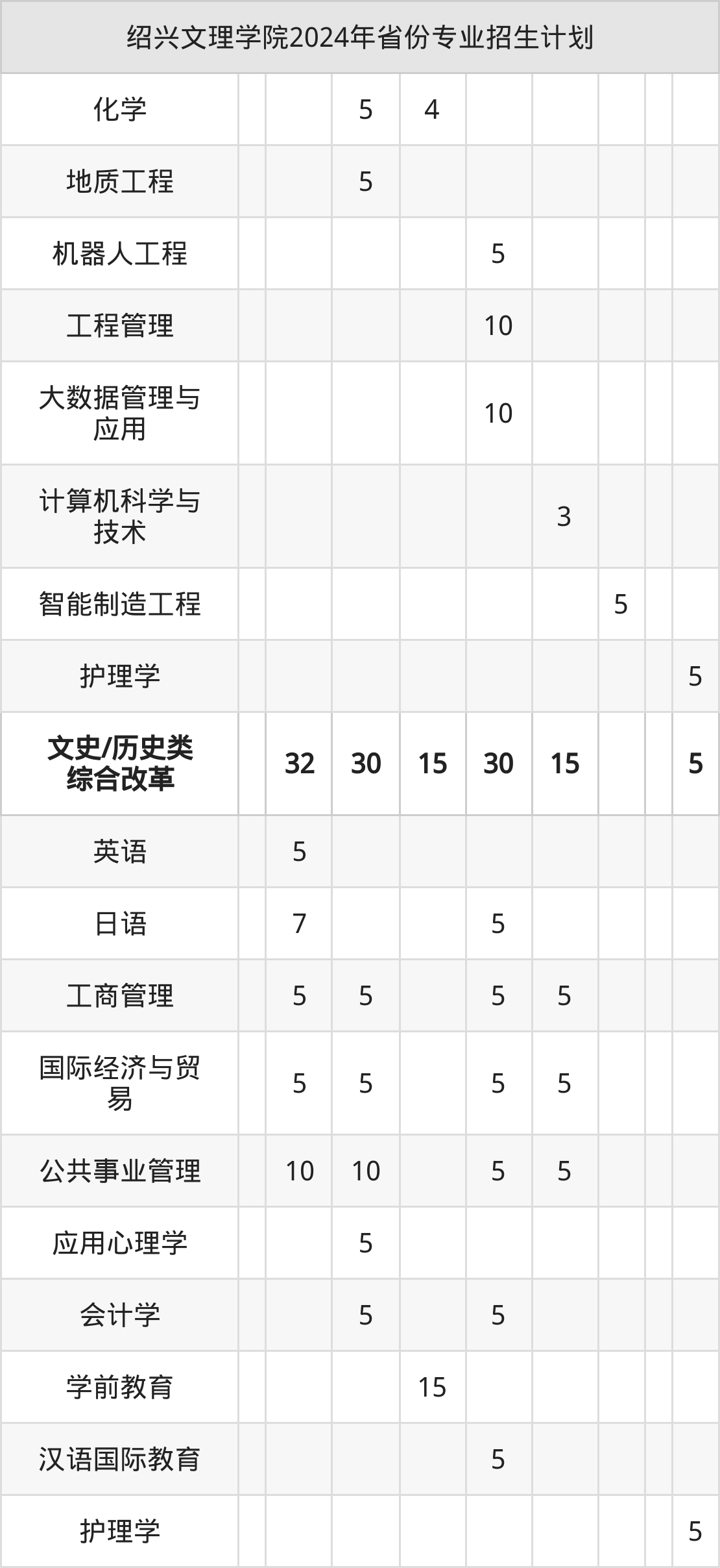 | 绍兴文理学院本科招生专业 | |