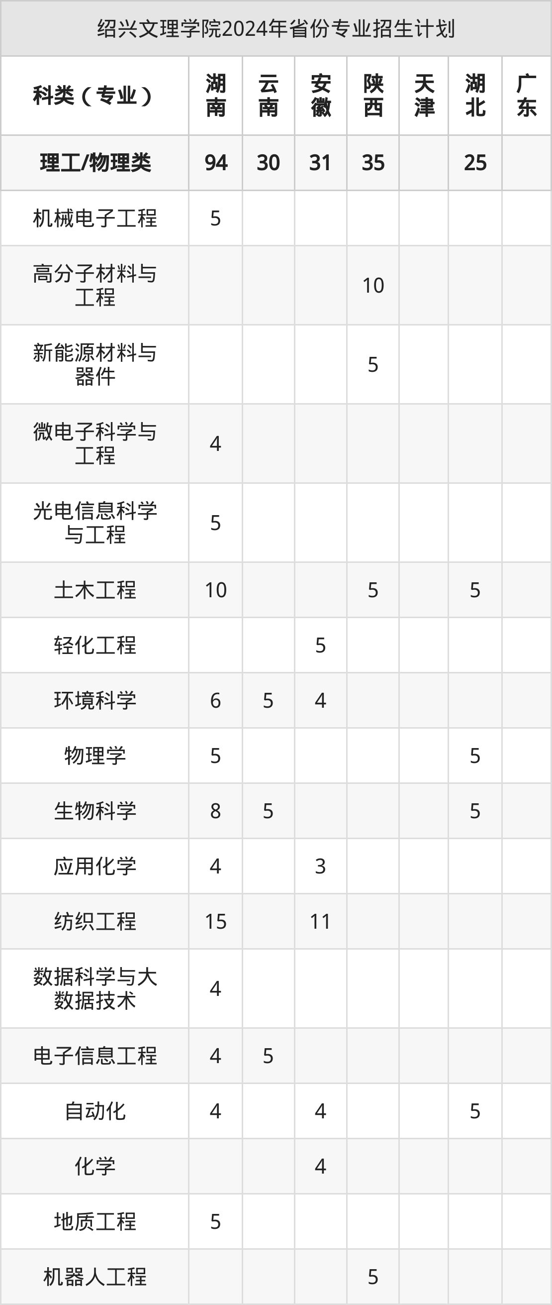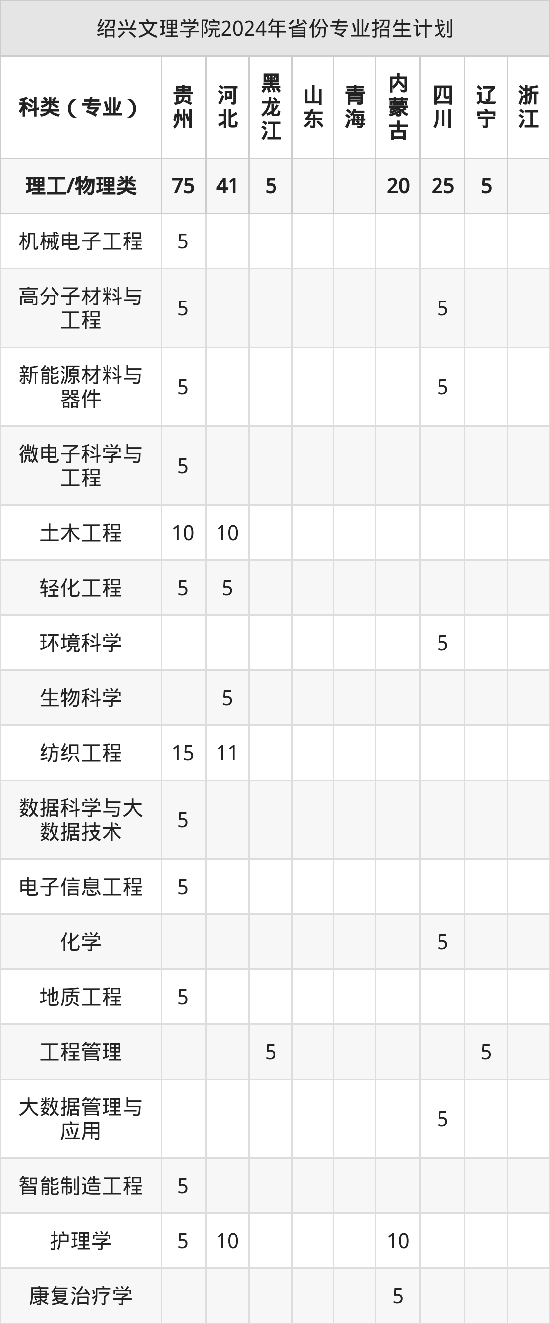 二、绍兴文理学院2025年招生计划