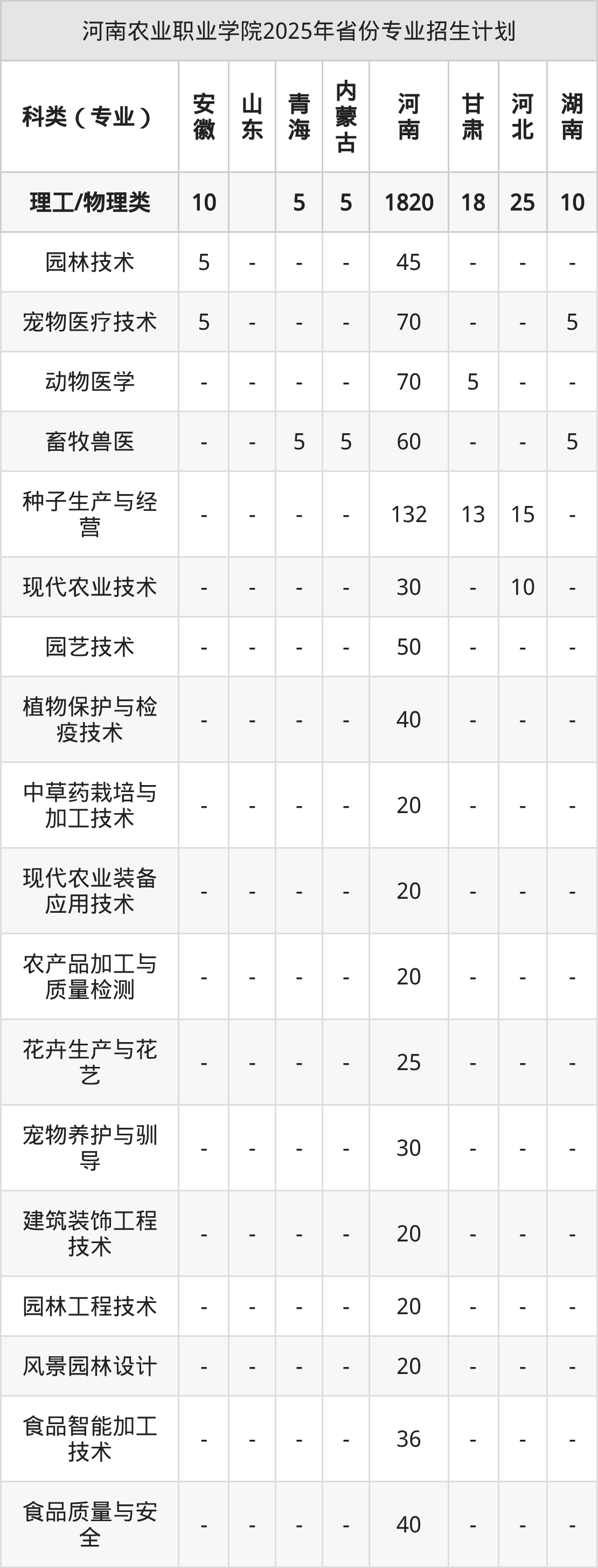 2026年河南农业职业学院专科招生计划待公布,下面附上2025年数据,暂供参考:
