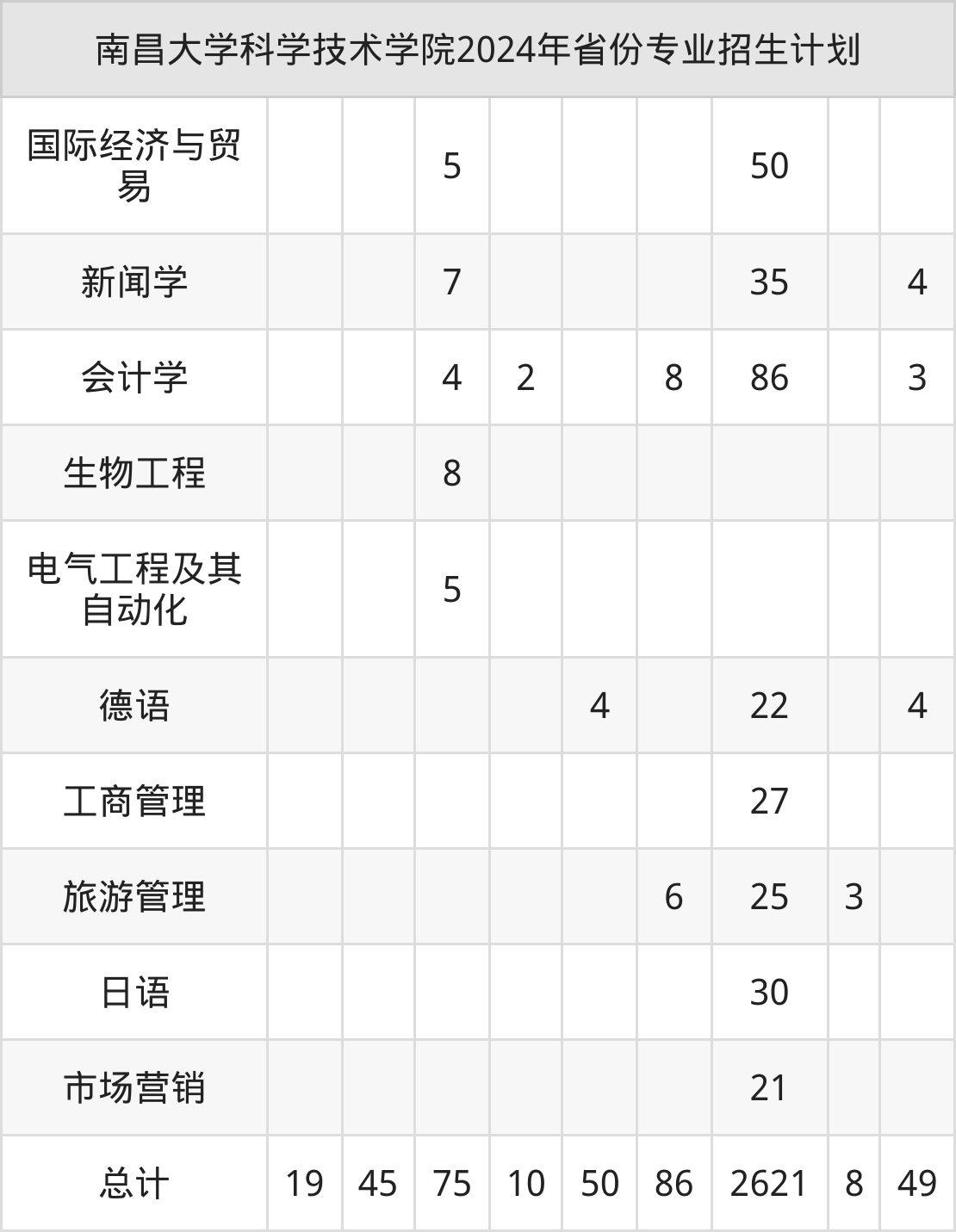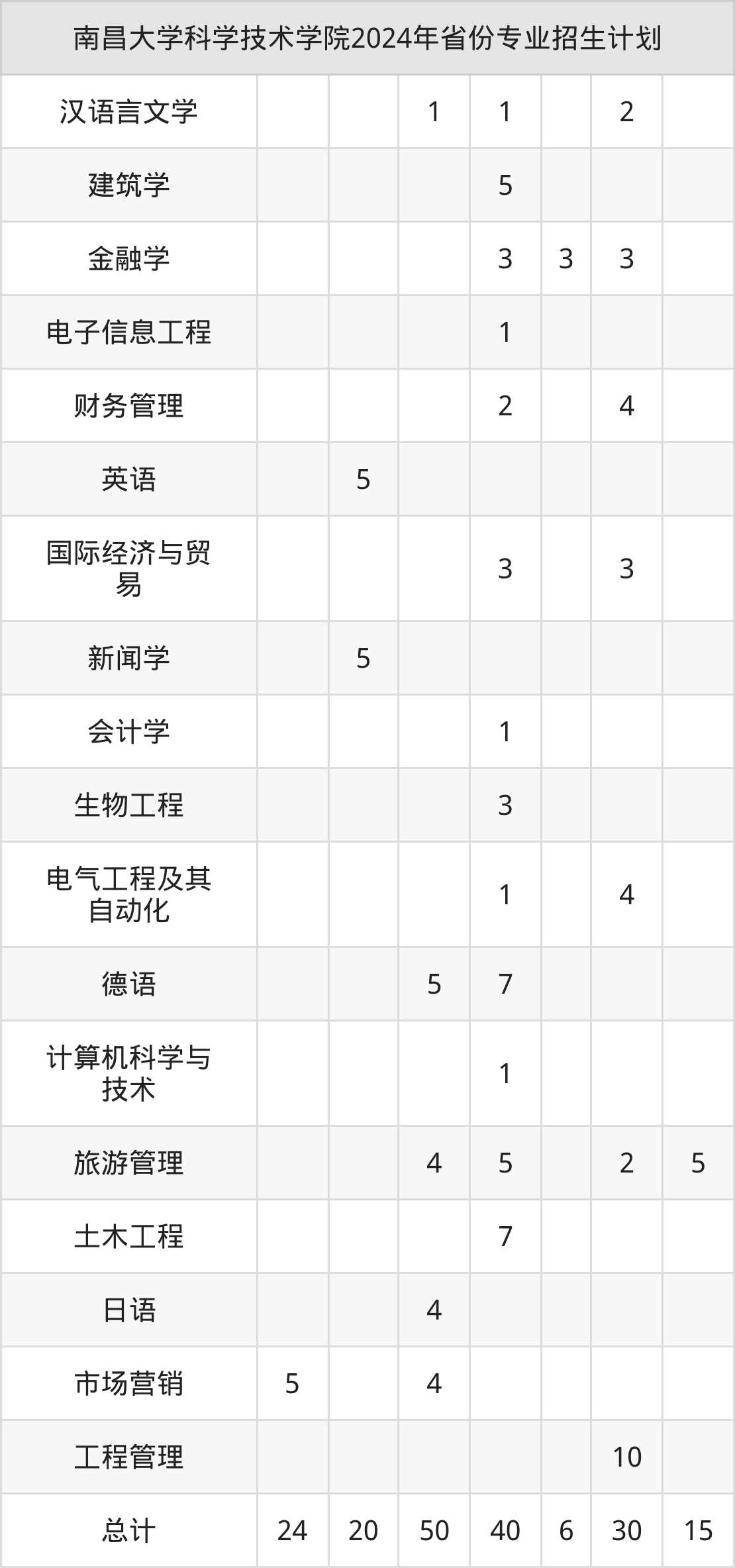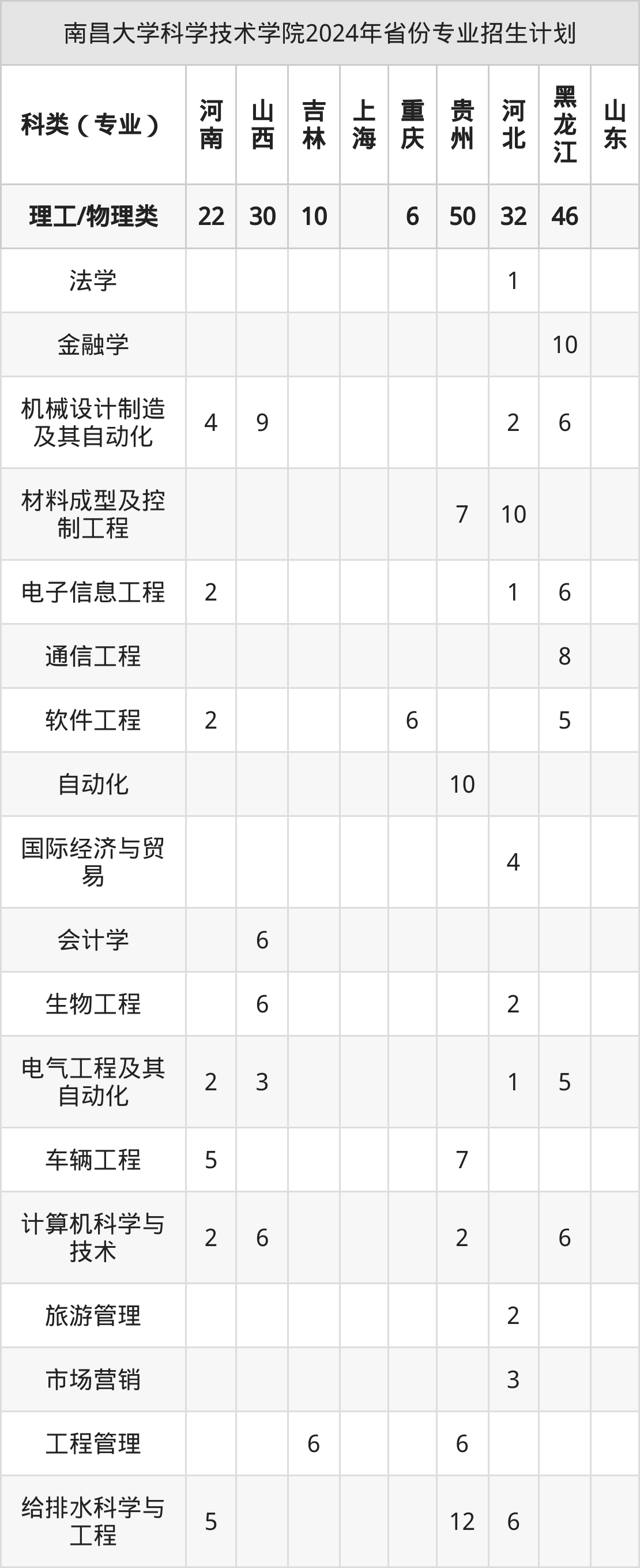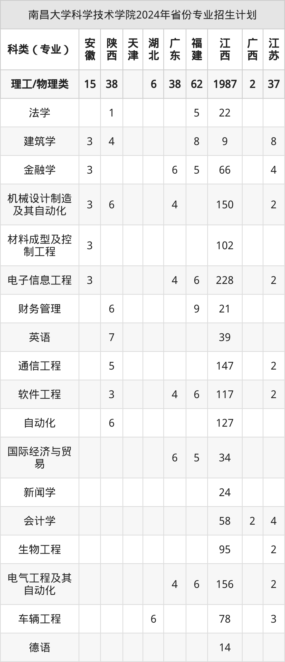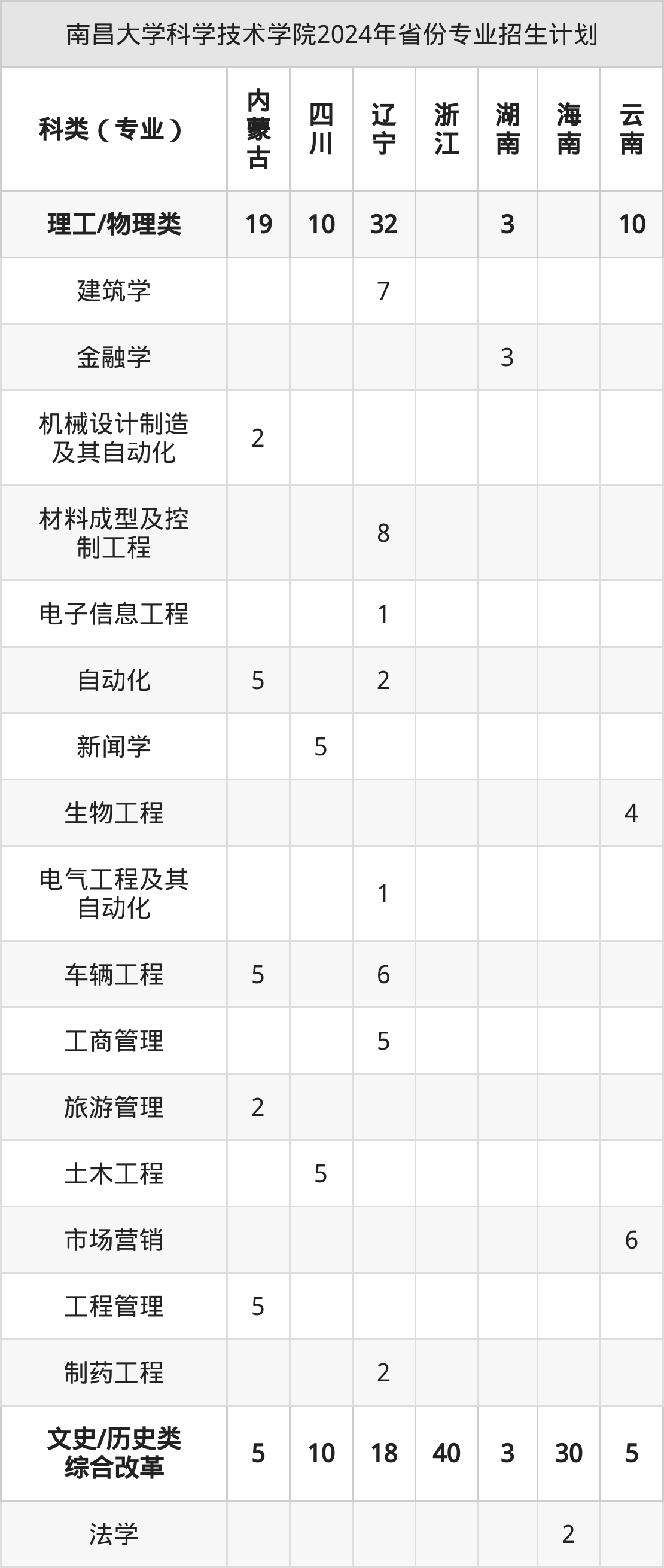 2025年南昌大学科学技术学院本科招生计划待公布,下面附上2024年数据,暂供参考: