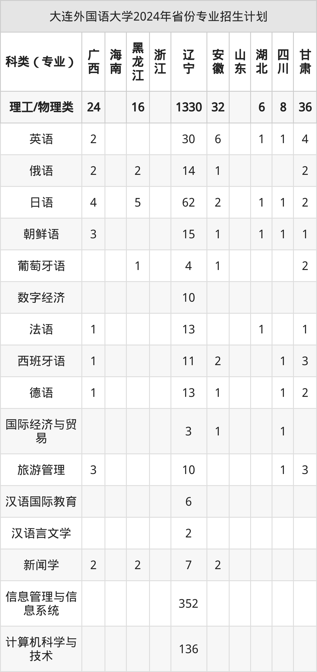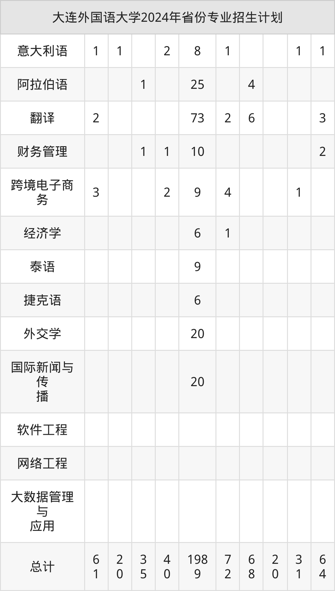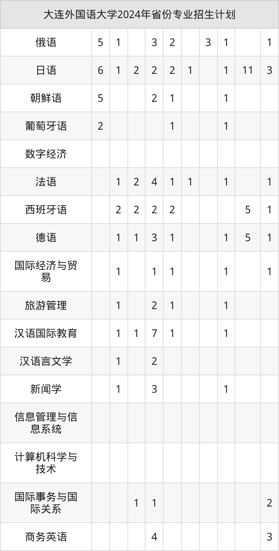 2025年大连外国语大学本科招生计划待公布,下面附上2024年数据,暂供参考: