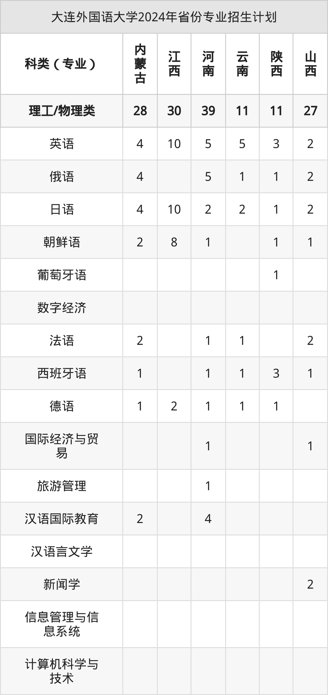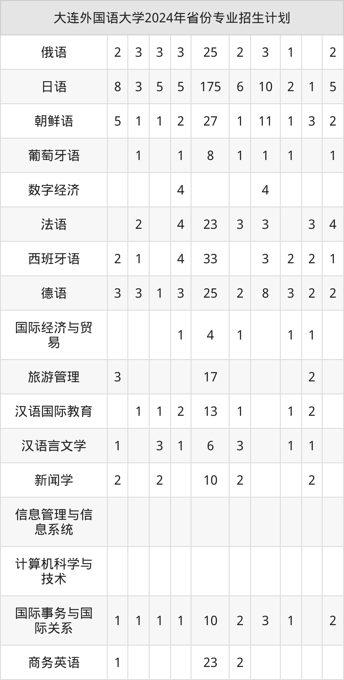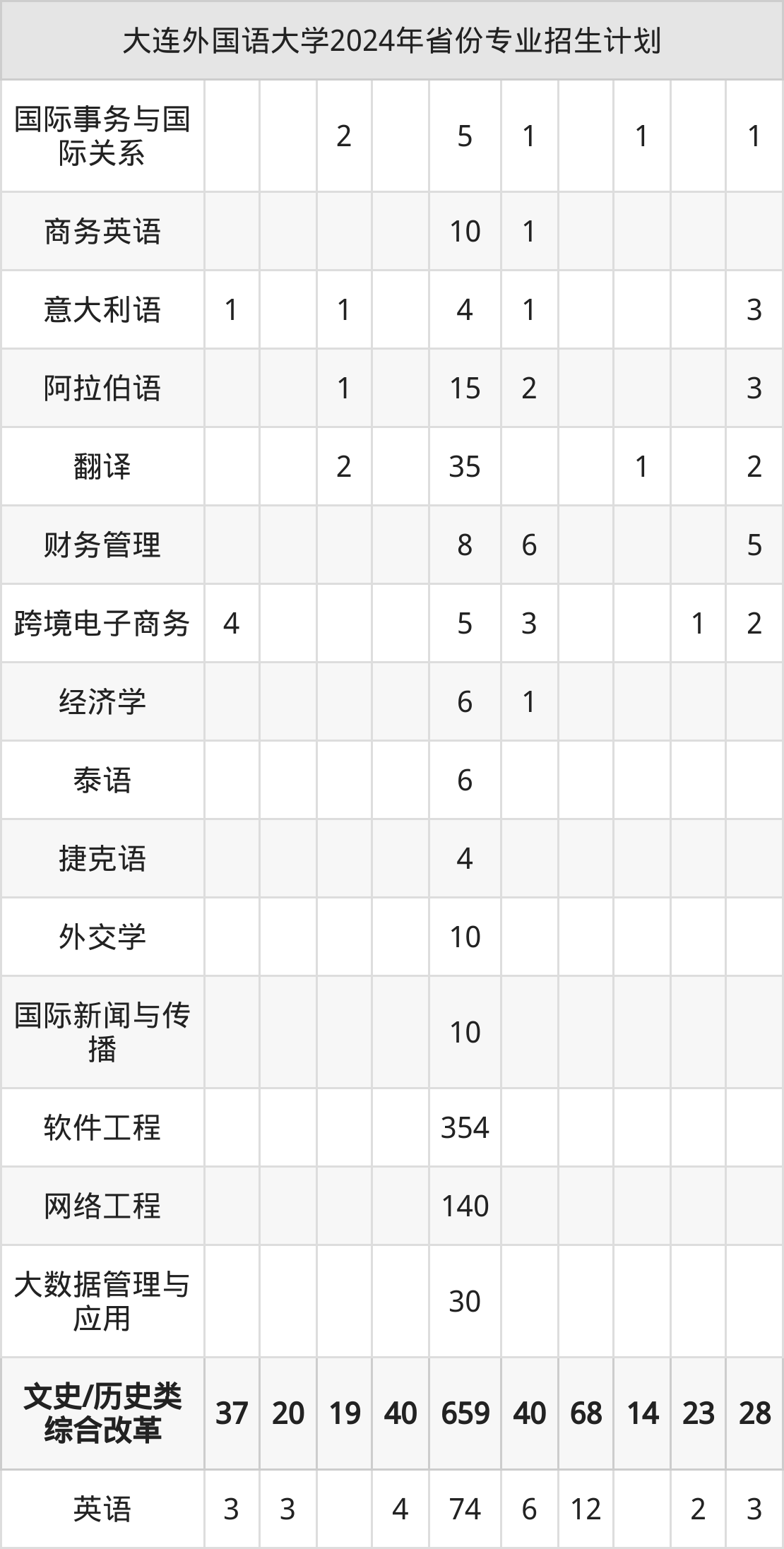 2025年大连外国语大学本科招生计划待公布,下面附上2024年数据,暂供参考: