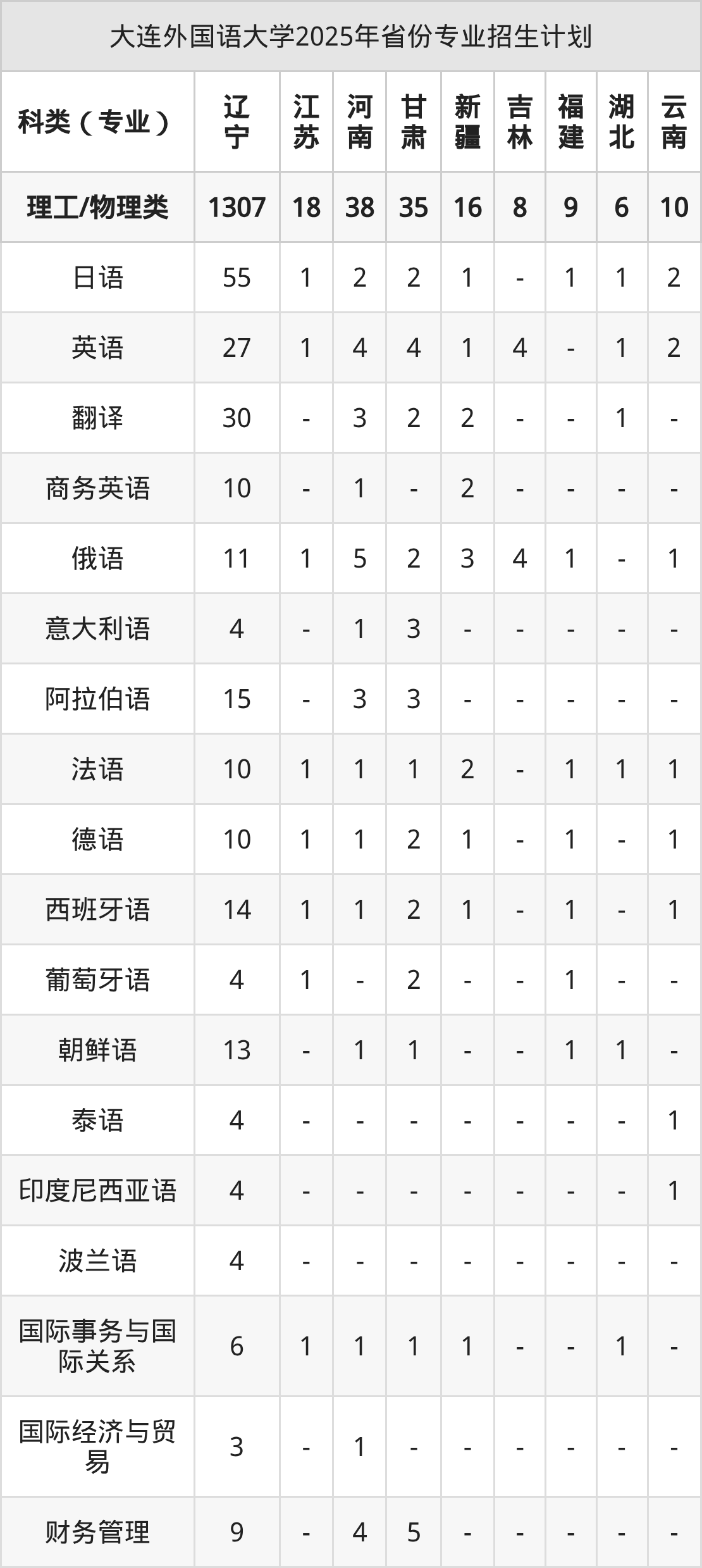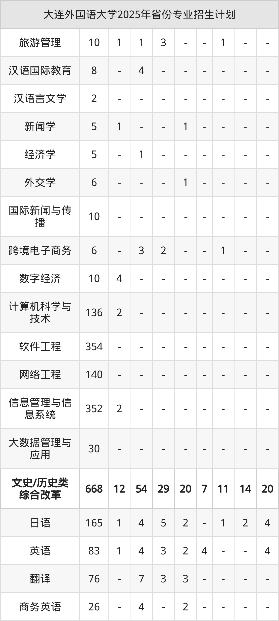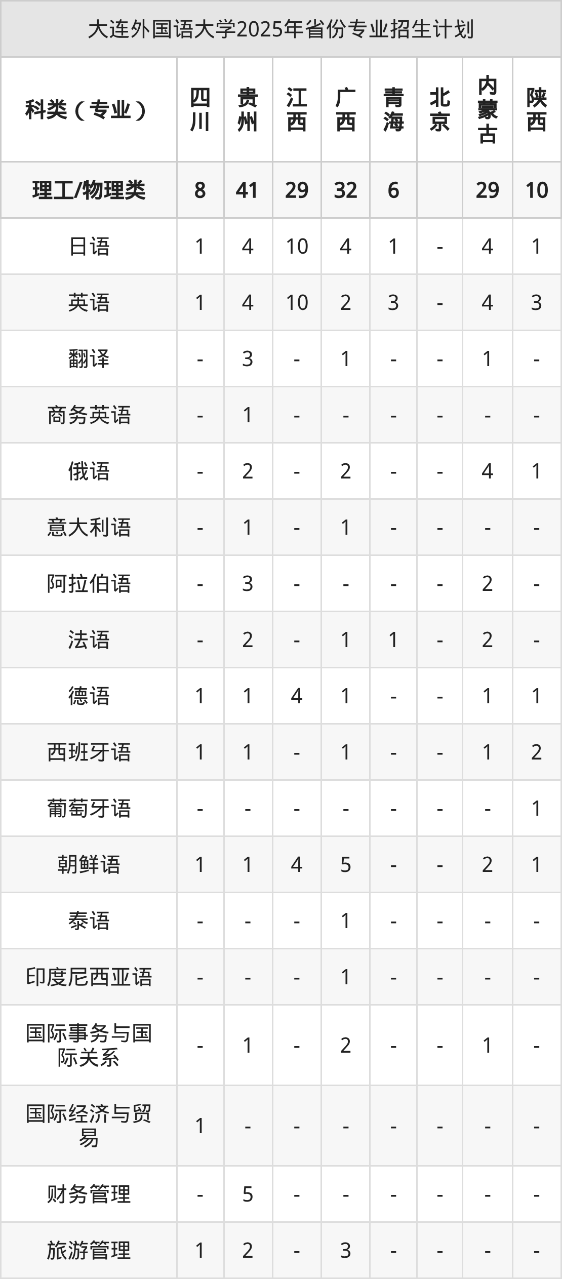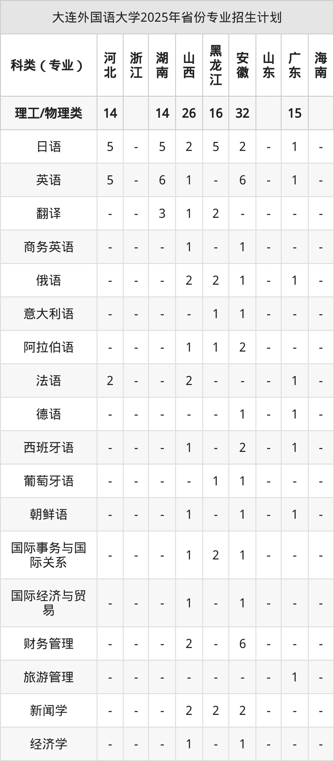 2026年大连外国语大学本科招生计划待公布,下面附上2025年数据,暂供参考: